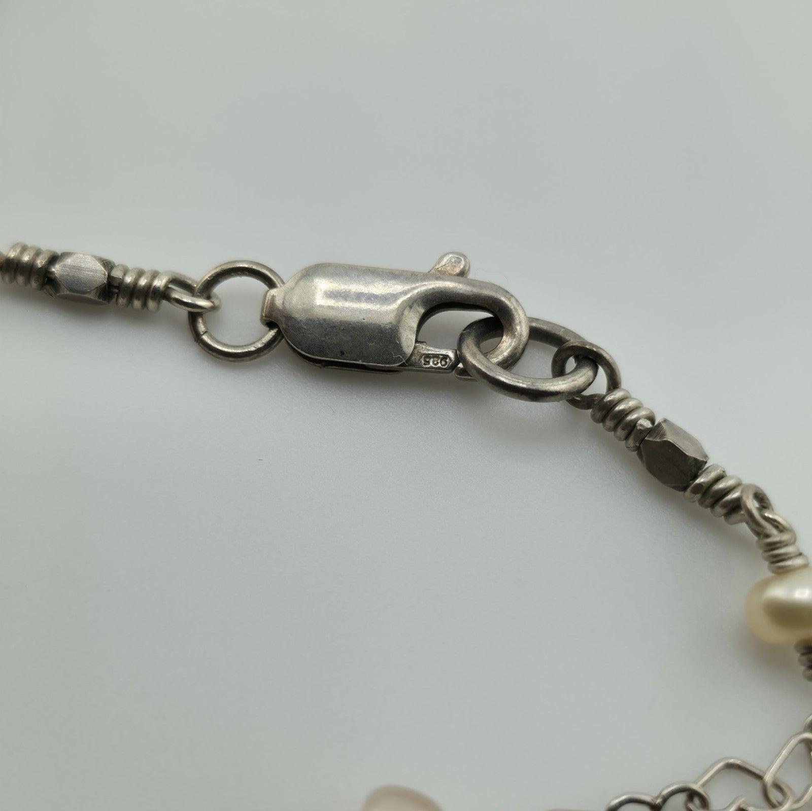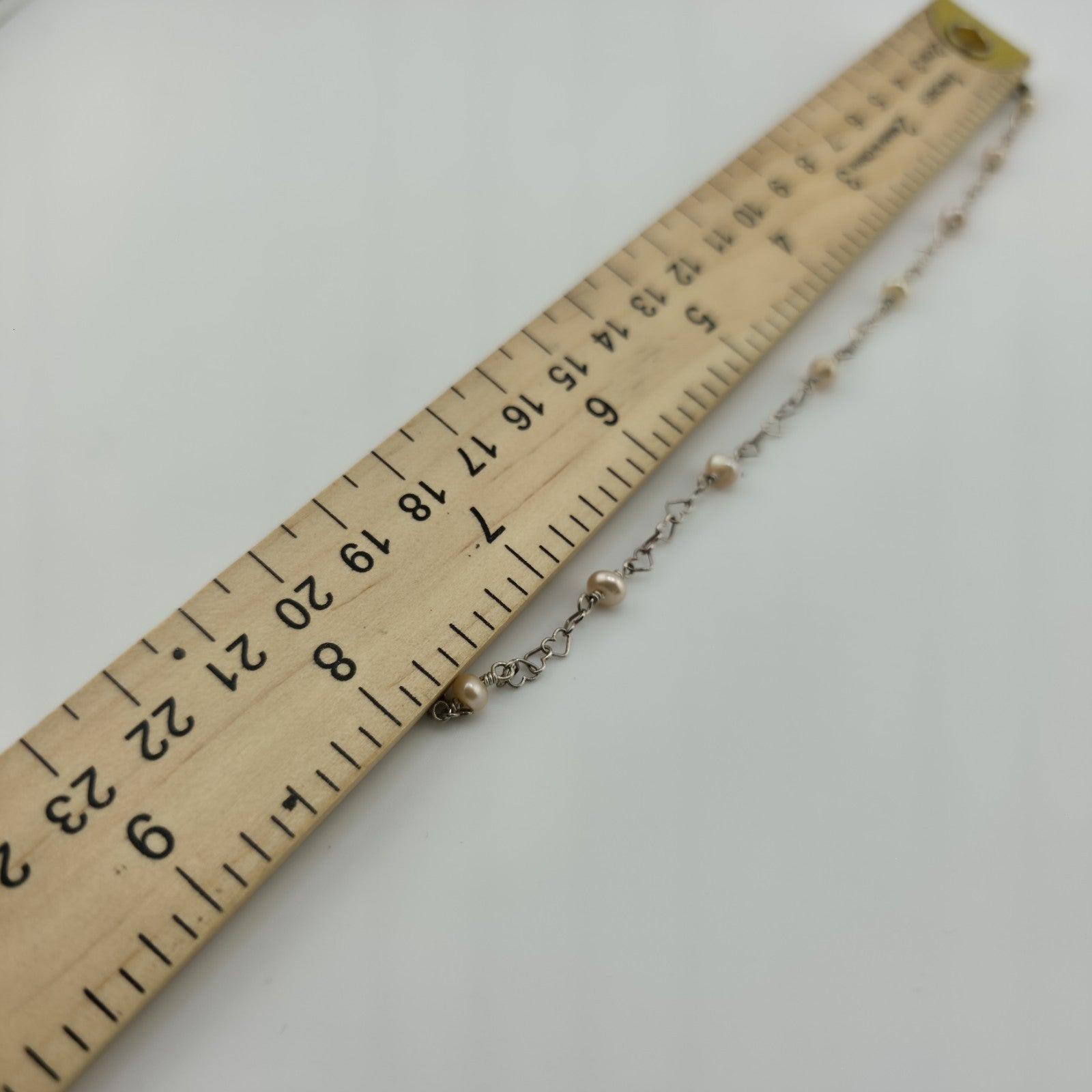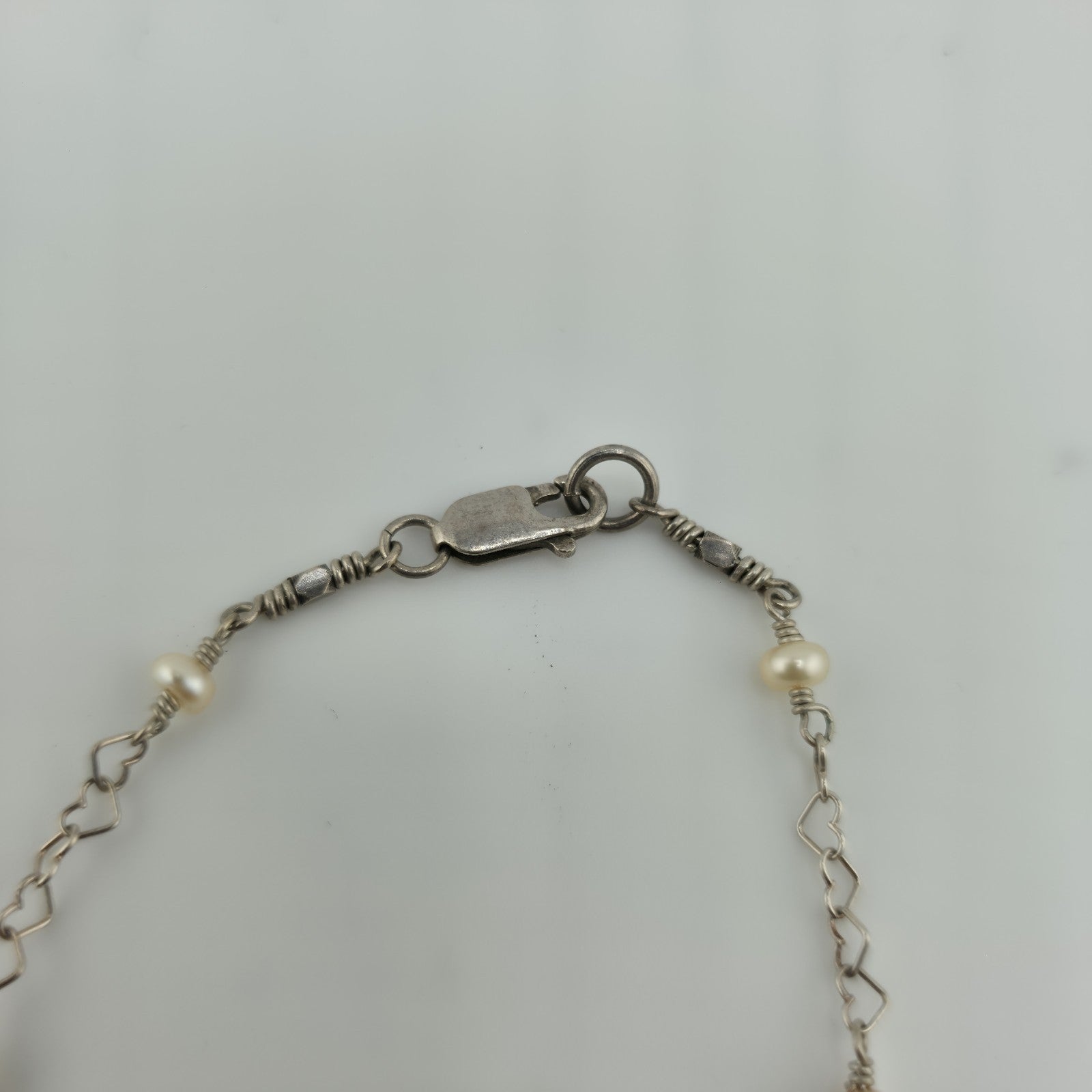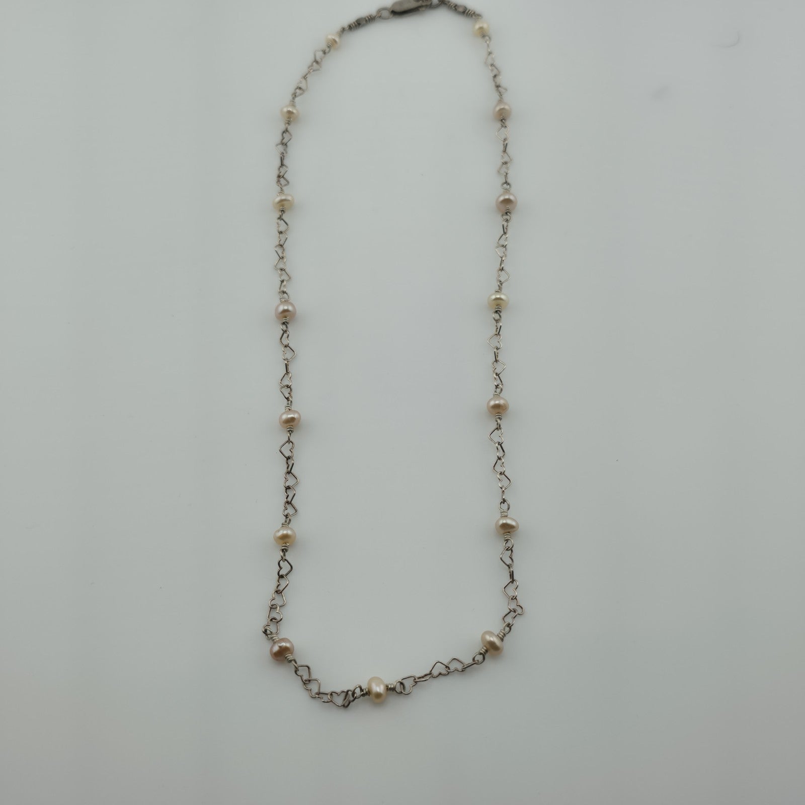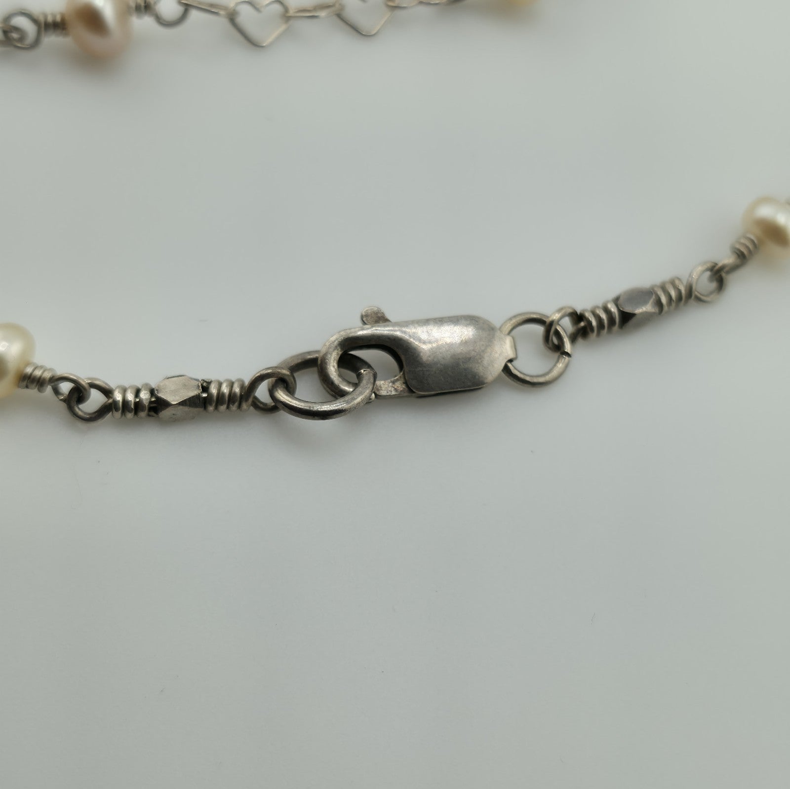 925 Sterling Silver Heart Links ❤️ Pearls Necklace Jewelry 16 Inches