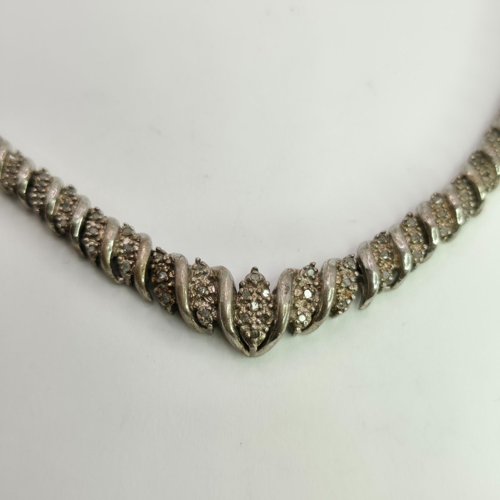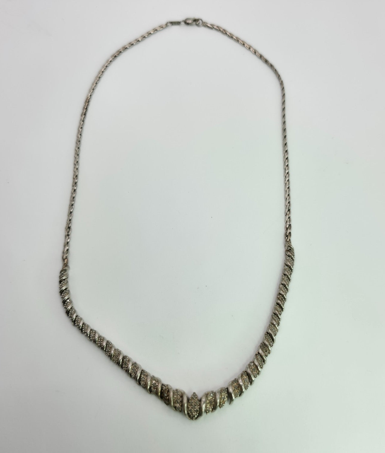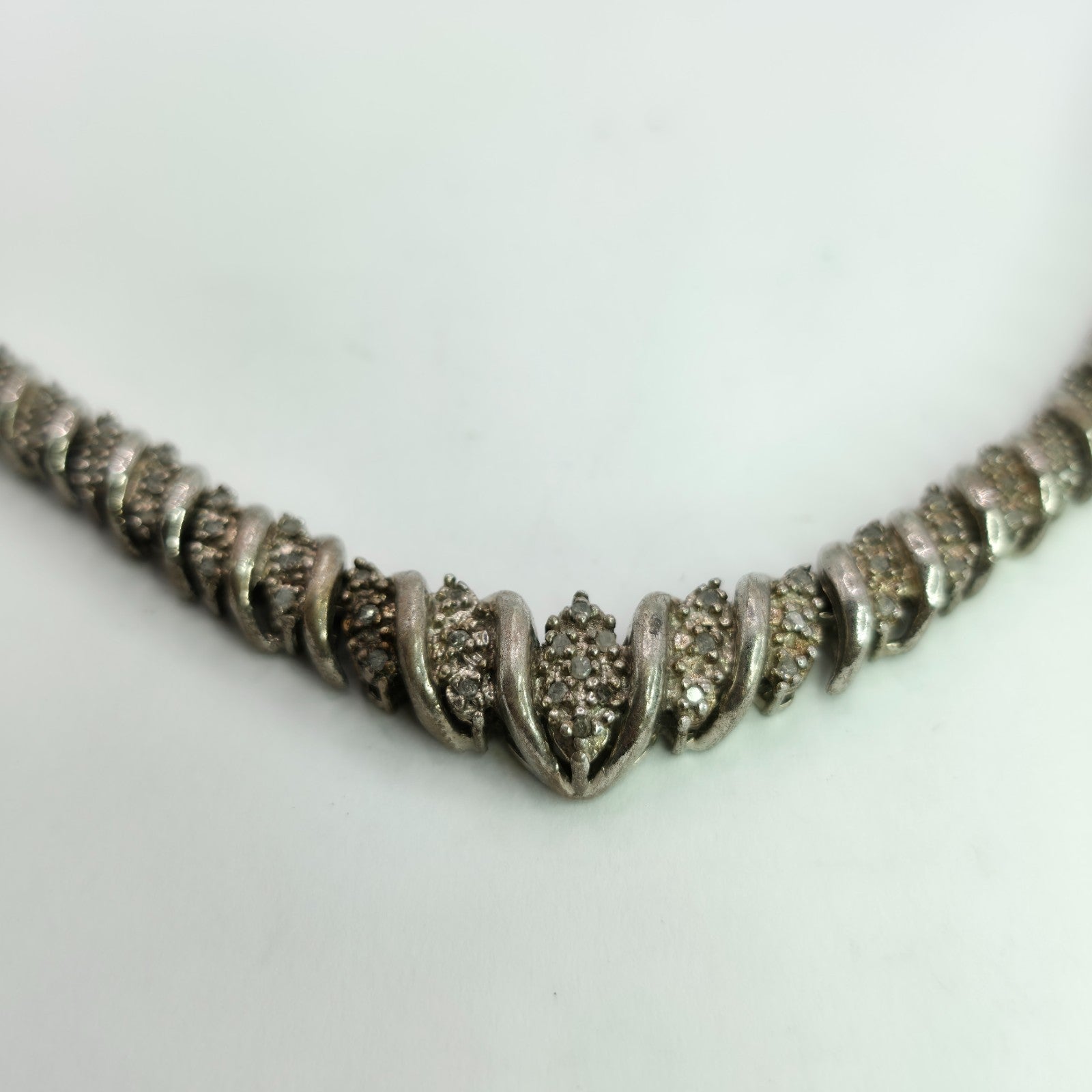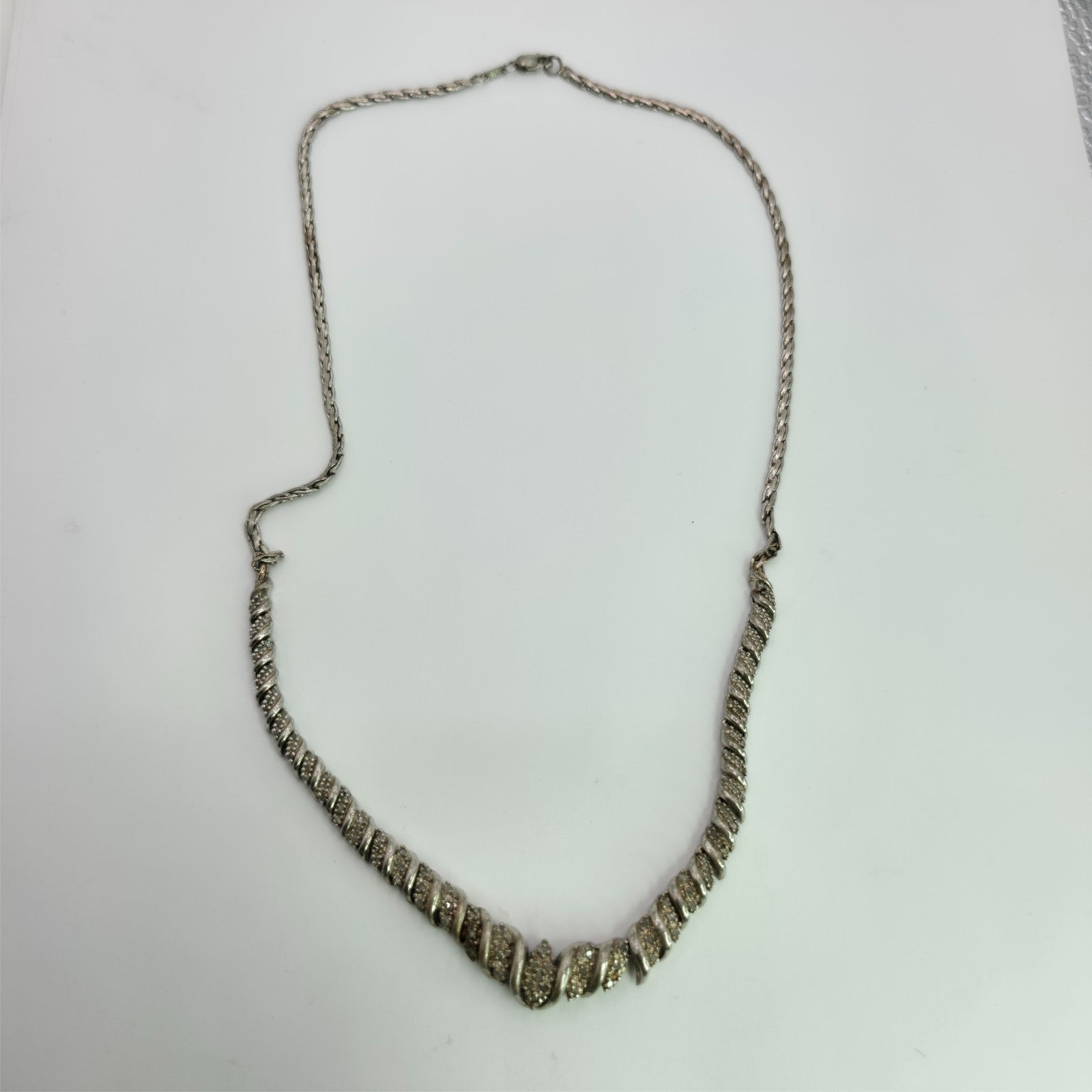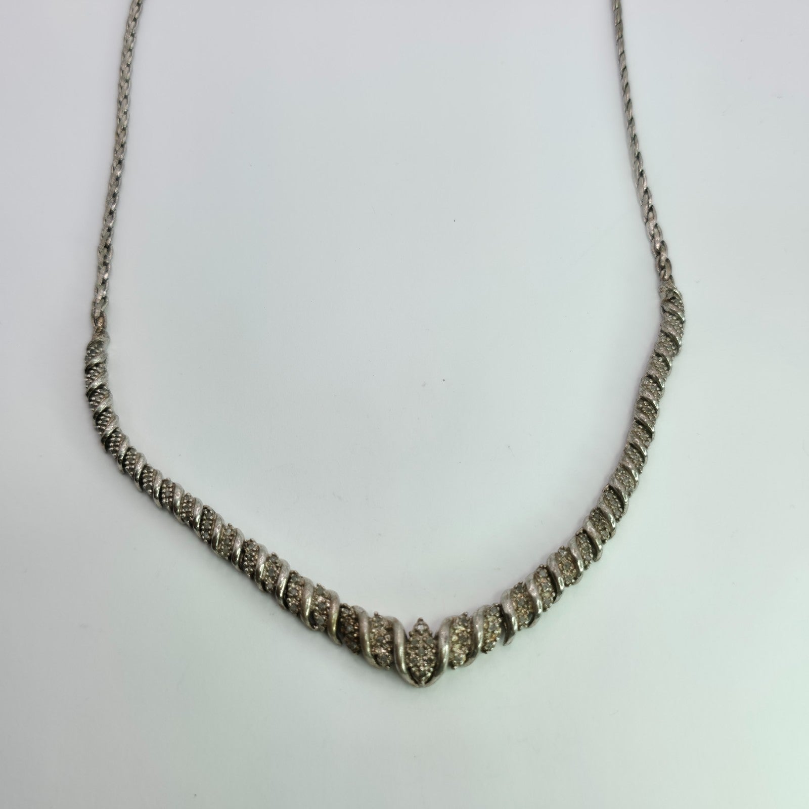 925 Sterling Silver Heng Ngai Necklace Genuine Diamond 1/2 Ct V Shape Vintage