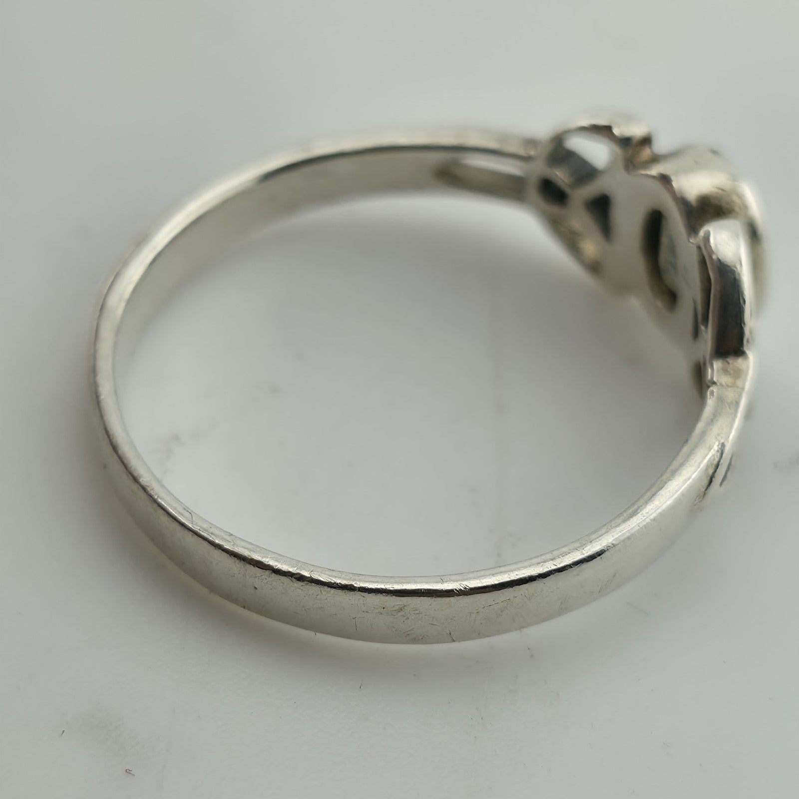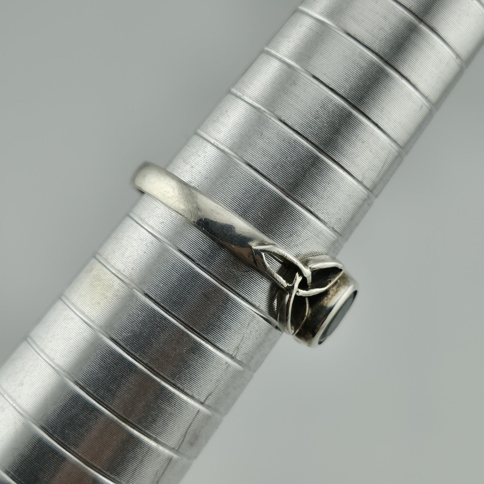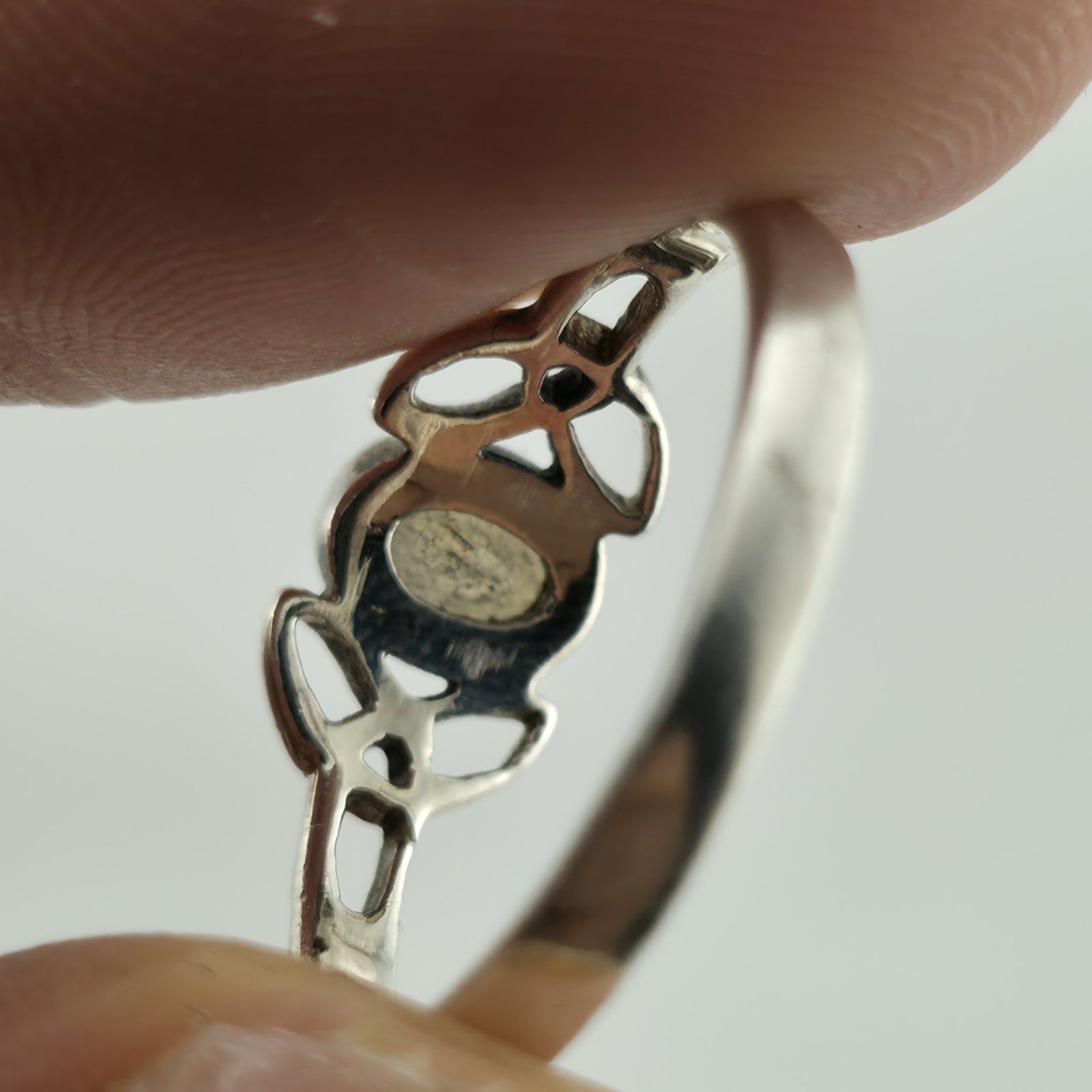 925 Sterling Silver Celtic Trinity Knot Ring with Blue Agate Stone – Size 8.75