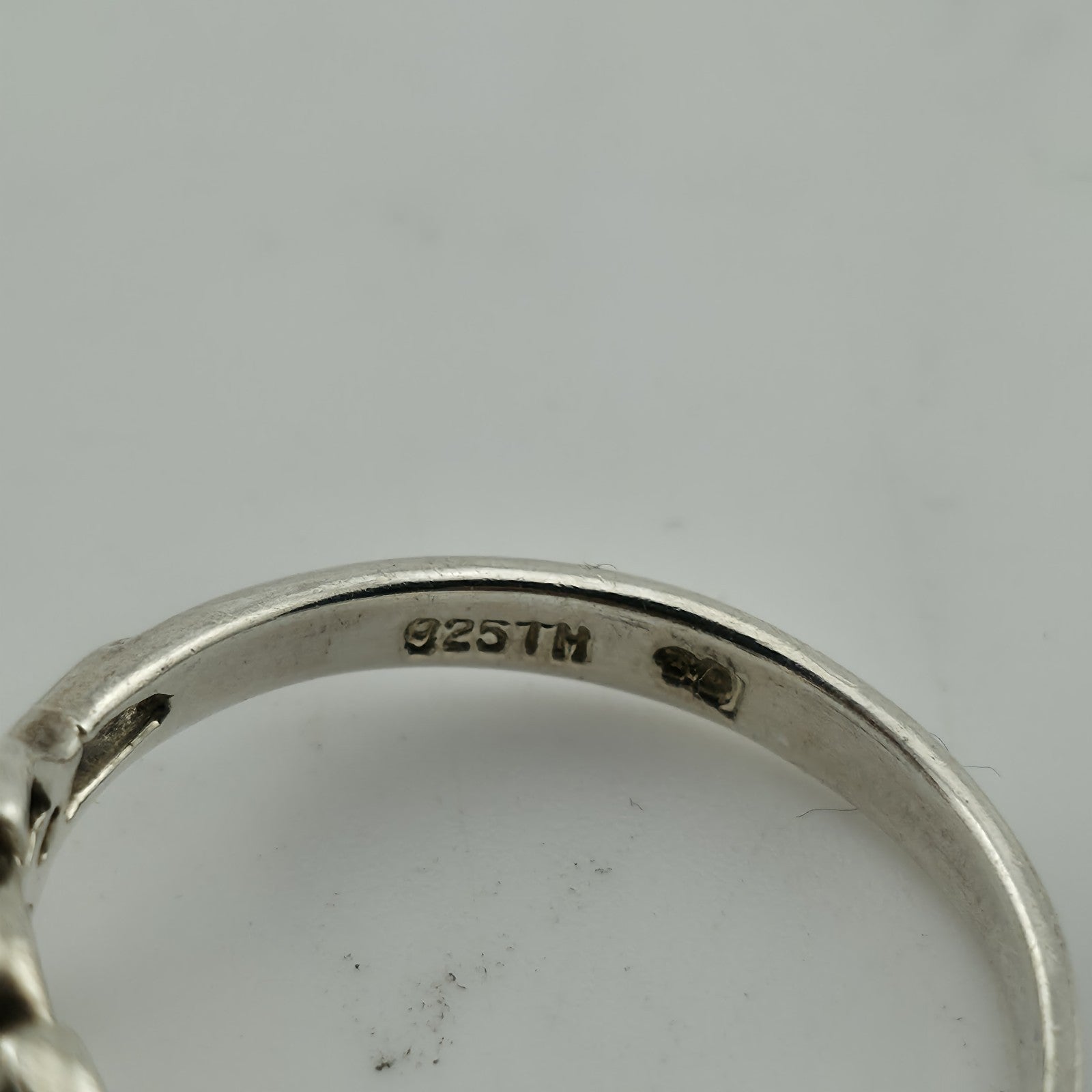 925 Sterling Silver Ring Celtic Trinity Knot Agate Blue Stone Size 8.75