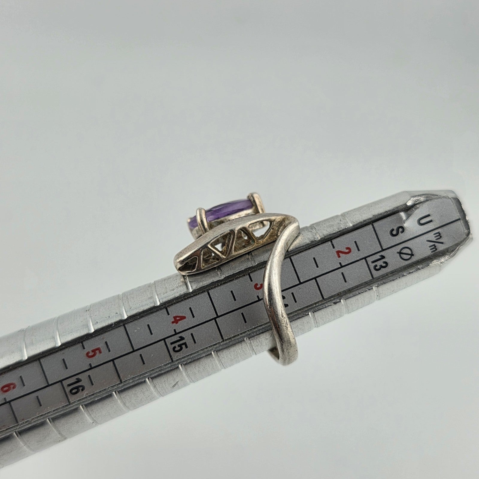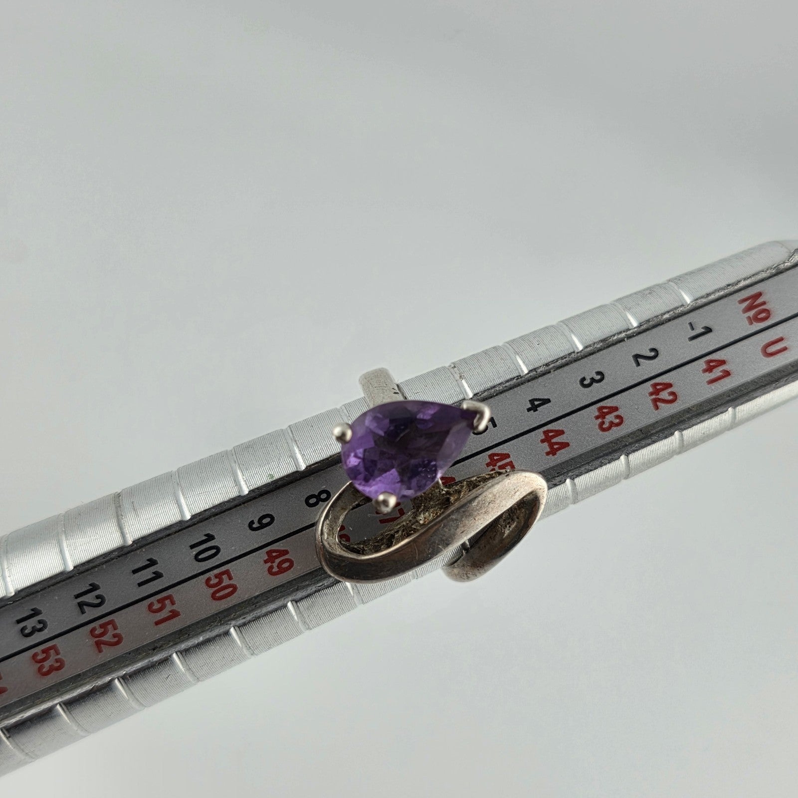 925 Sterling Silver Ring Pear Cut Amethyst Unique Modernist 3.25 Vintage Artisan