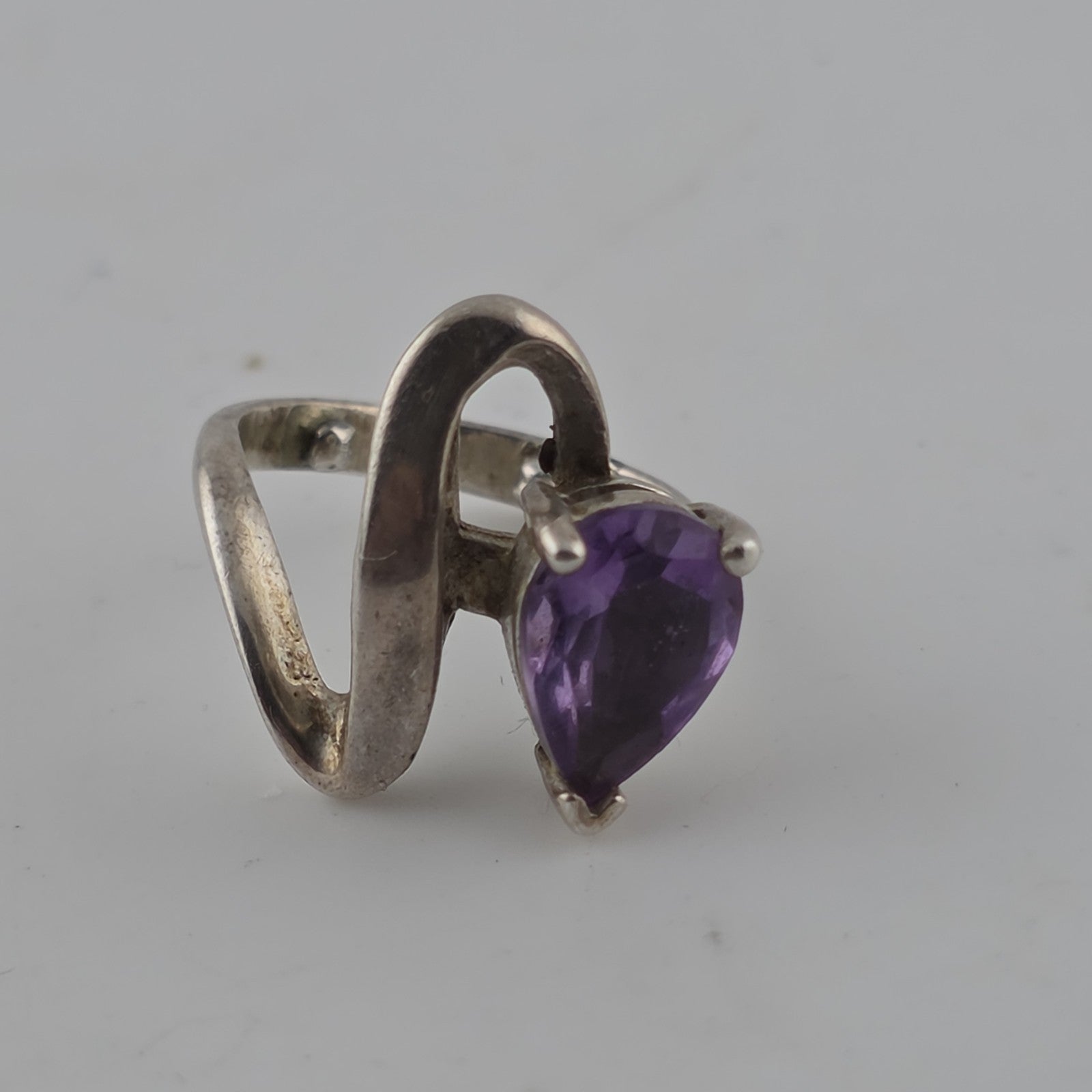 β¨ Item: 925 Sterling Silver Ring with Pear-Cut Amethyst β Unique Modernist Design