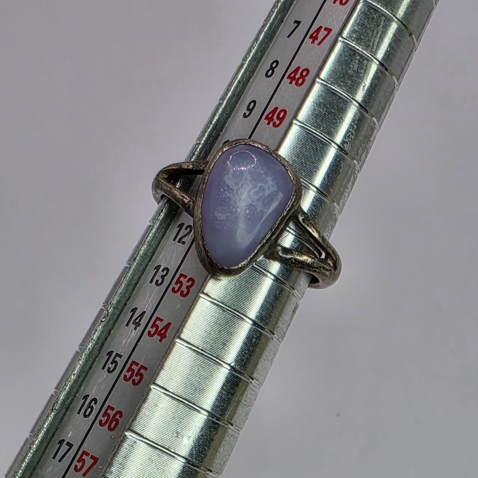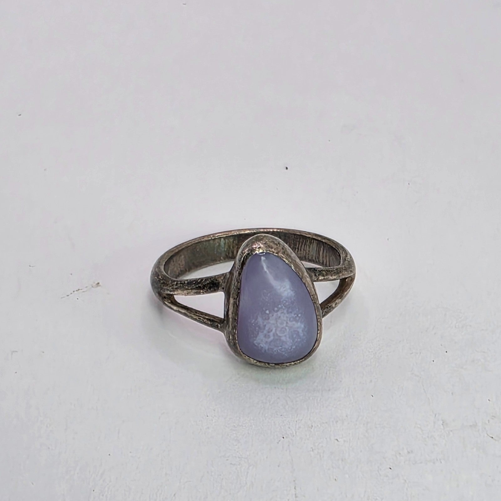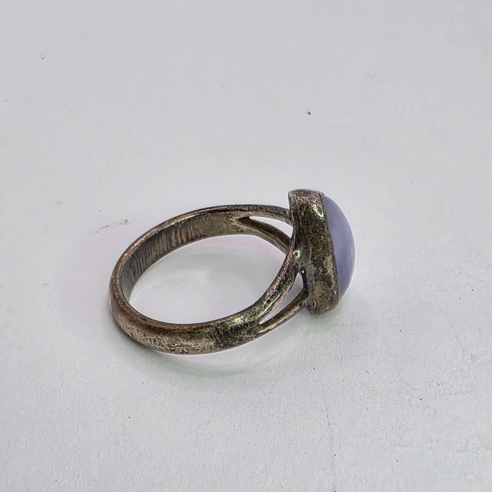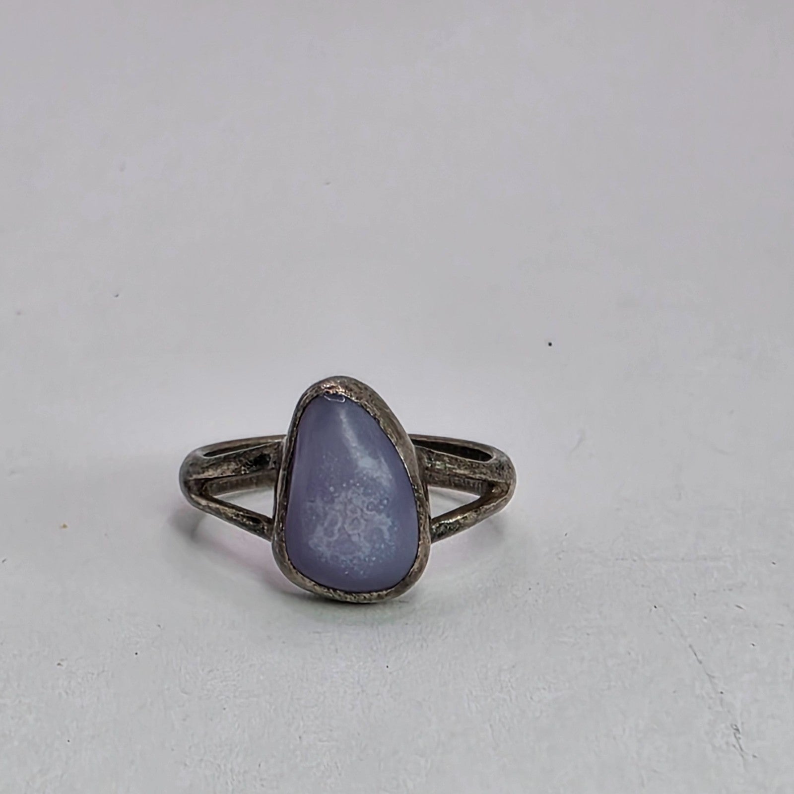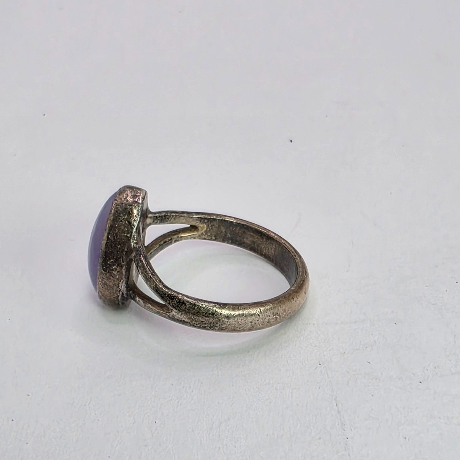 925 STERLING SILVER Ring purple marble Stone Art Deco Jewelry Vintage 5.75