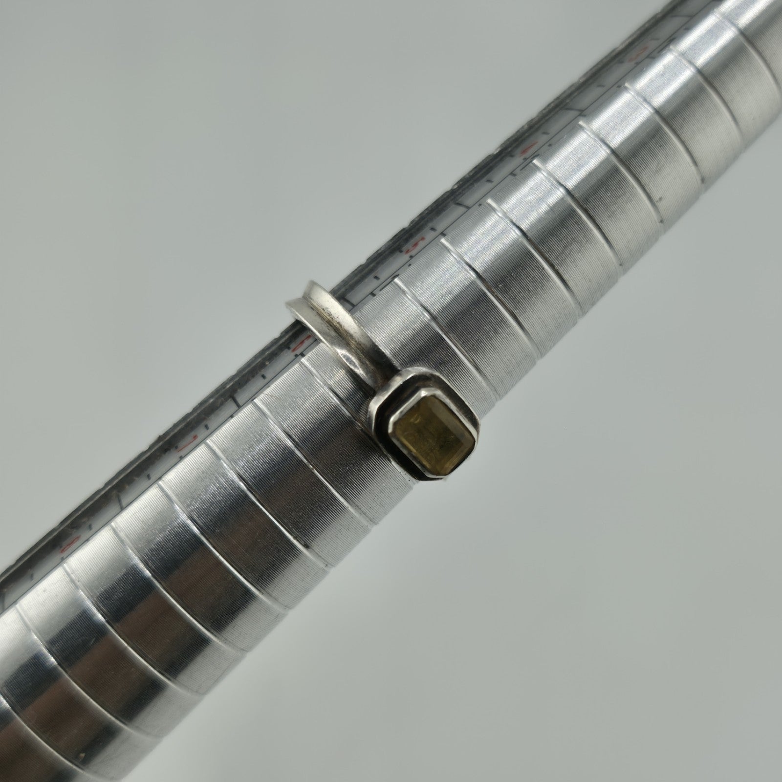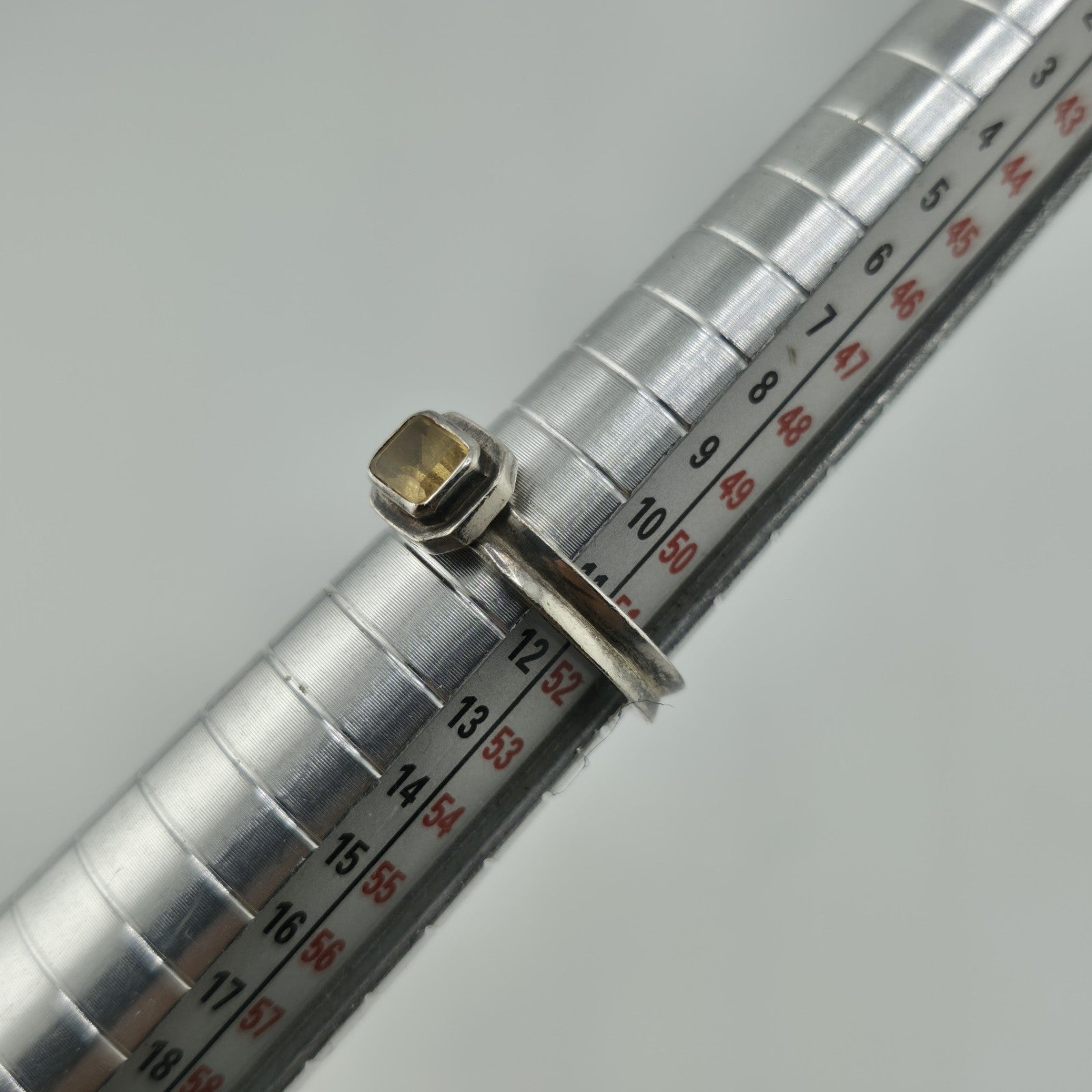 925 Sterling Silver Ring Yellow Gemstone Rectangle Sz 5.75 Vintage