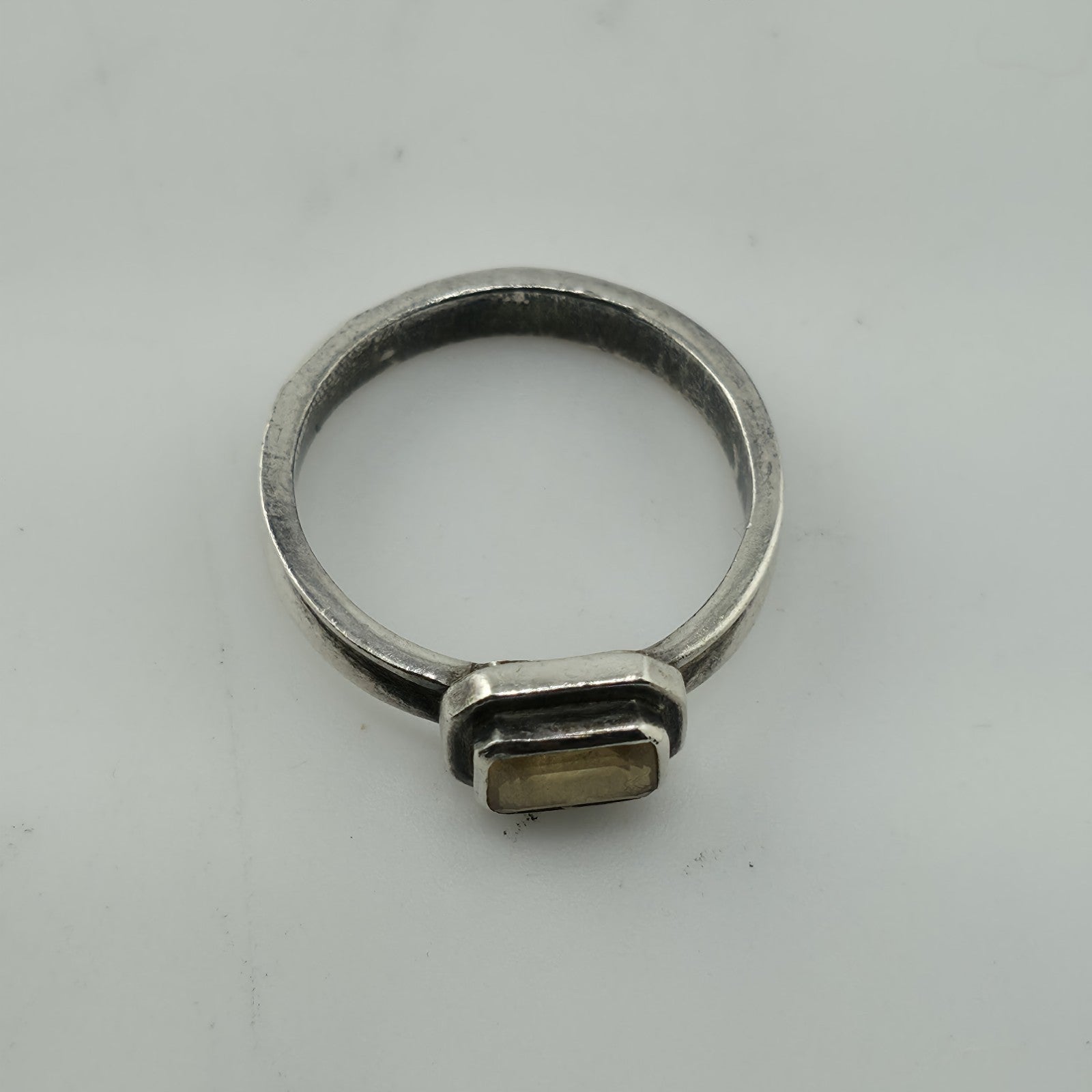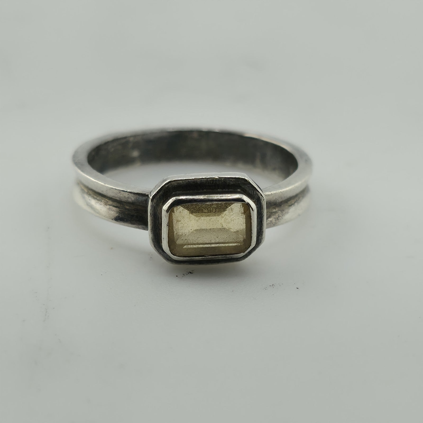 * Type: Vintage 925 Sterling Silver Ring Yellow Gemstone Rectangular Cut Sz 5.75 Jewelry
