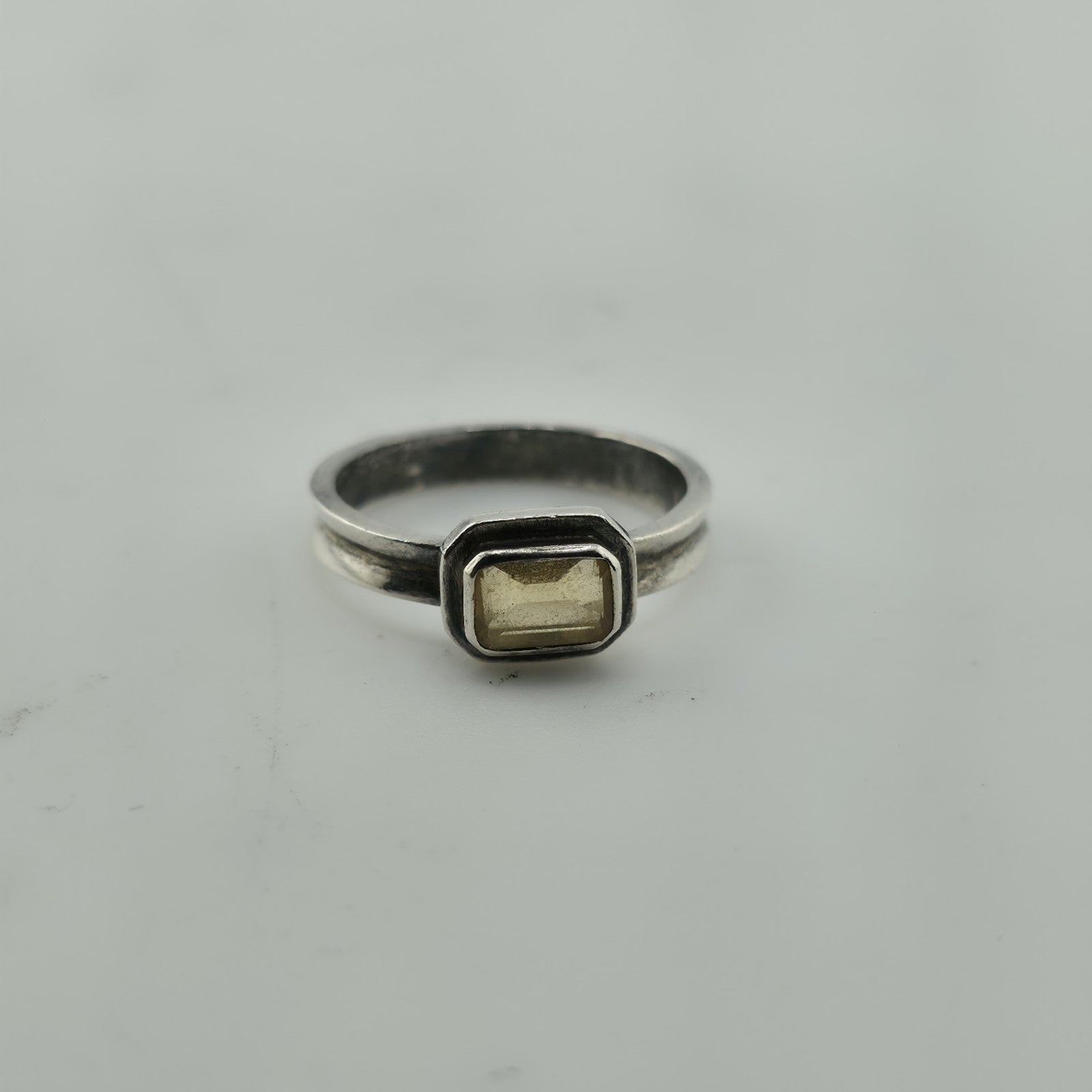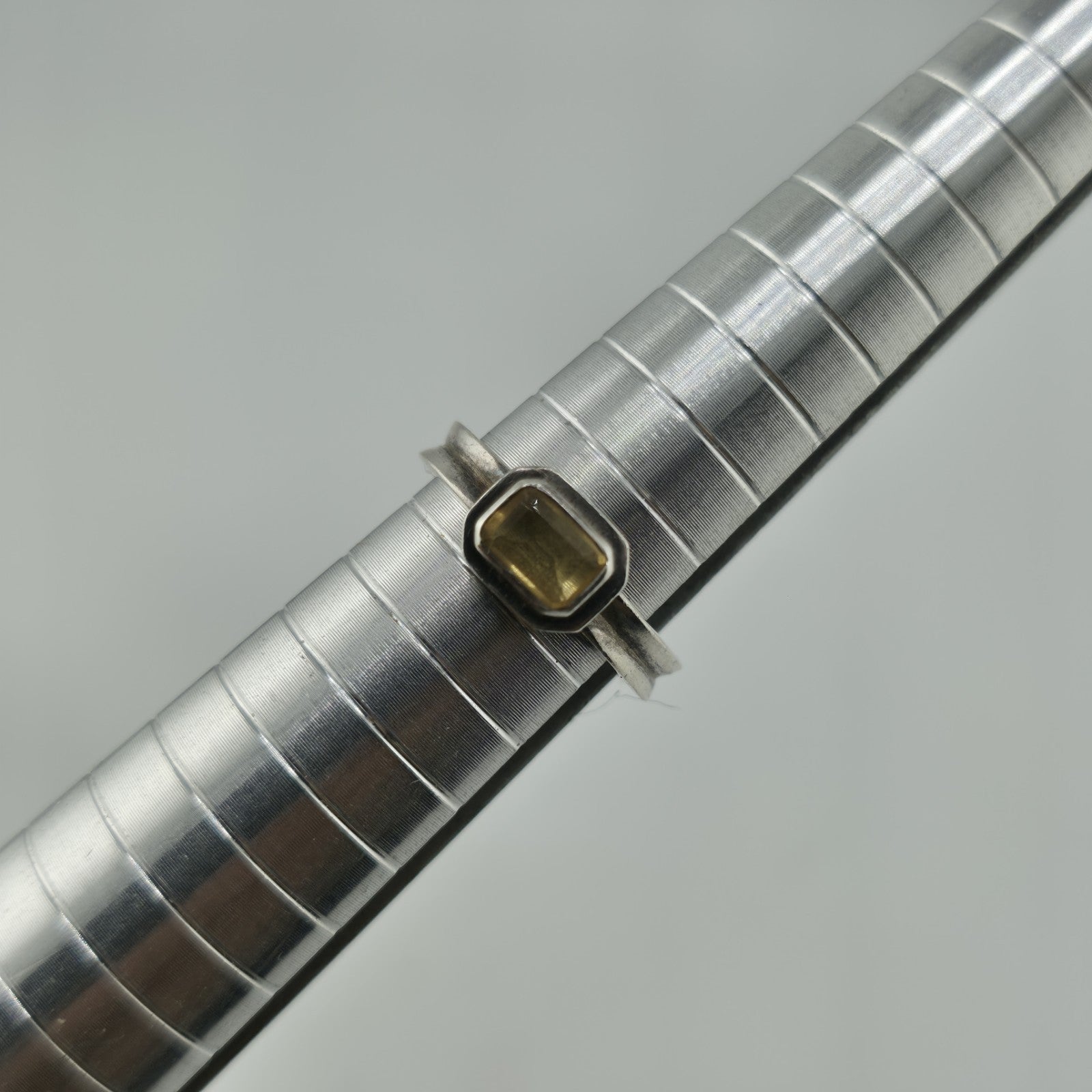 925 Sterling Silver Ring Yellow Gemstone Rectangle Sz 5.75 Vintage