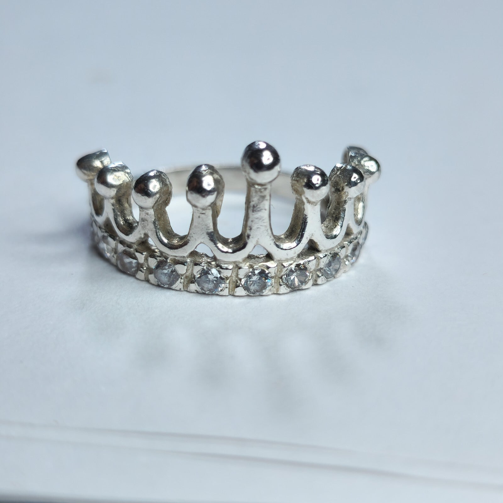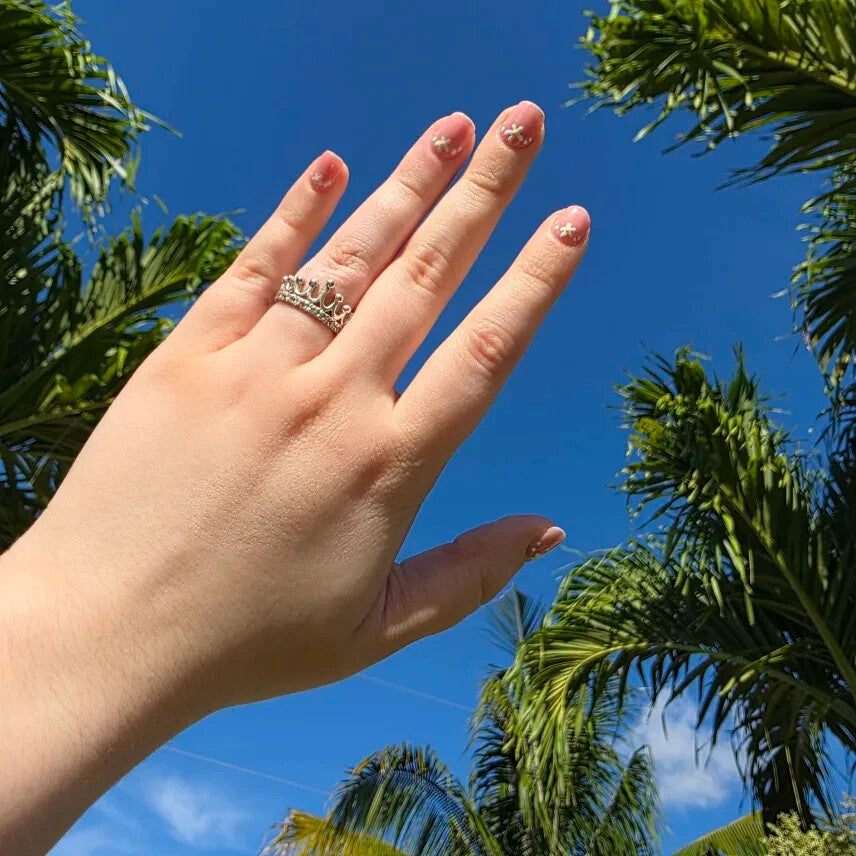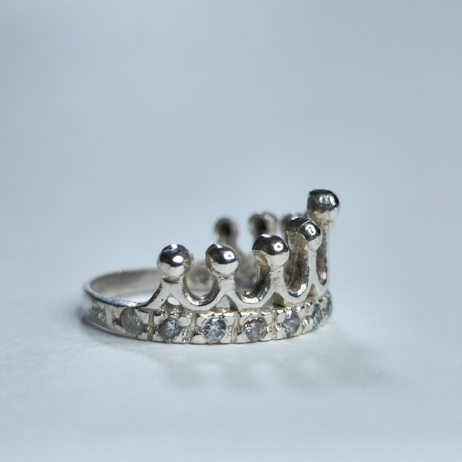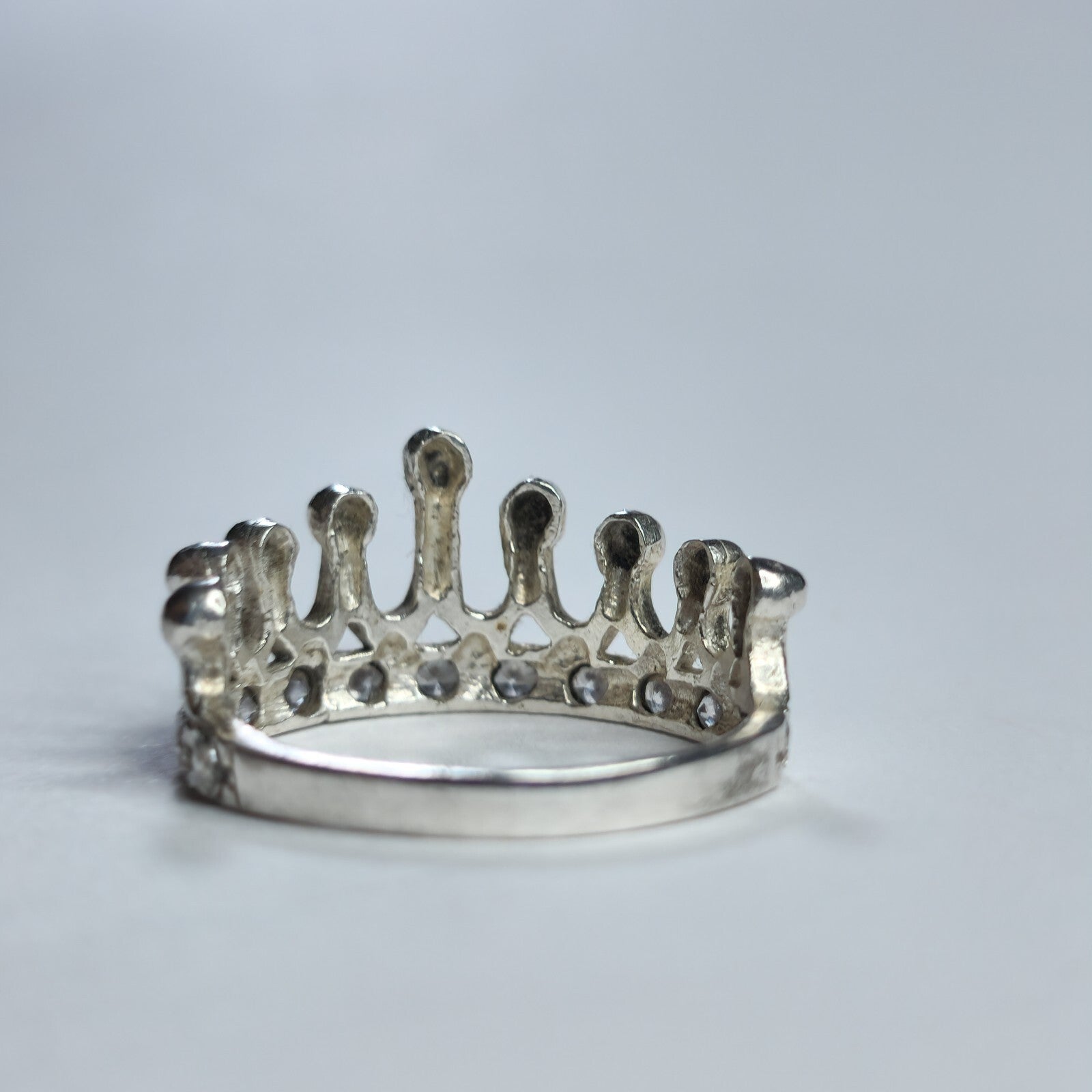 925 Sterling Silver Tiara Ring Princess Crown Band Size 6.5 Dainty Royal Style