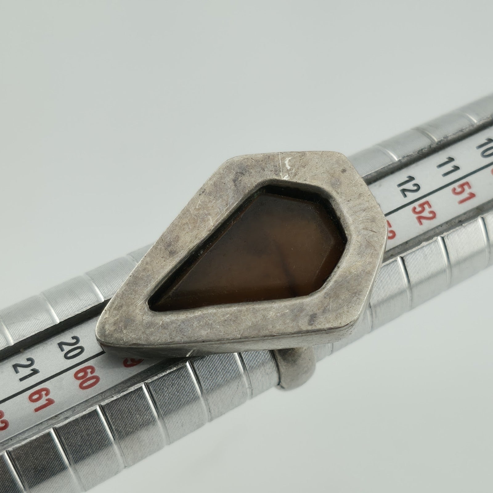 Amber 925 Sterling Silver Ring 7.5 MCM Chunky Teardrop Coffin Vintage Rare