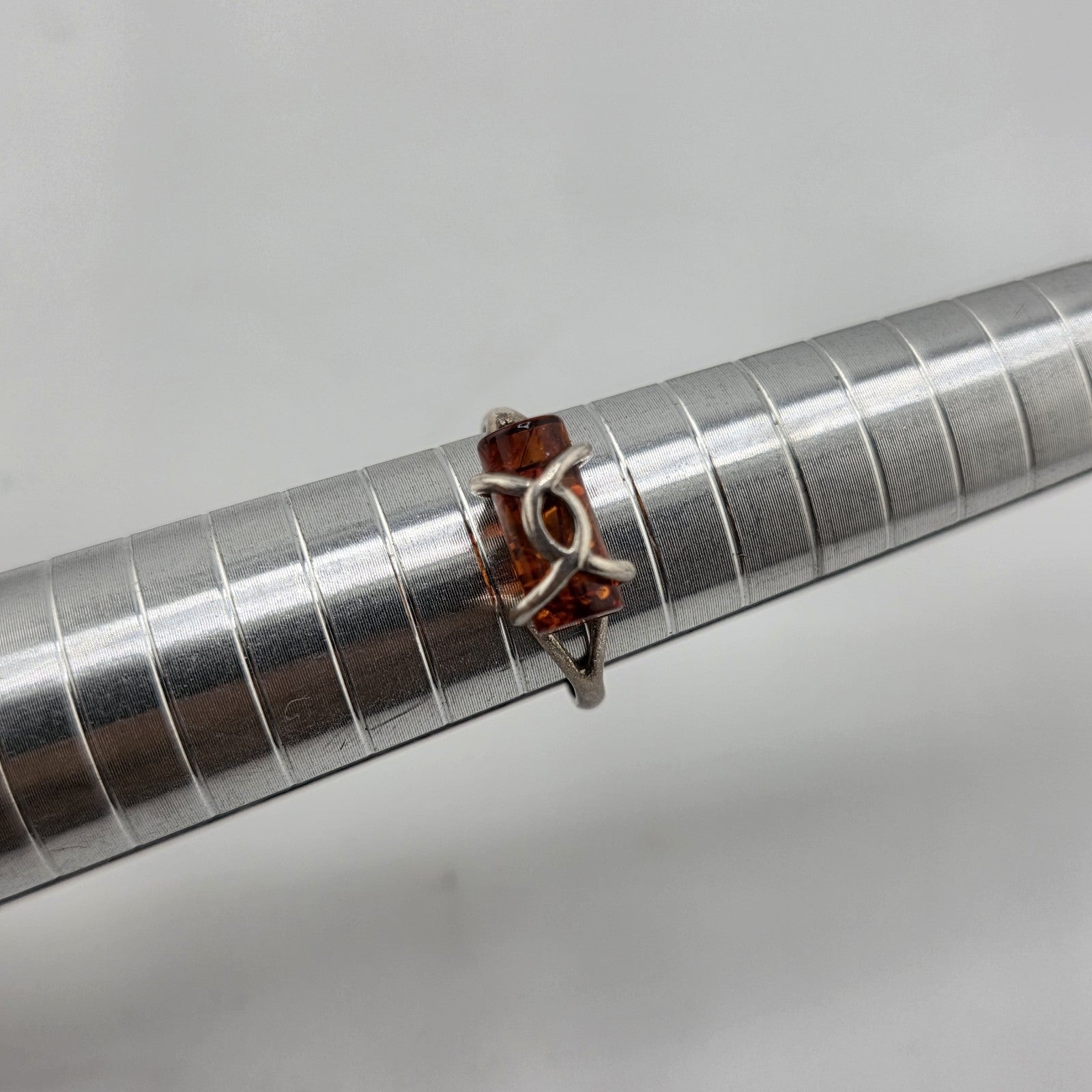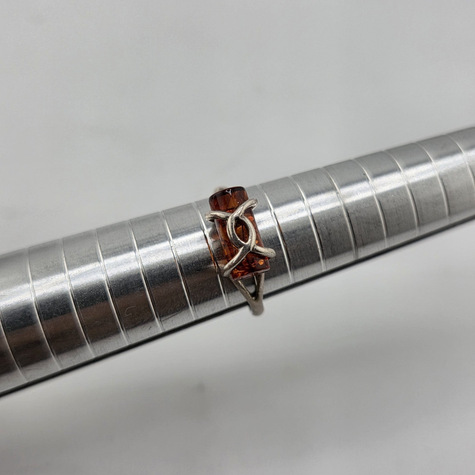 Baltic Amber Sterling Silver Ring Cylindric Stone Geometrical Modernist 6.5
