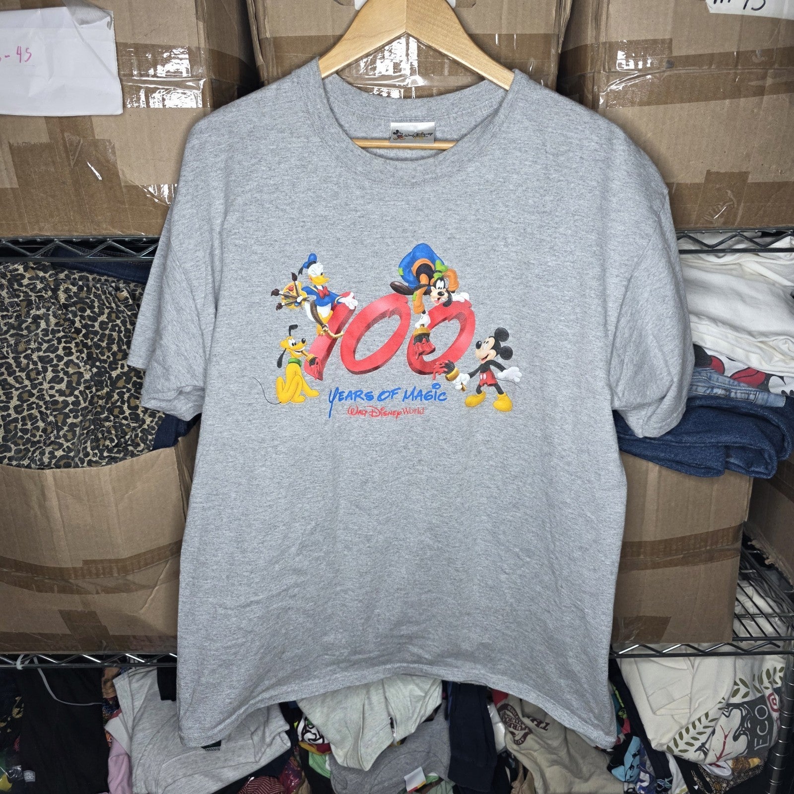 Disney Shirt Mens Large Gray World 100 Years of Magic Mickey Goofy Puto Vintage