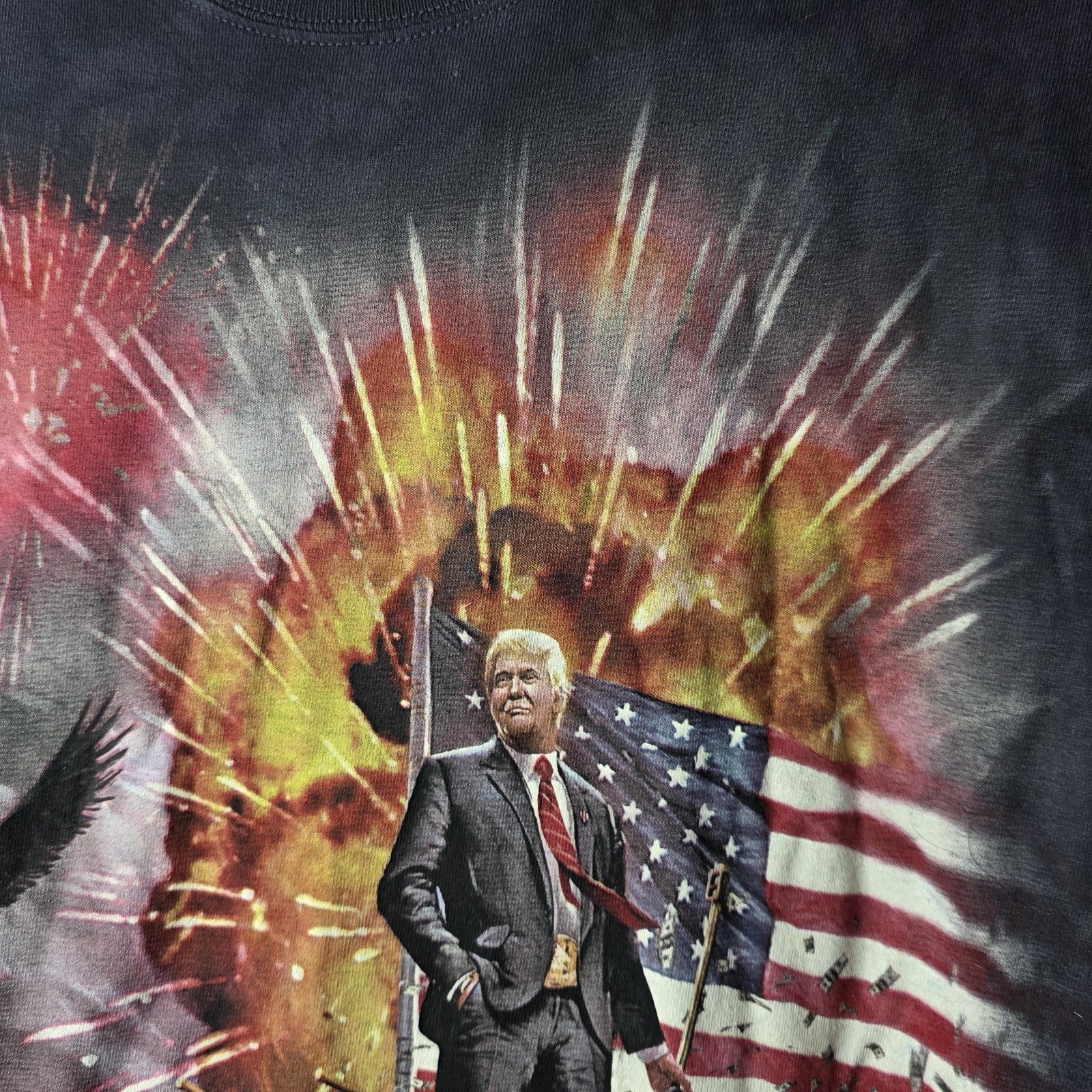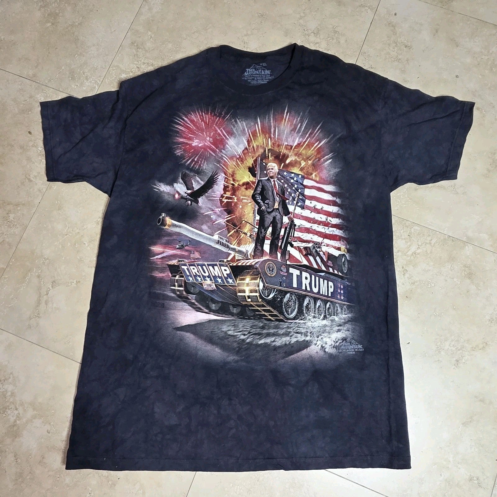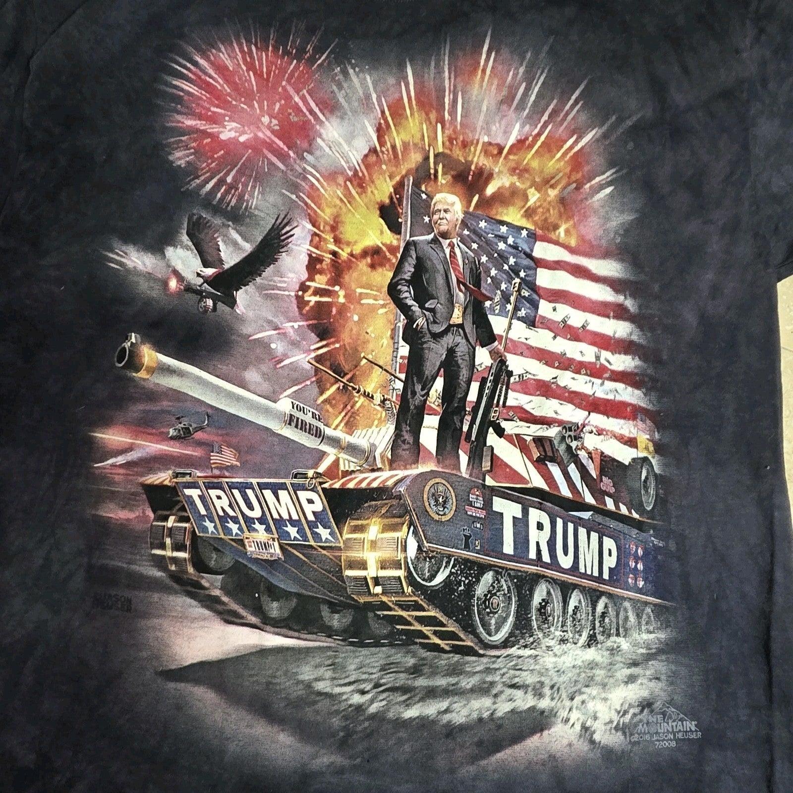 Condition: Pre-owned vintage condition. Shirt shows wear and small holes on the back, but graphic print on front remains bold and striking. Tagged XL, made by The Mountain. Perfect for collectors of political memorabilia or vintage graphic tees. Please view all photos for details.