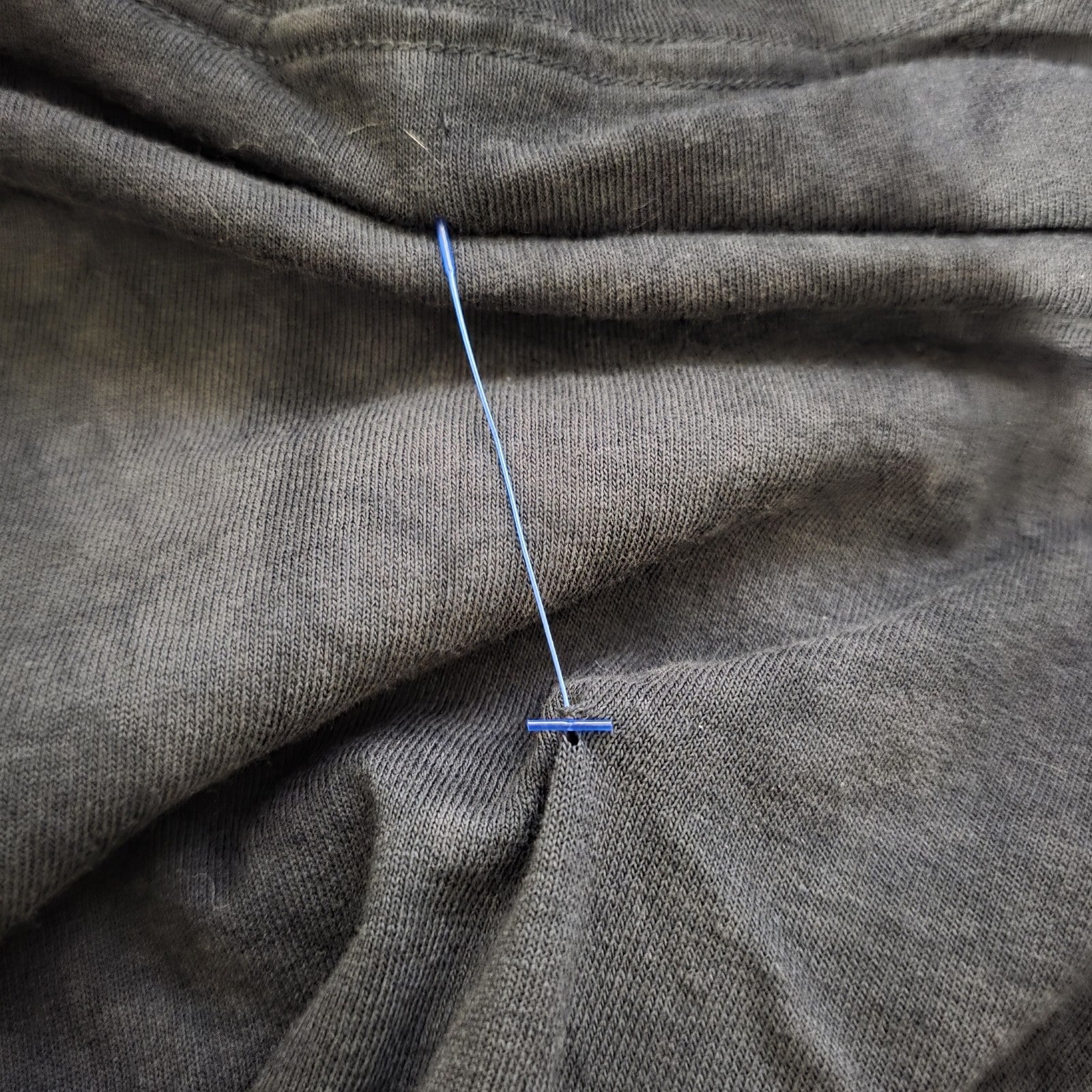 * Holes: Yes – small holes on the back of the shirt (see photos)