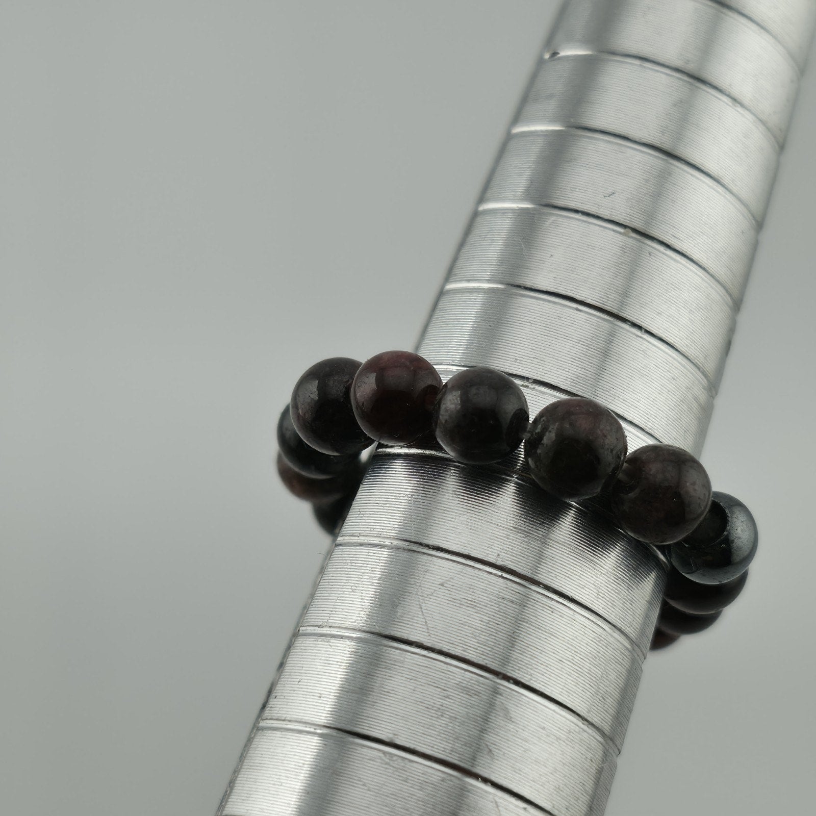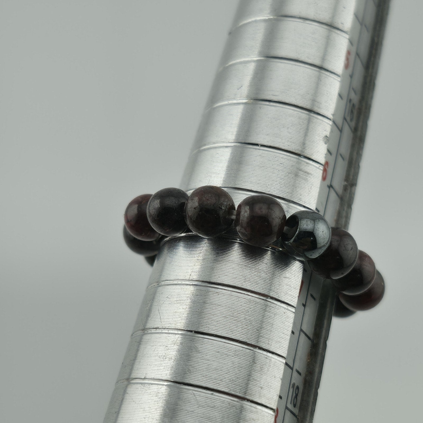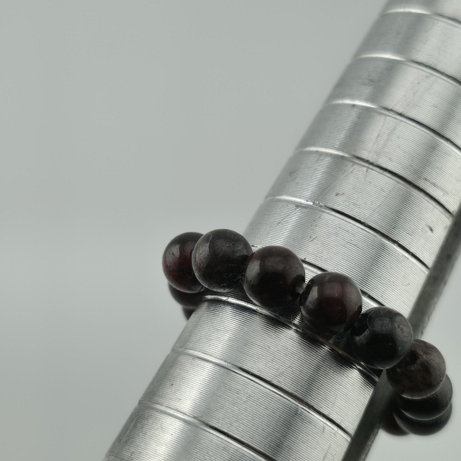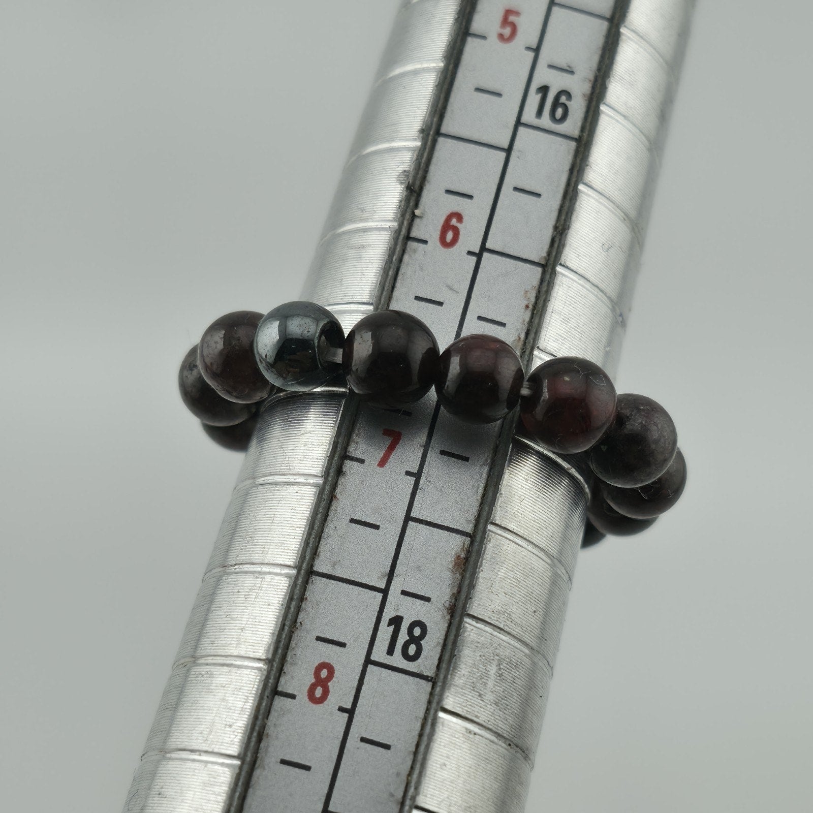 Garnet Beaded Bracelet Natural Stone Stretch Dark Red Black Round Beads 6.5 - 7