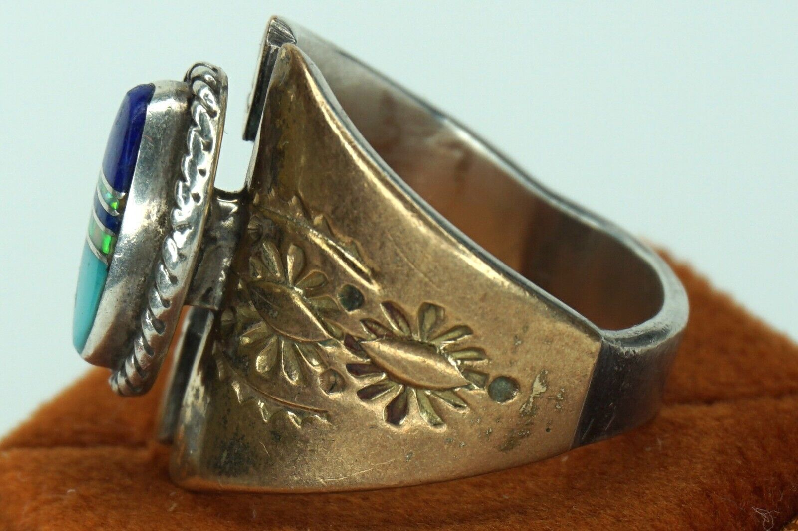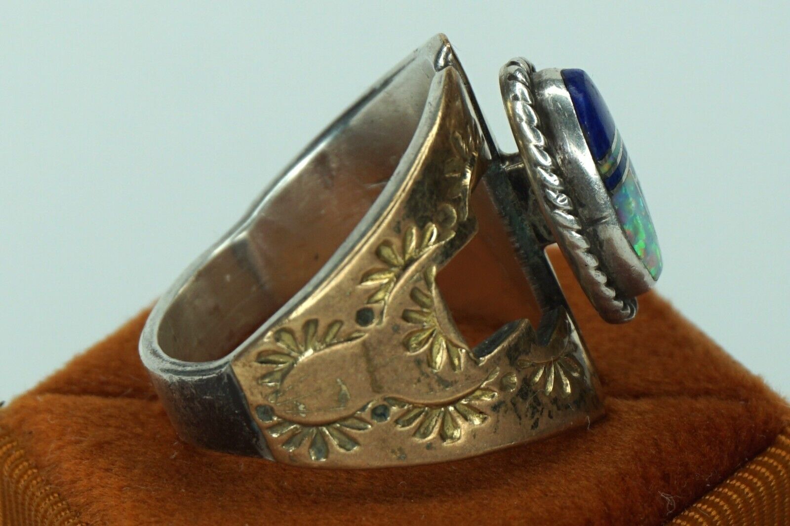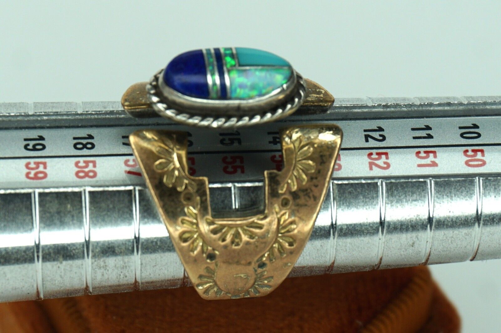 Larry Pacheco Vintage Ring 7 Sterling Silver Copper Lapis Opal Inlay Southwest