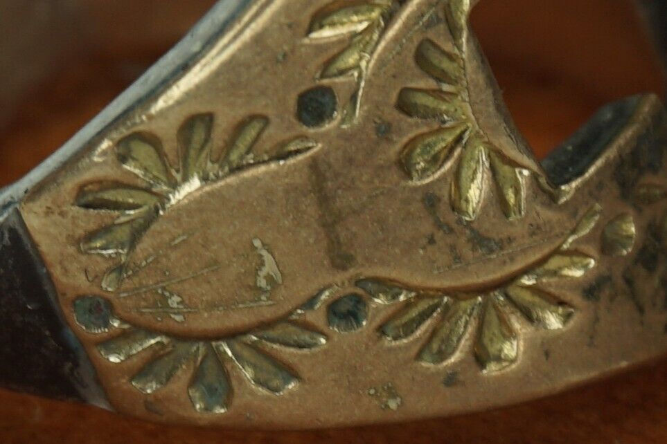 Pre-owned, vintage condition with signs of wear. Stones and inlay are intact with light flaws. Please review all photos to see wearing.Â