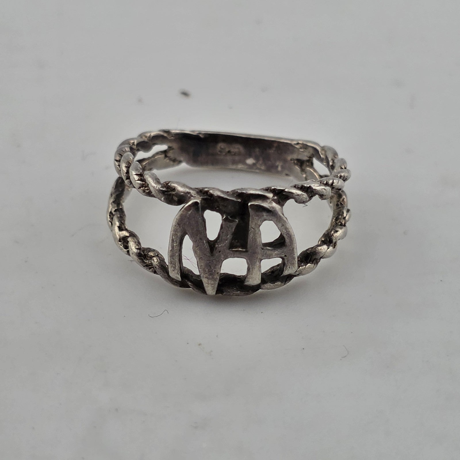 Narcotics Anonymous Sterling Silver Rope Ring 925 NA Size 6.25 Tapered Sober