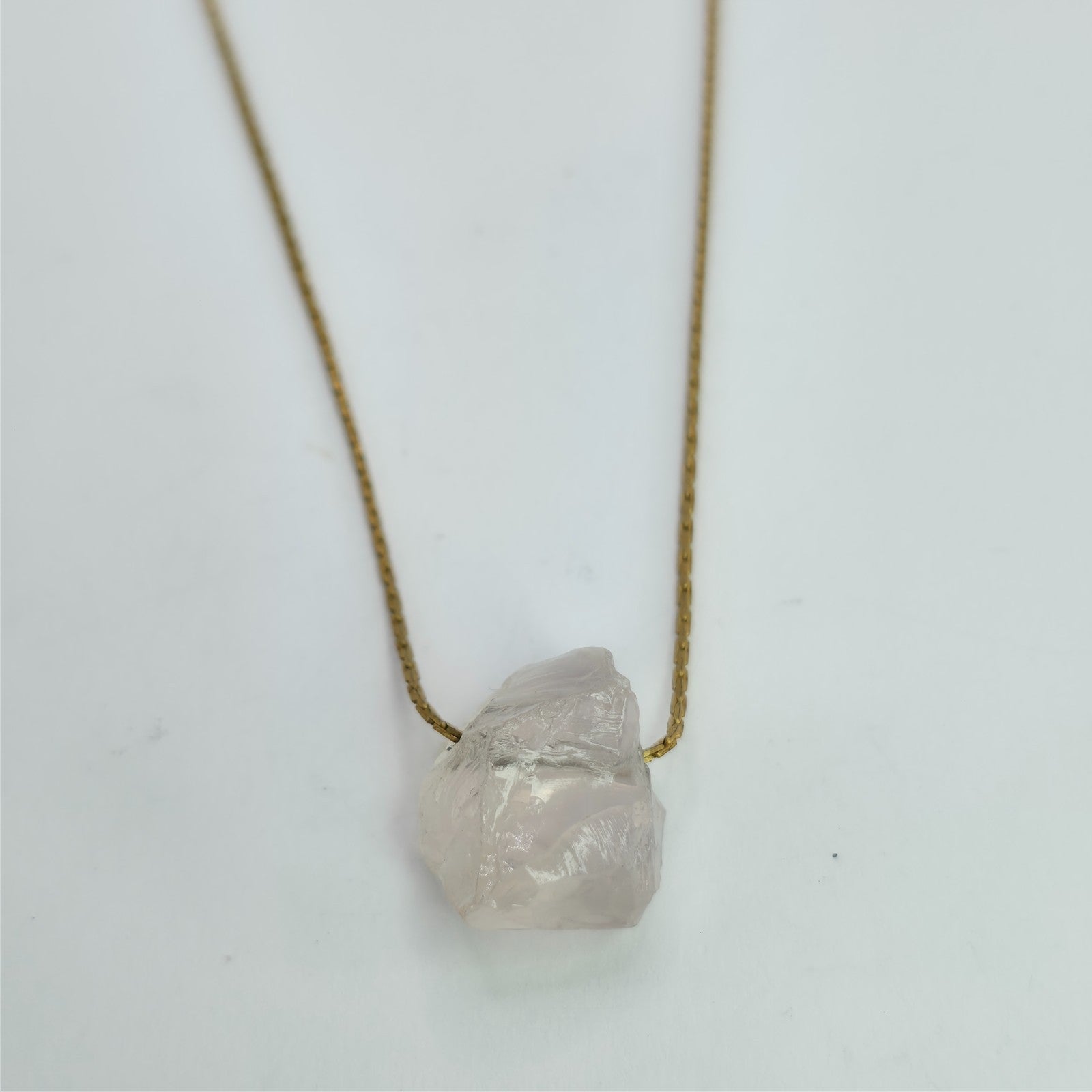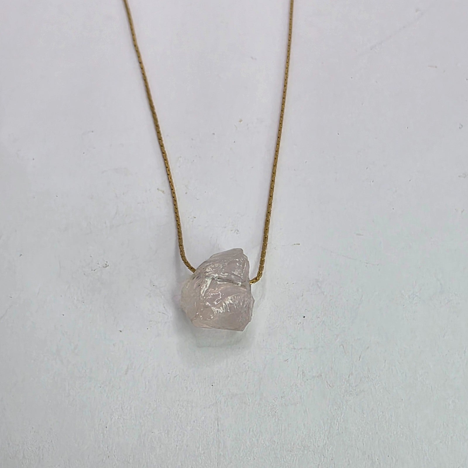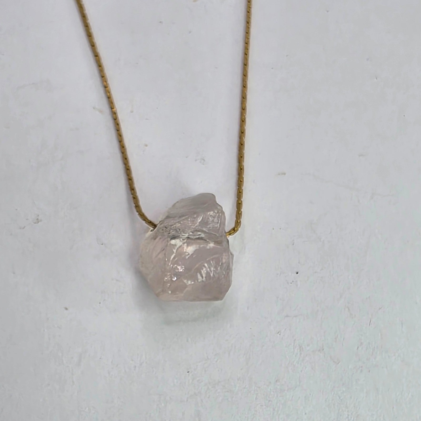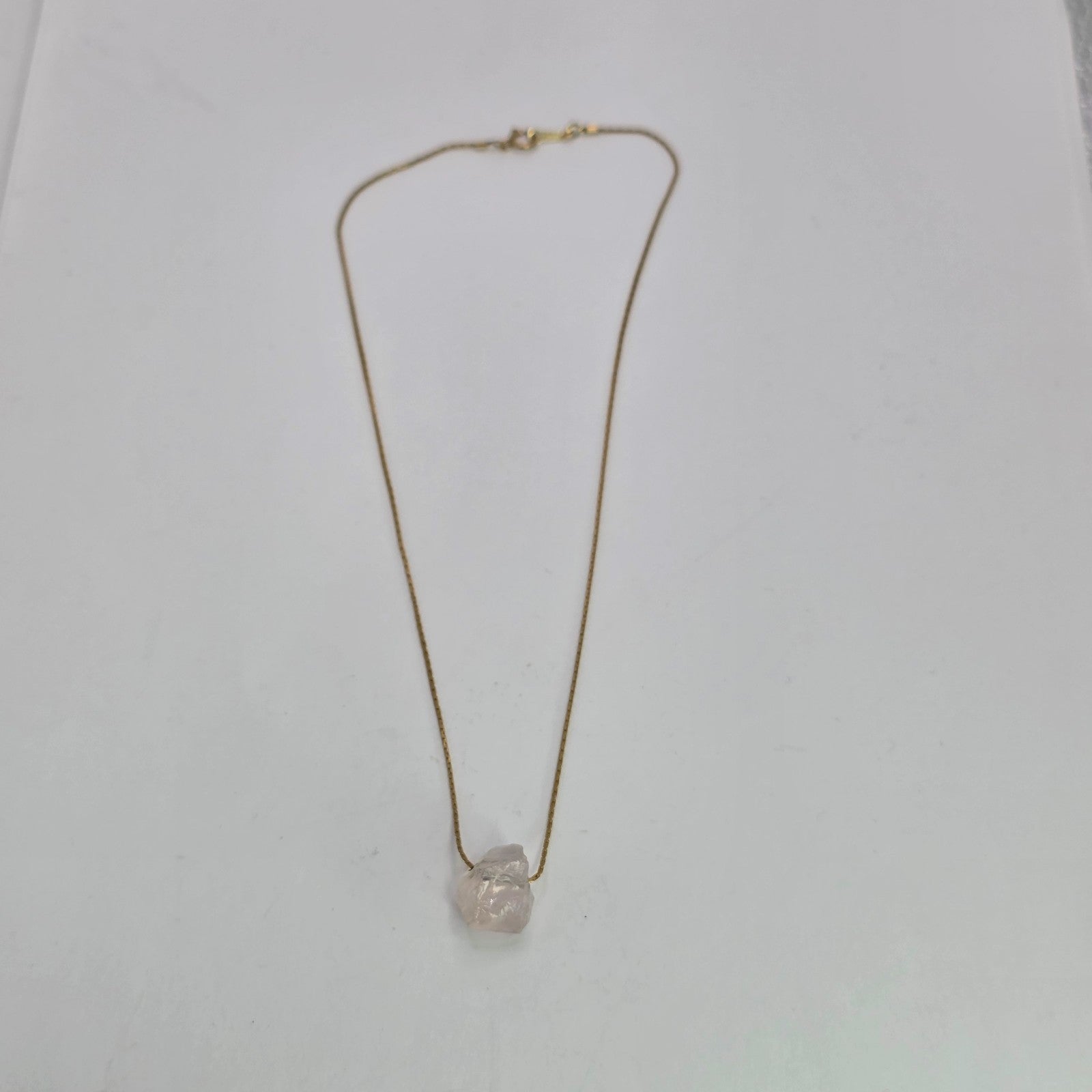 Necklace 14K Gold Over Brass GF Raw Quartz Pendant SIZE 14" Cute Dainty Jewelry