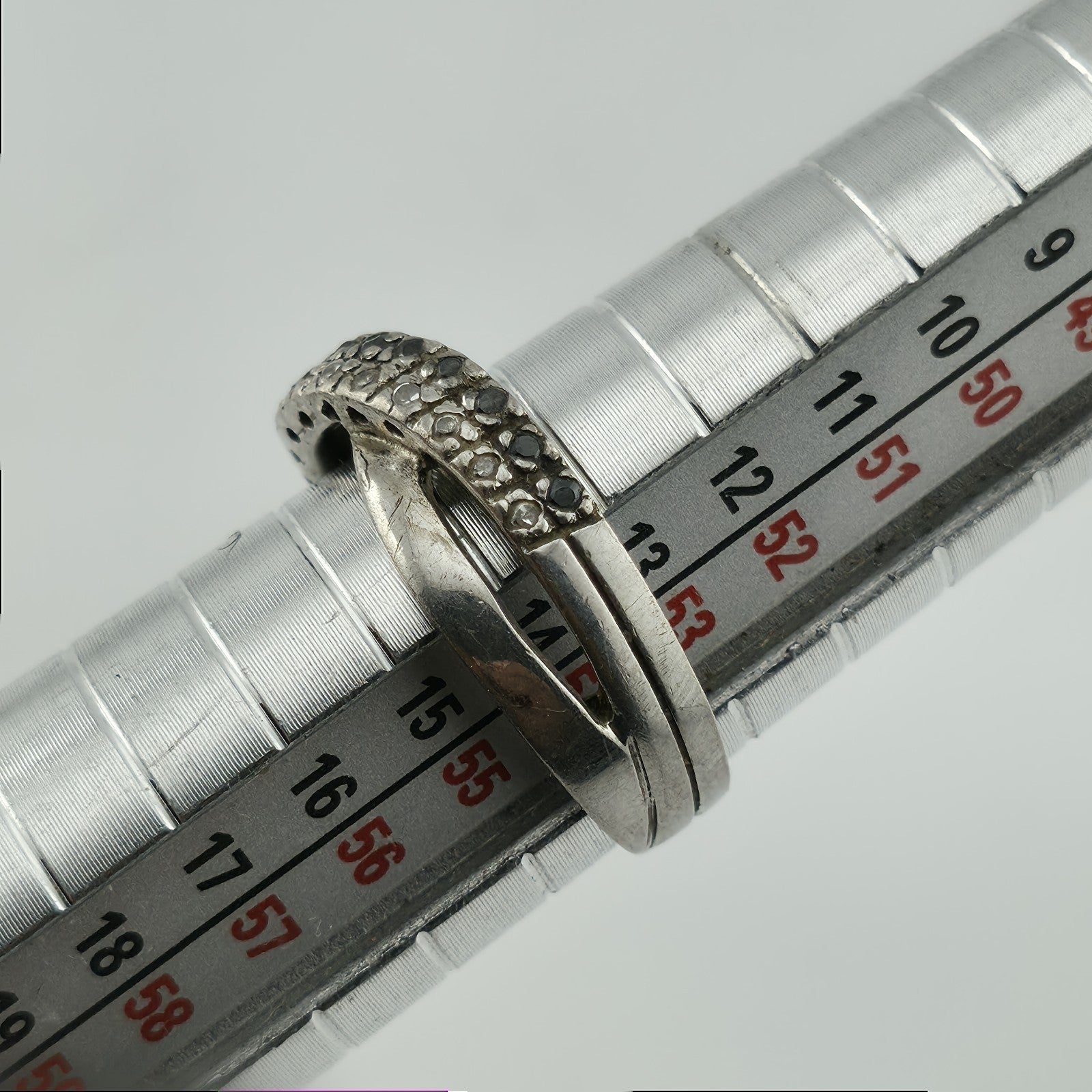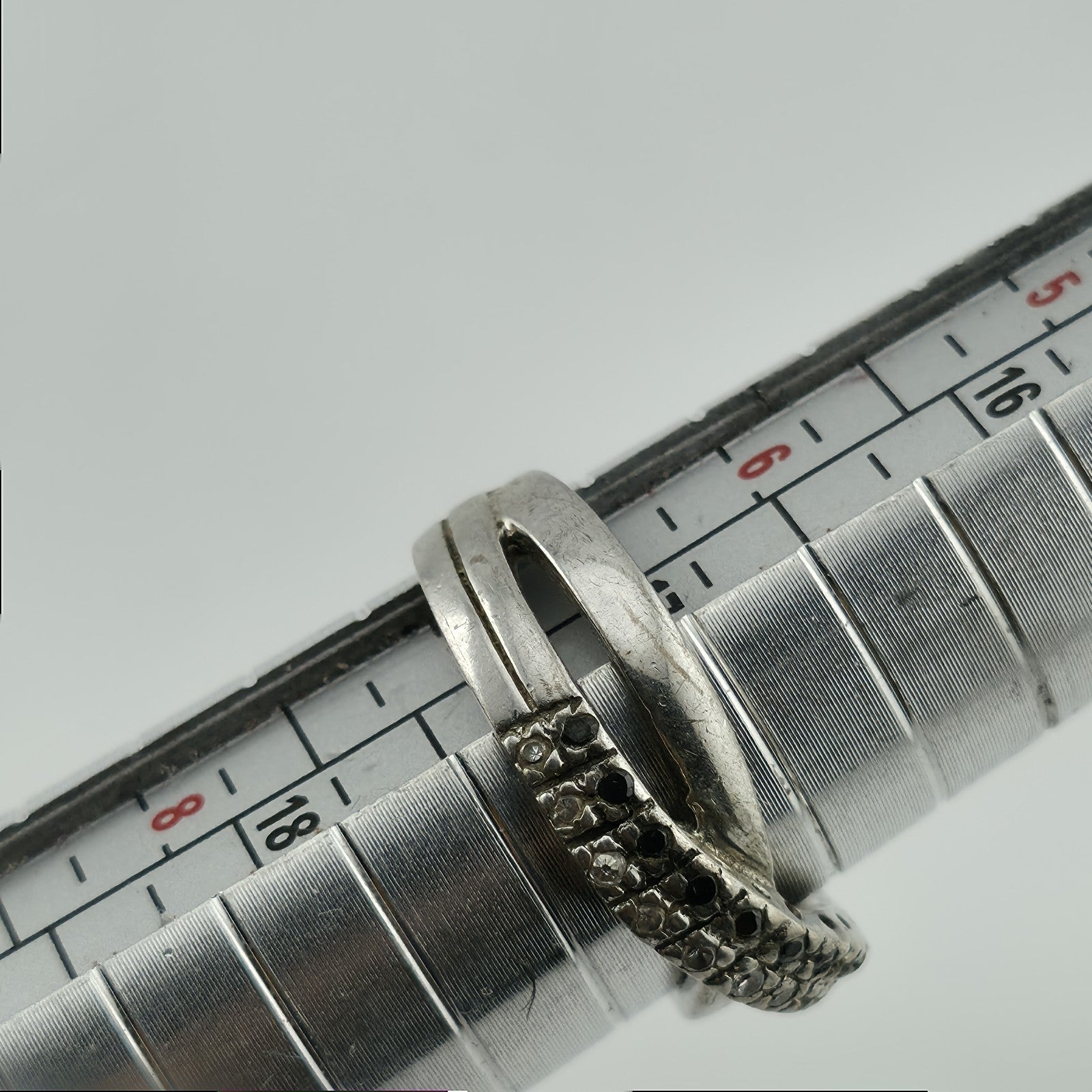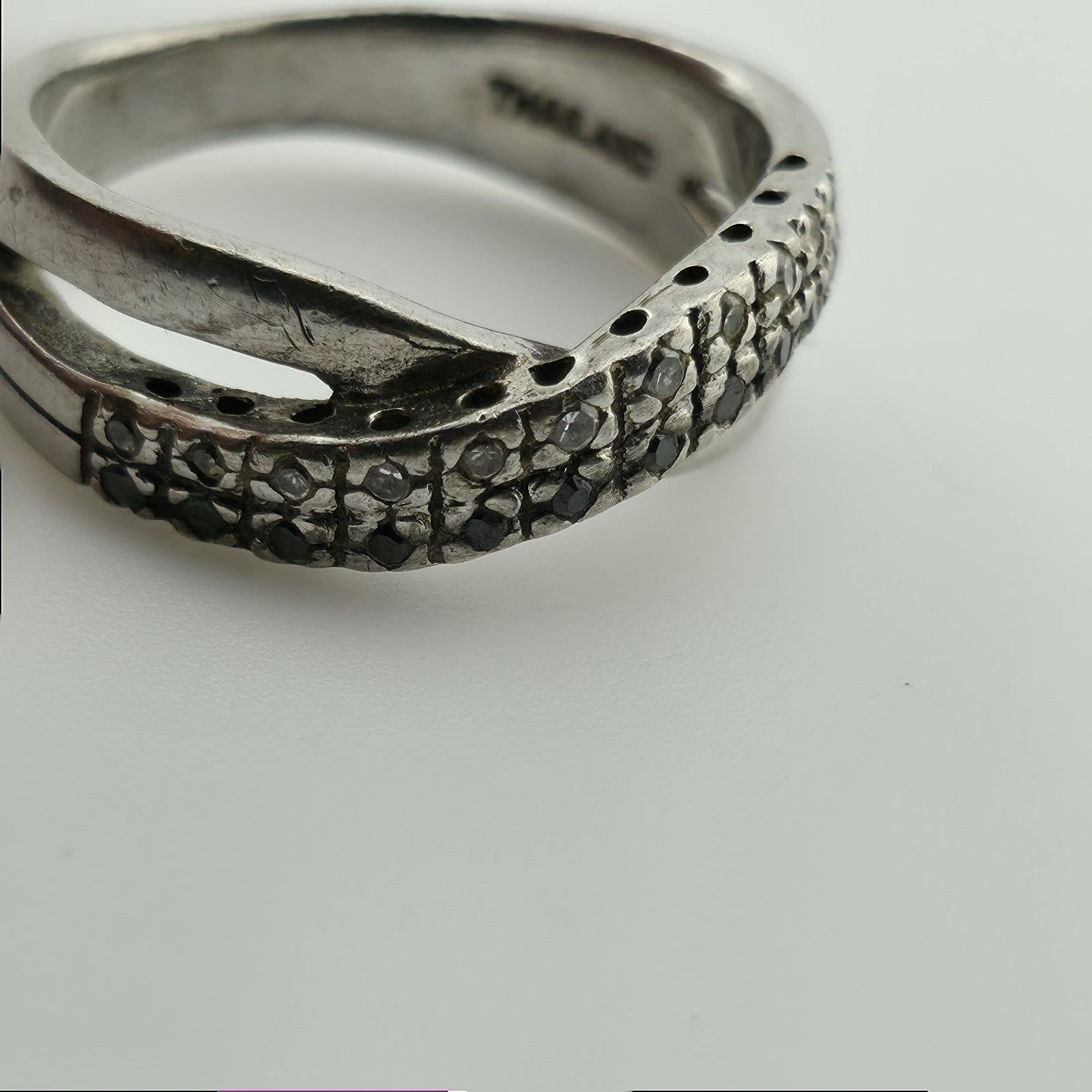 NF Sterling Silver Ring 925 Intertwined Crossover white black Stones Size 7