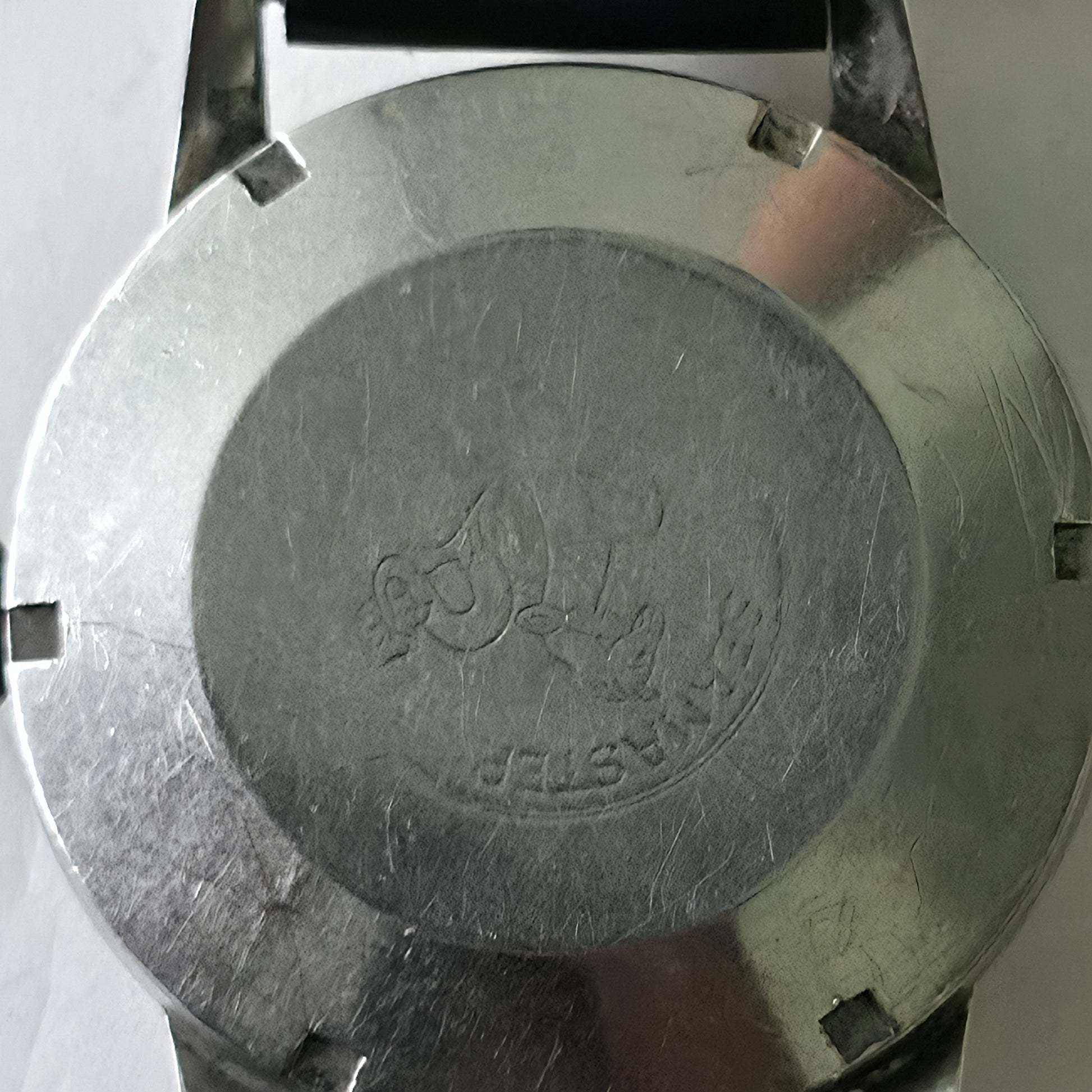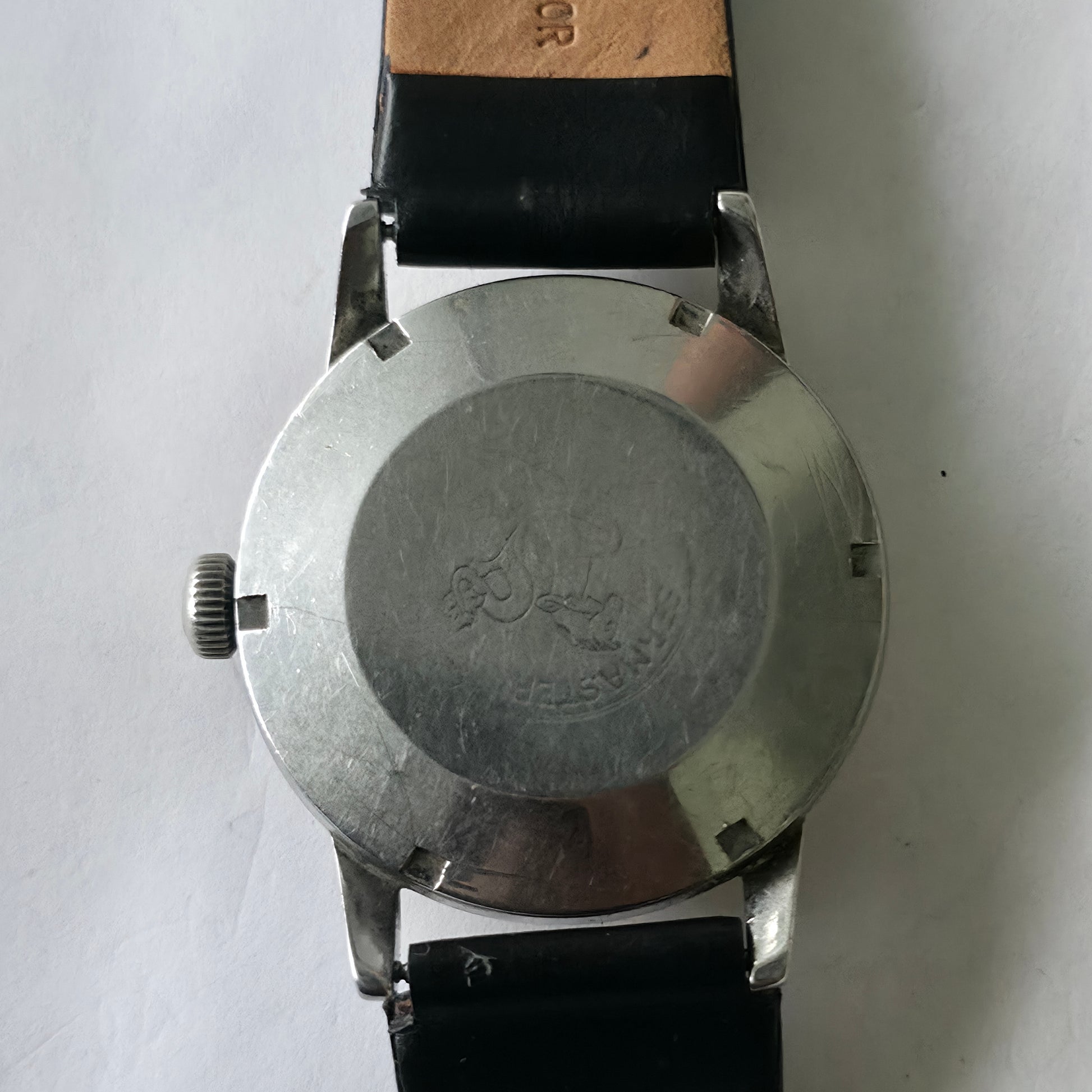 Holes: Crystal has wear and a side crack; caseback is faded but engravings still visible under light