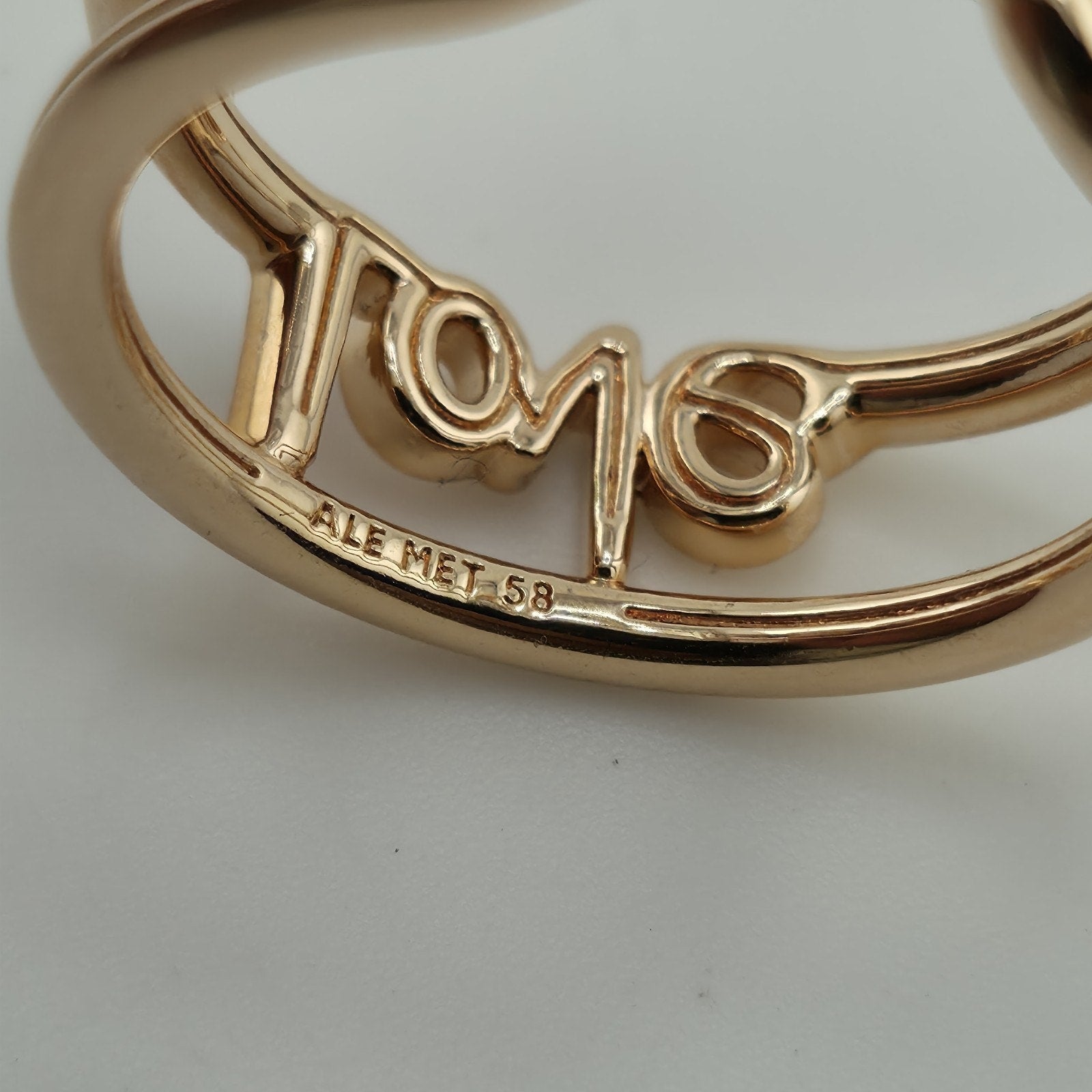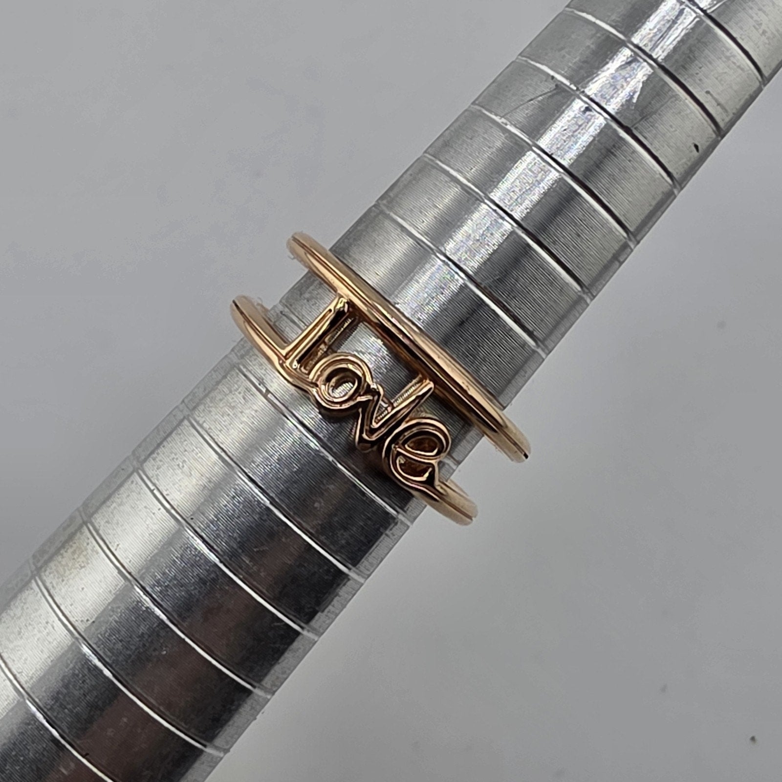 Authentic Pandora ME Love Open Band Ring in size 8. Features a 14K rose gold plated finish with open band styling and retired design appeal. Marked ALE and comes new in box. A great giftable Pandora piece or collectible retired style. Please review all photos for exact condition and details.