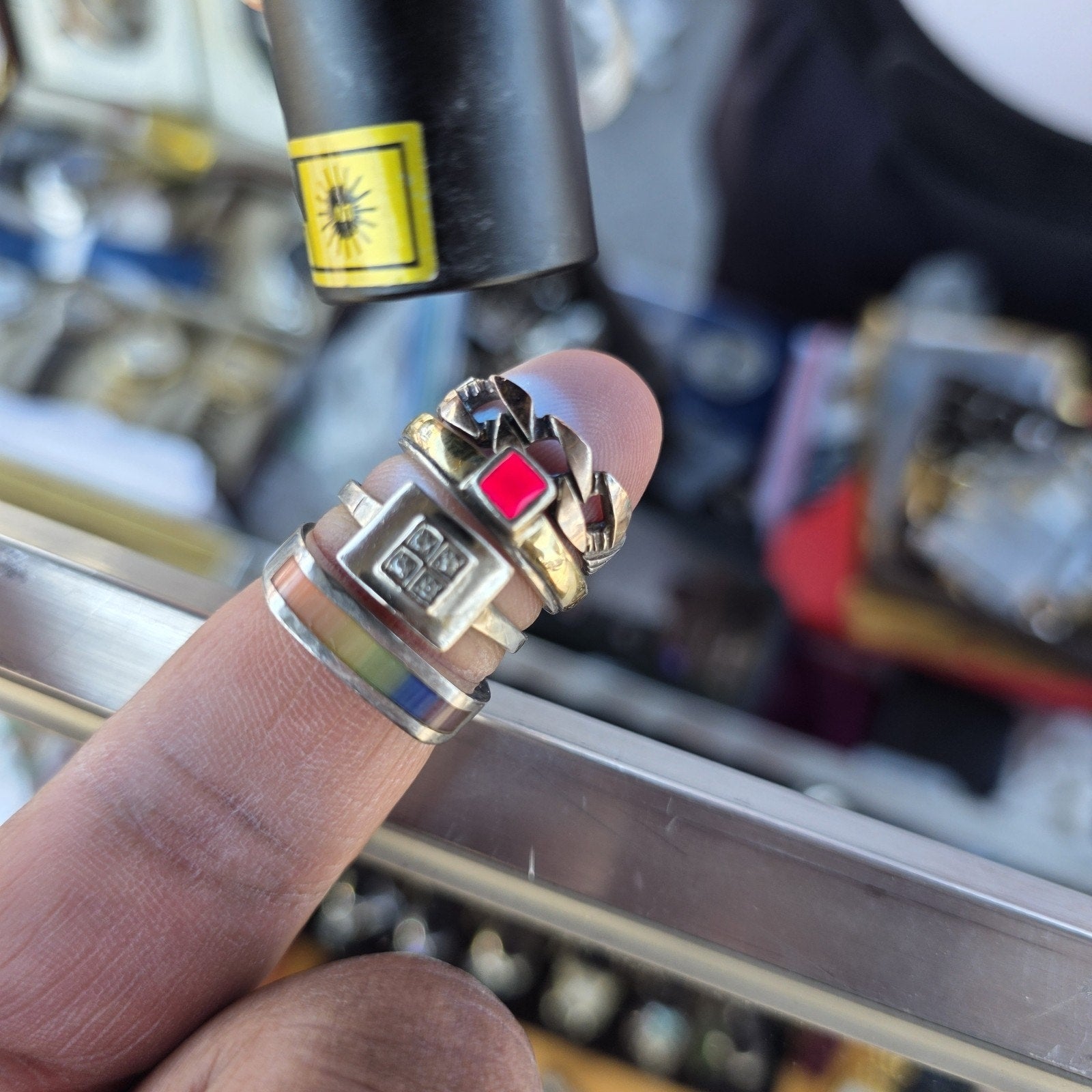 Sterling Silver 18K Gold Band Ruby Ring 6.25 FB Italy Two Tone Stackable Vintage
