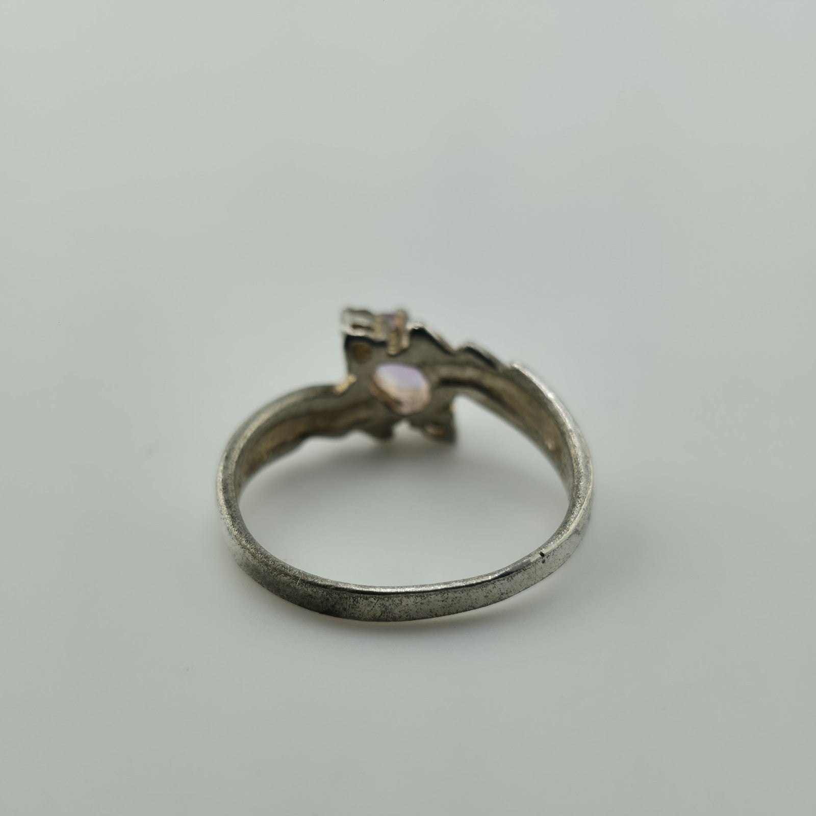 Sterling Silver 925 Amethyst Ring CZ Accent Swirl Band Vintage Size 7.25