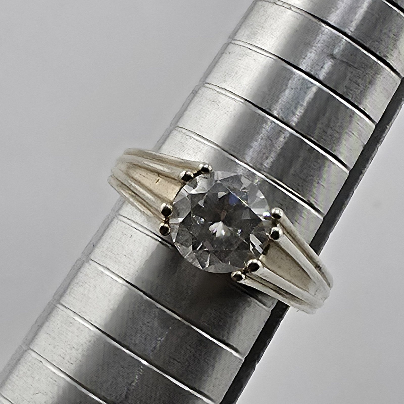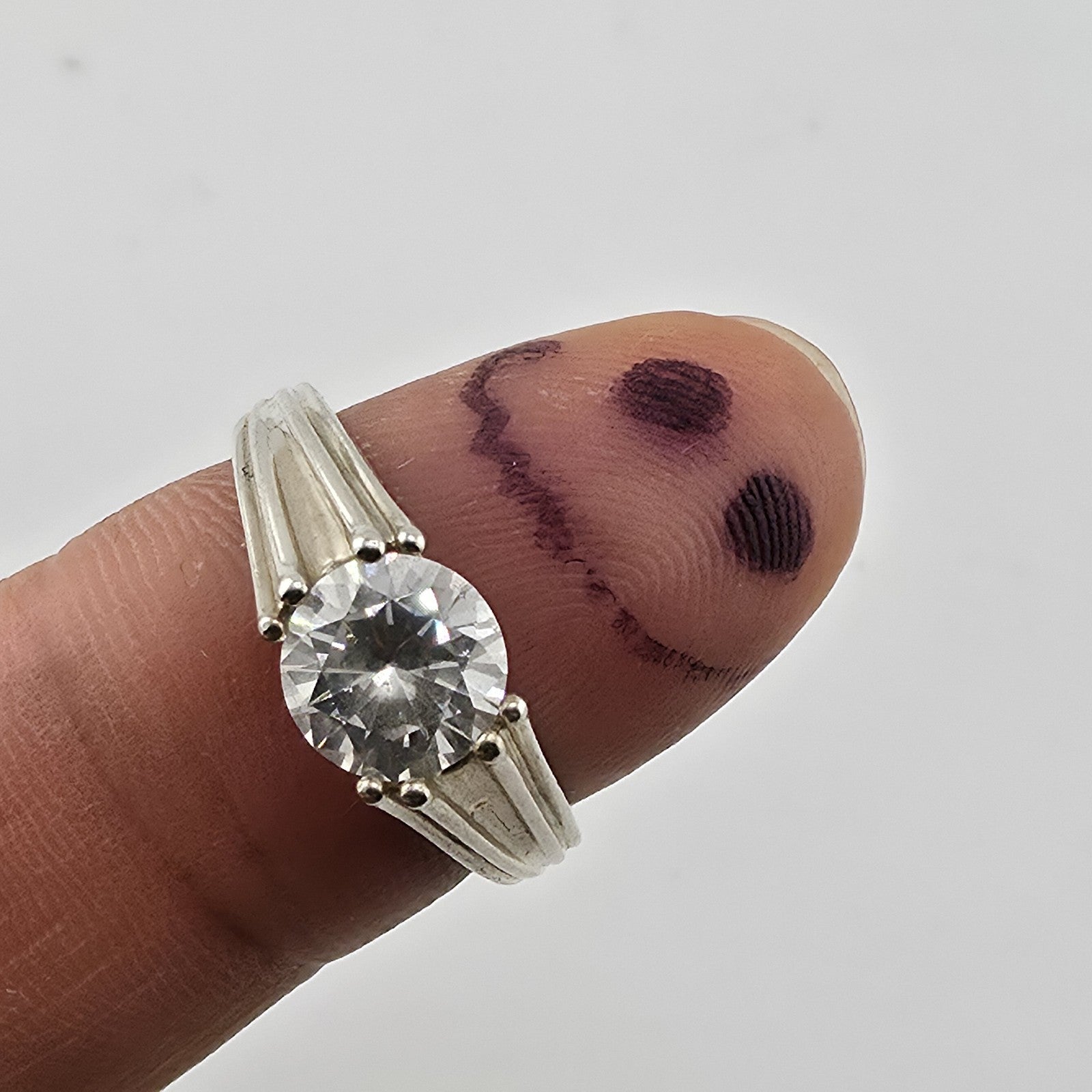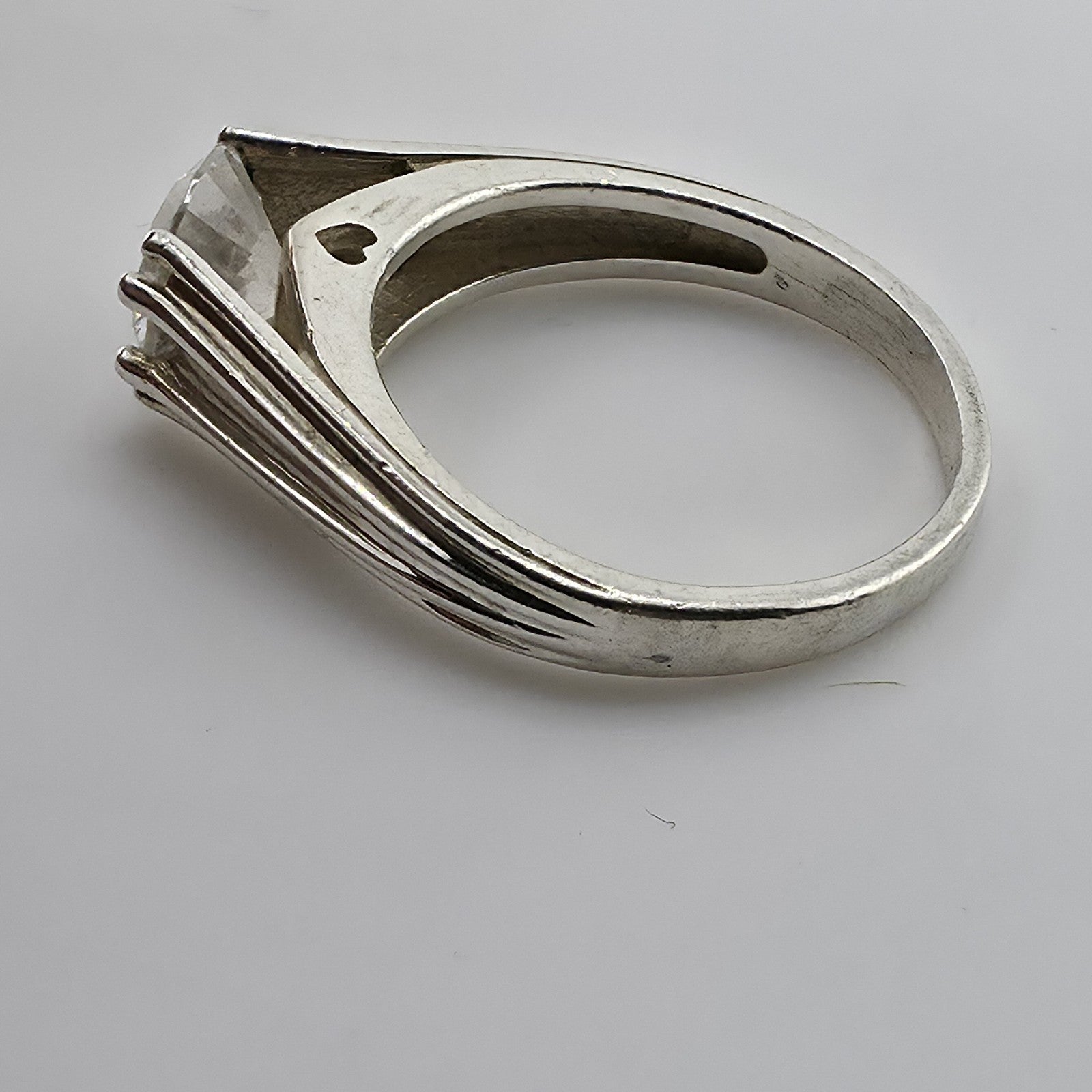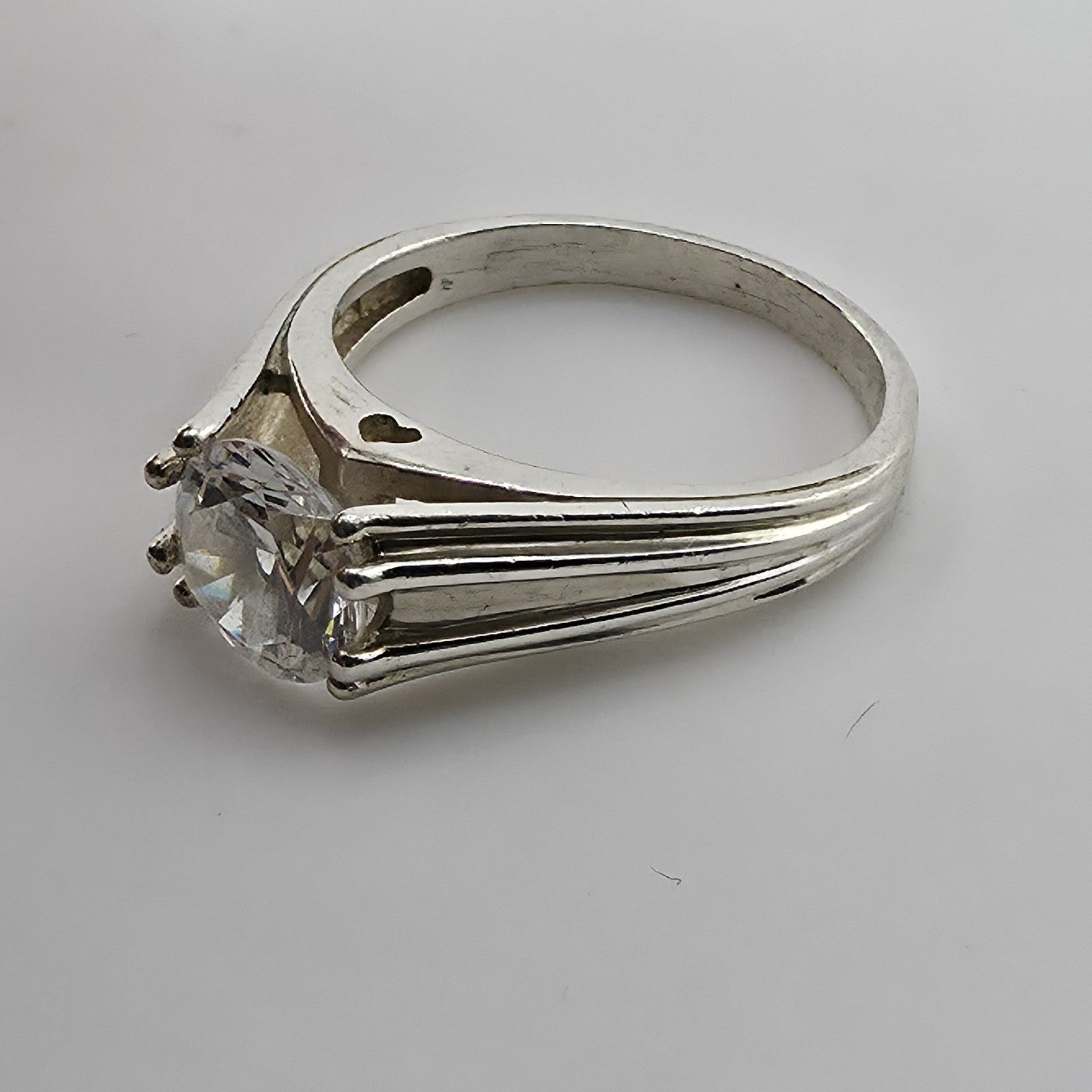 Sterling Silver 925 CZ Solitaire Ring Round Stone Modern Band Size 8.75 Heart