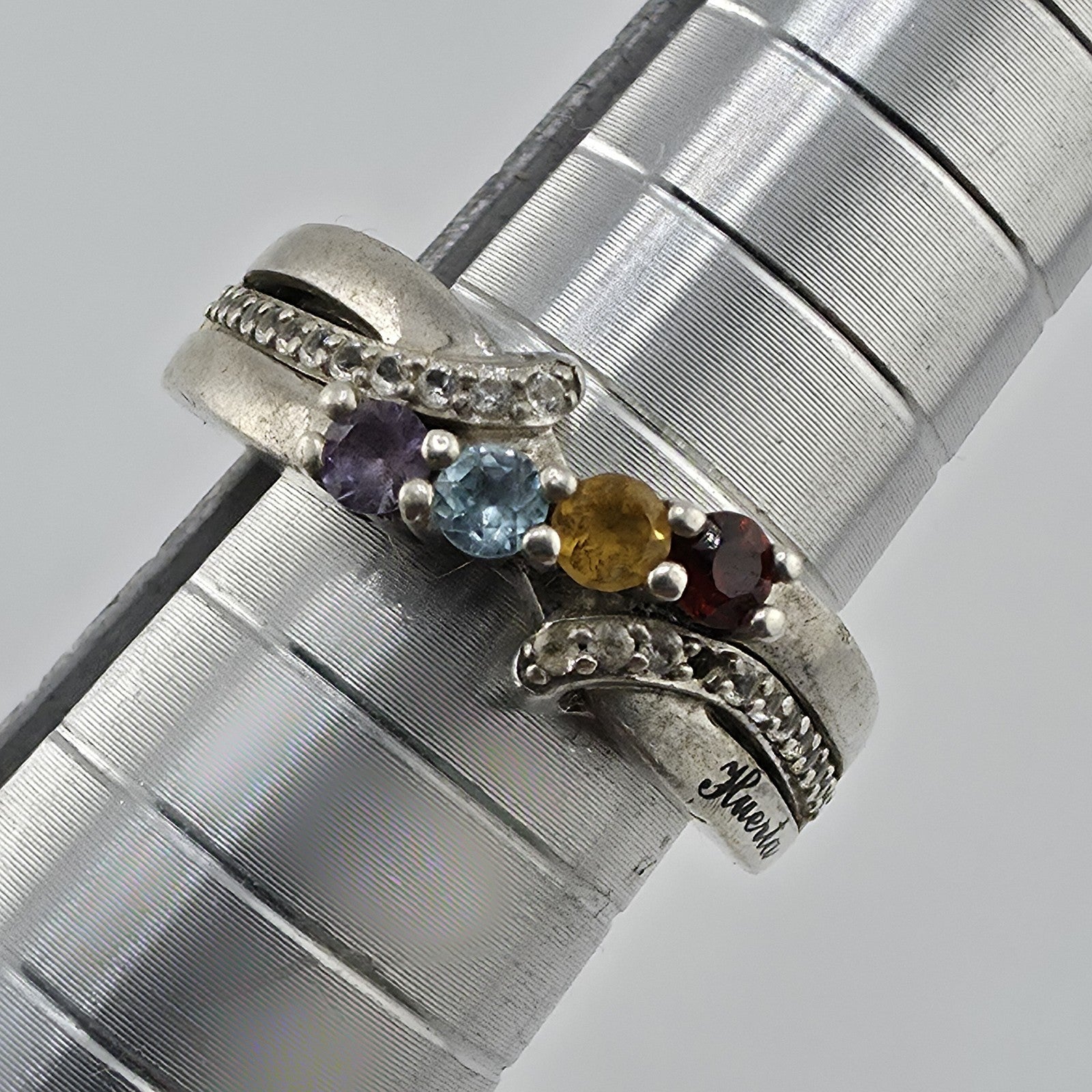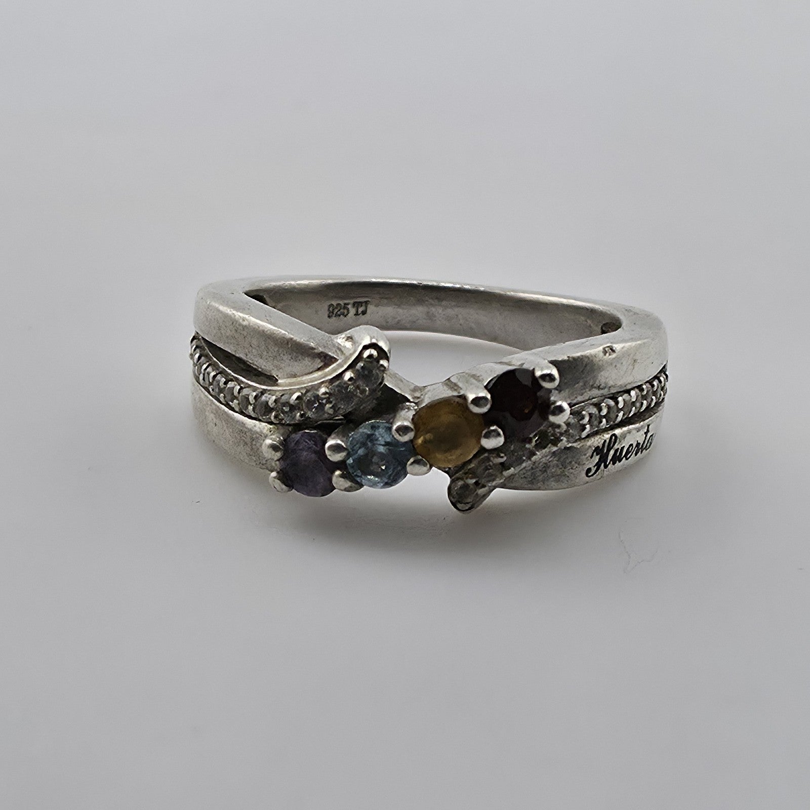 Sterling Silver 925 Huerta Multi Stone Ring CZ Accent Band Size 5 Vintage