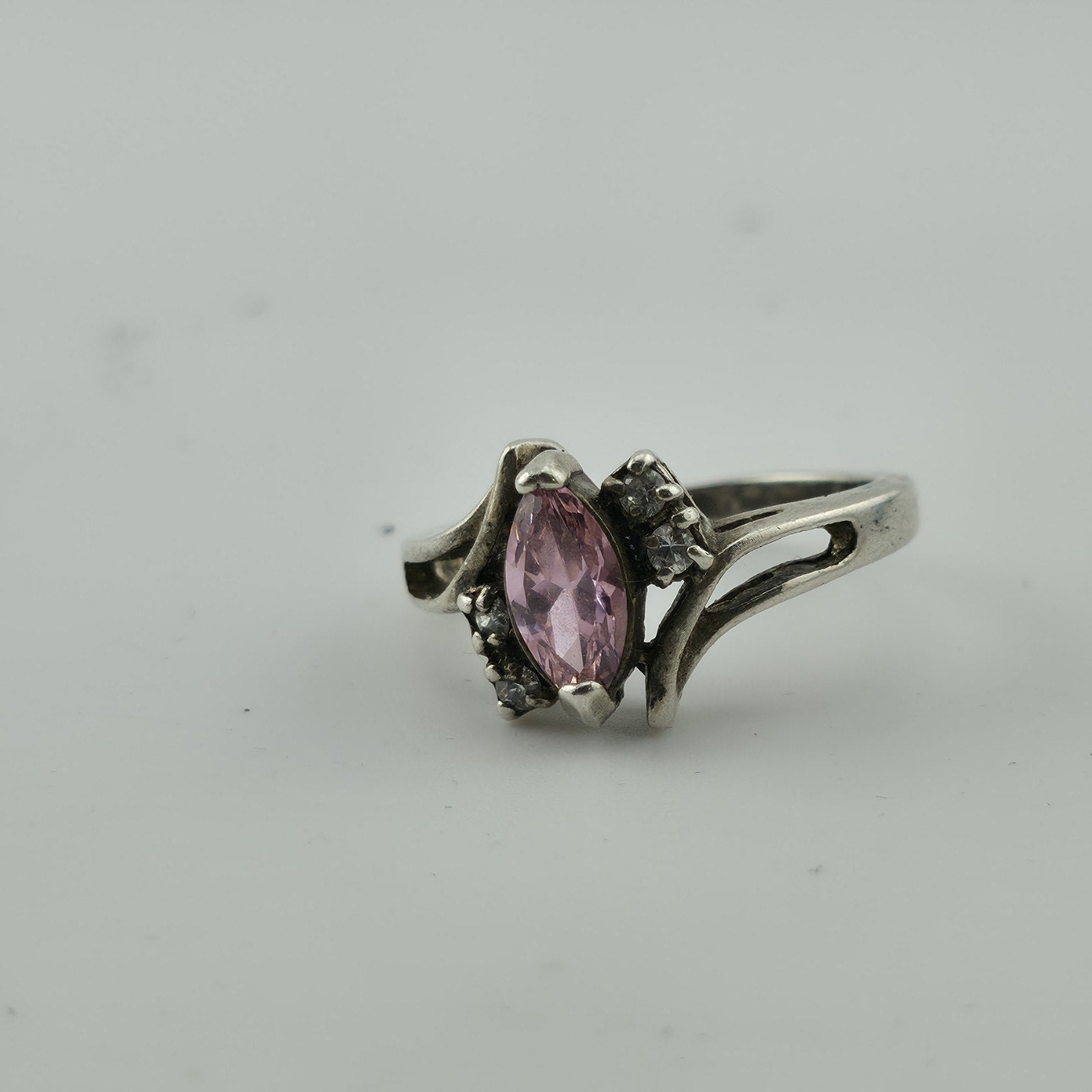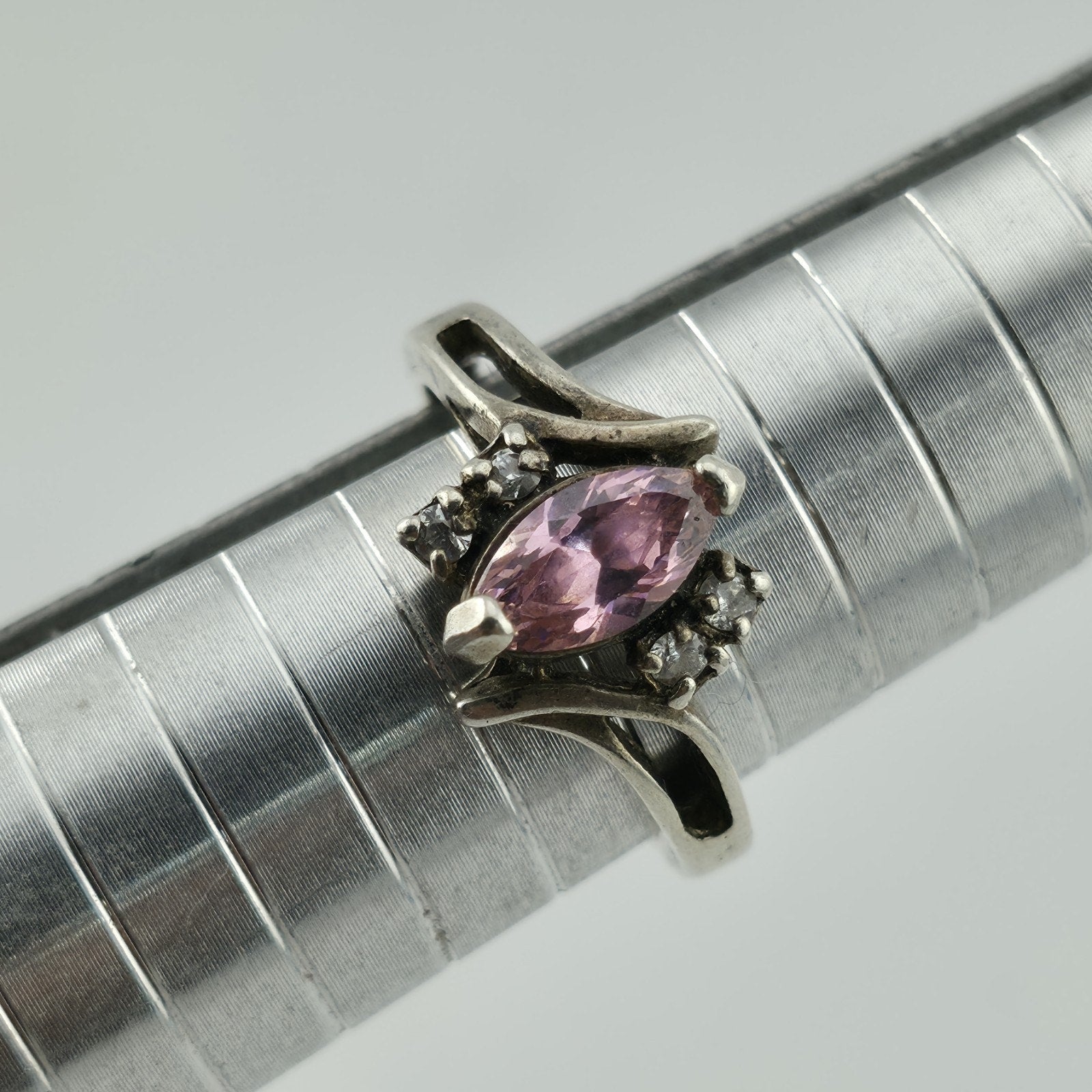 Sterling Silver 925 marquise cut Pink Stone Ring CZ Accents Size 8.75