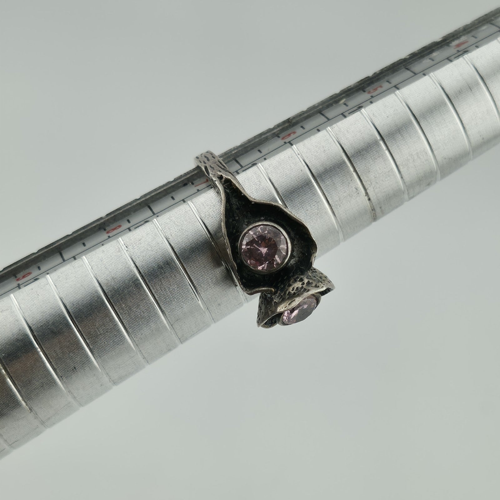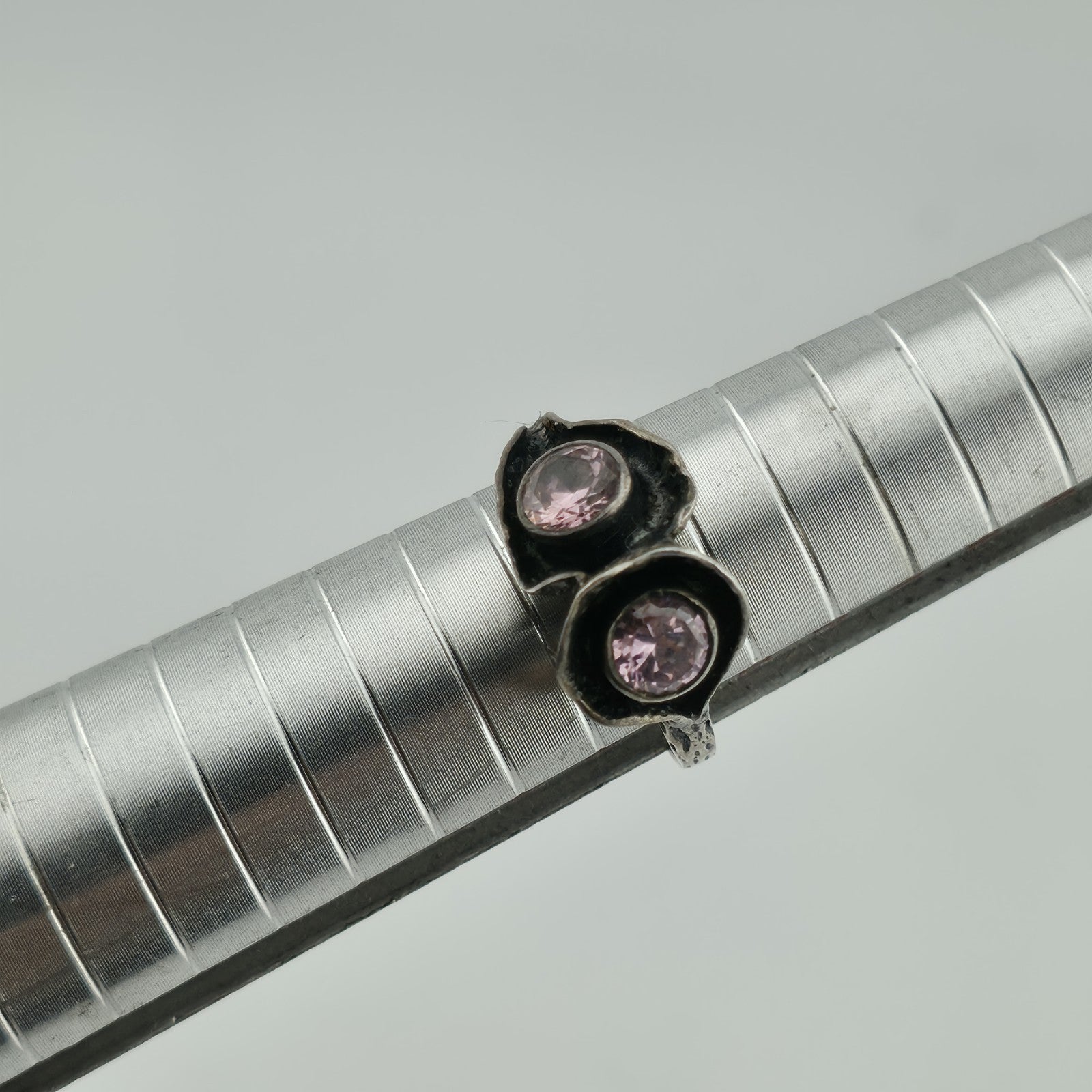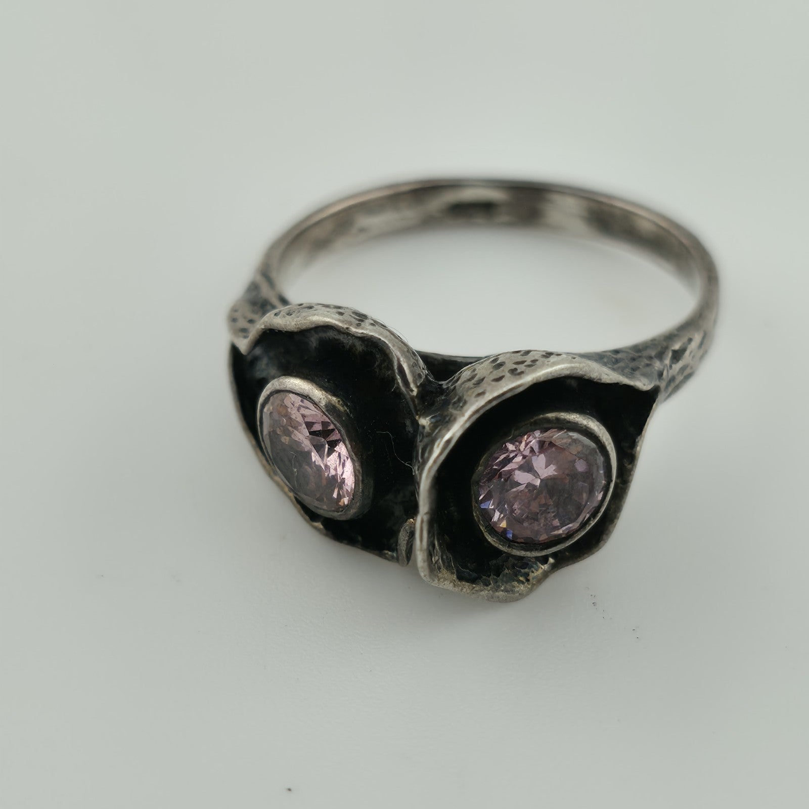 Sterling Silver 925 Ring Brutalist Organic Textured Floral Double Pink Stone 6.7