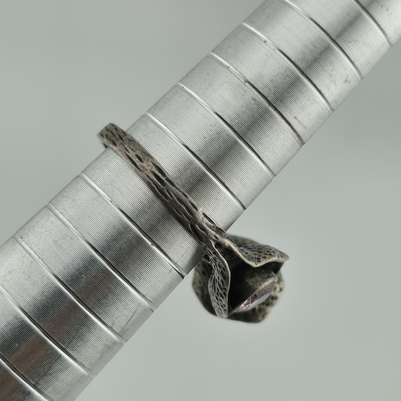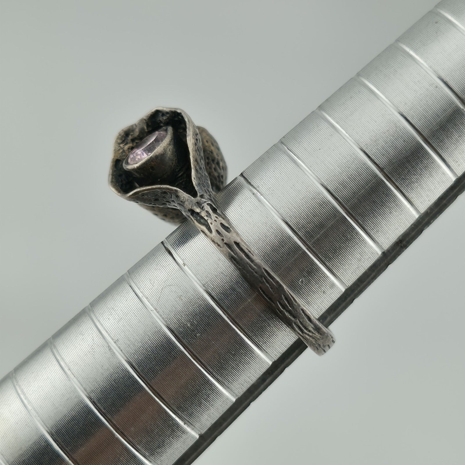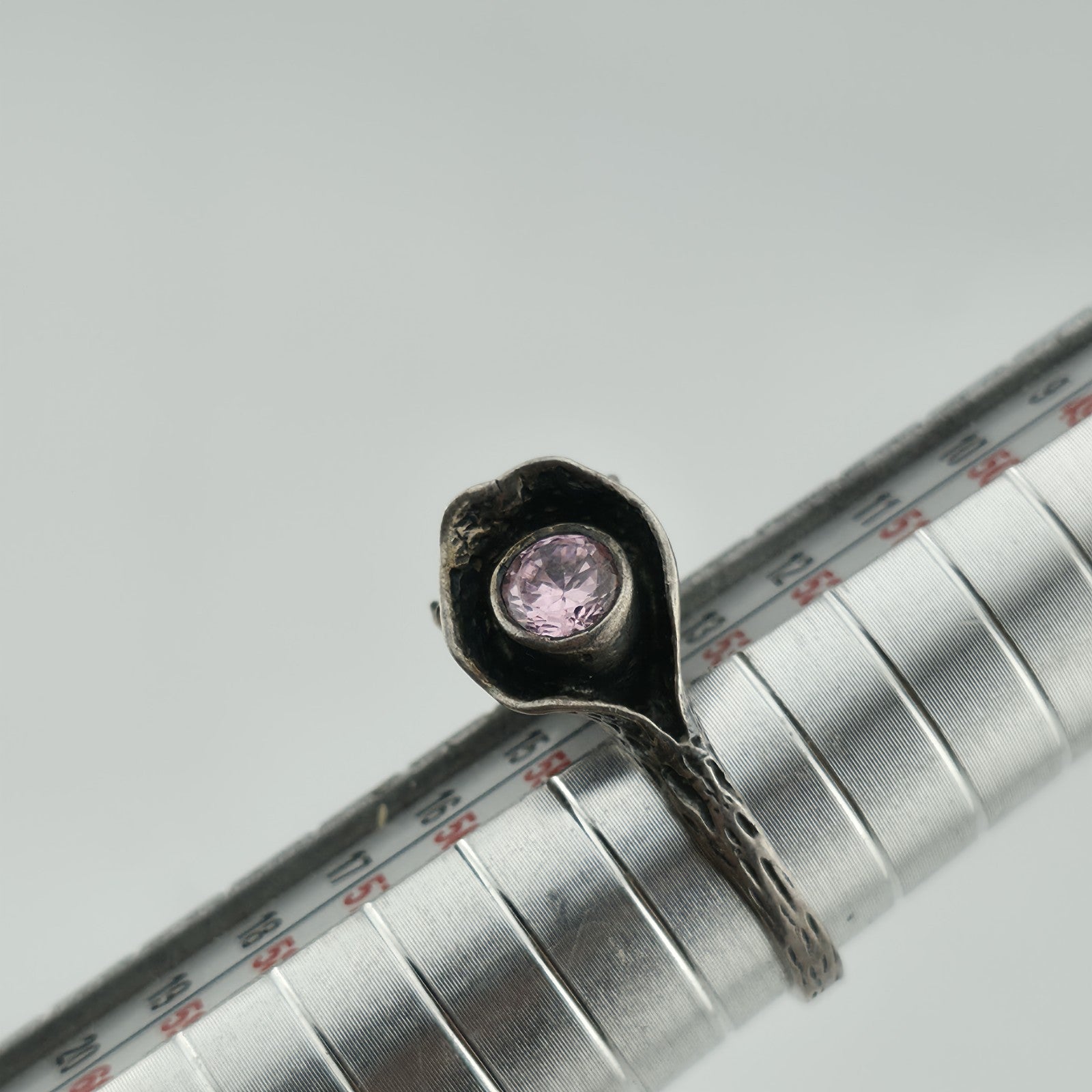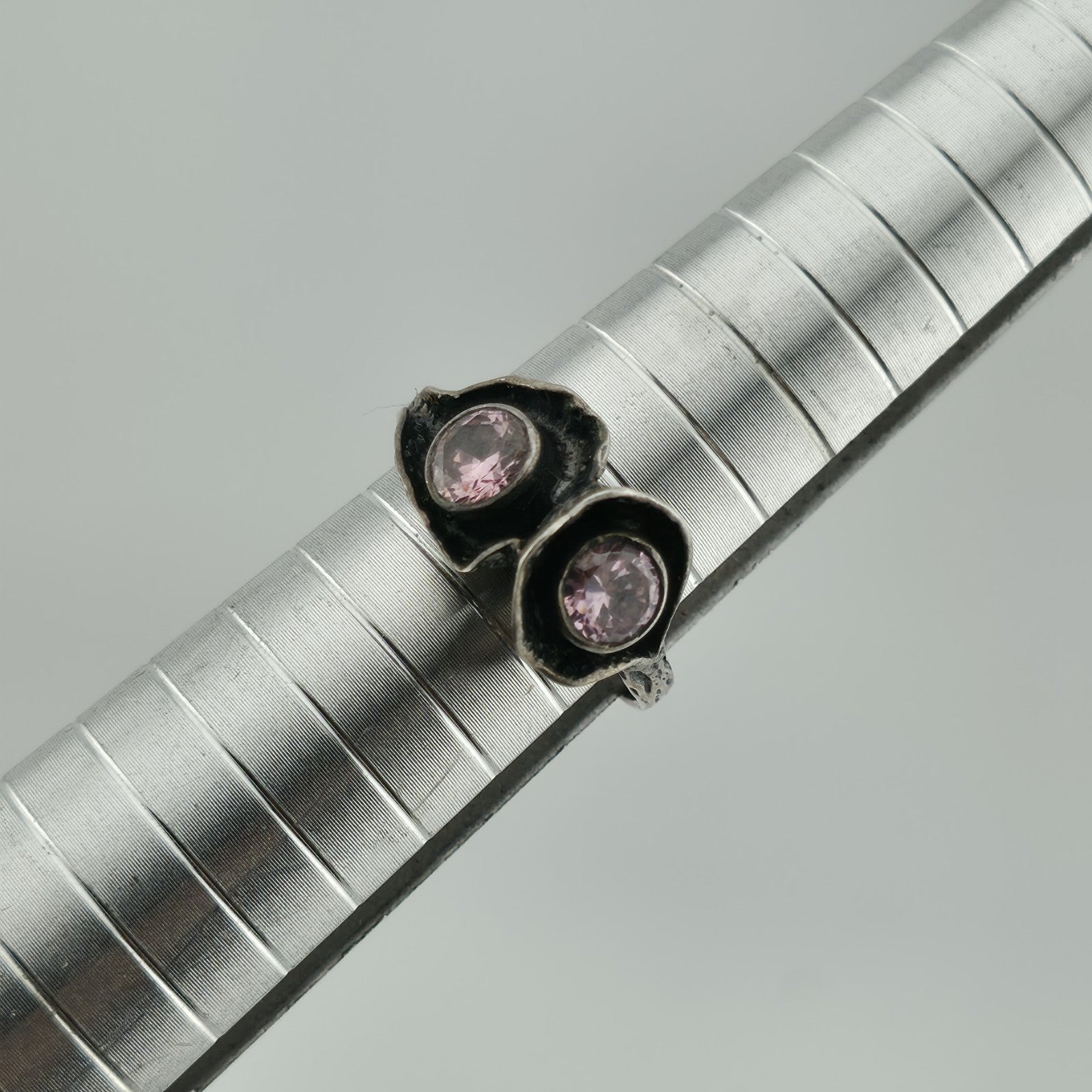 Sterling Silver 925 Ring Brutalist Organic Textured Floral Double Pink Stone 6.7