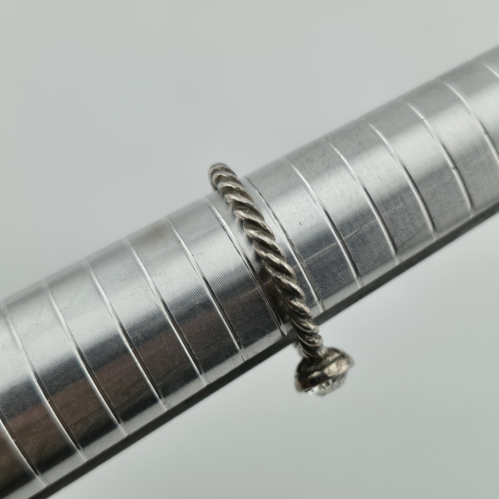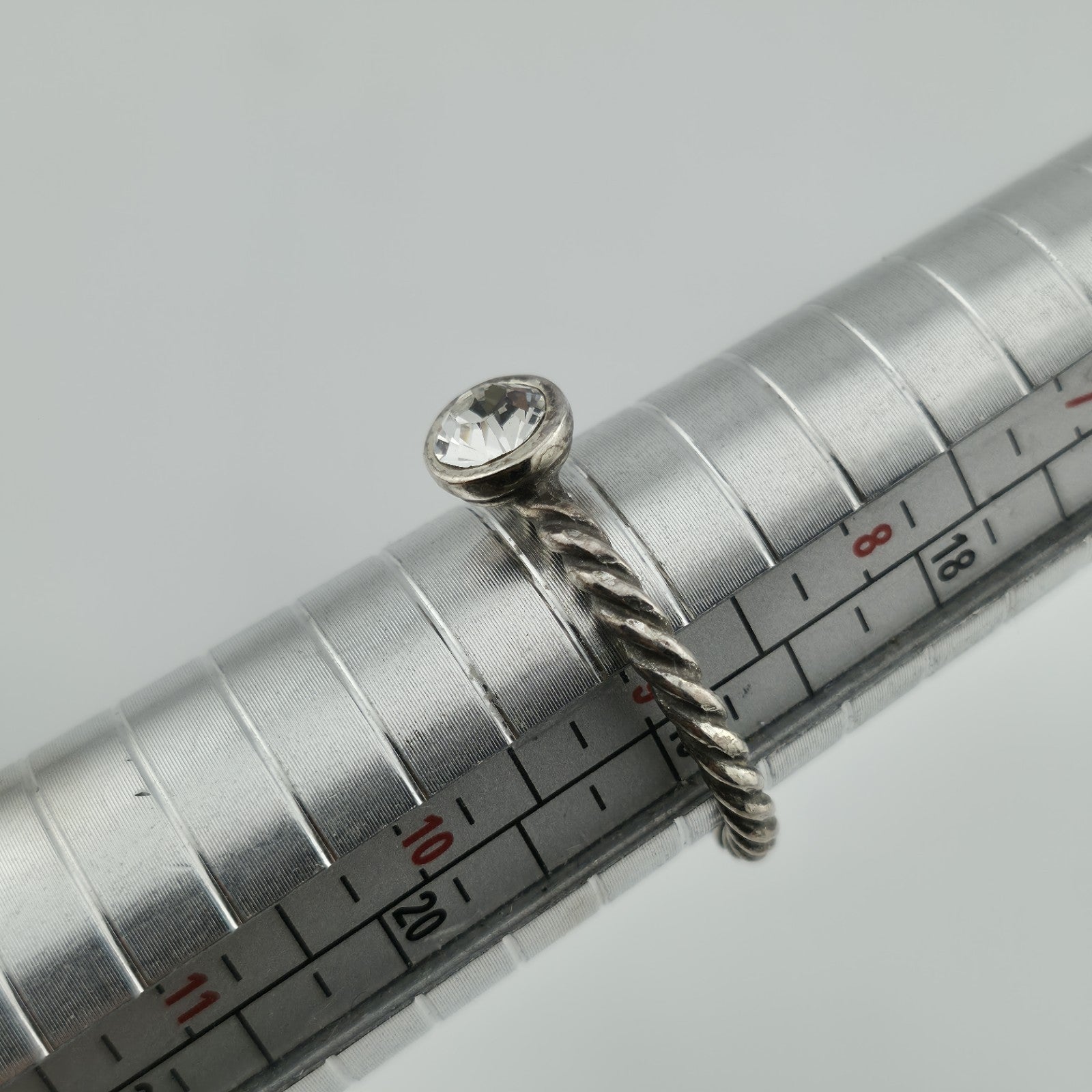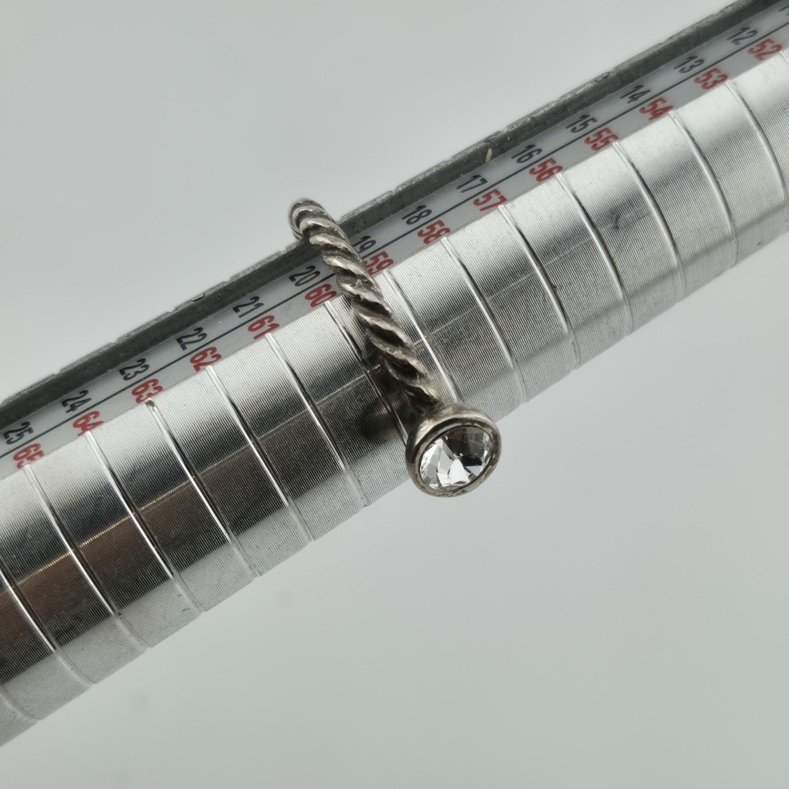 sterling Silver Art Deco rope Ring Bezel Set Rhinestone Stackable Minimalist 9