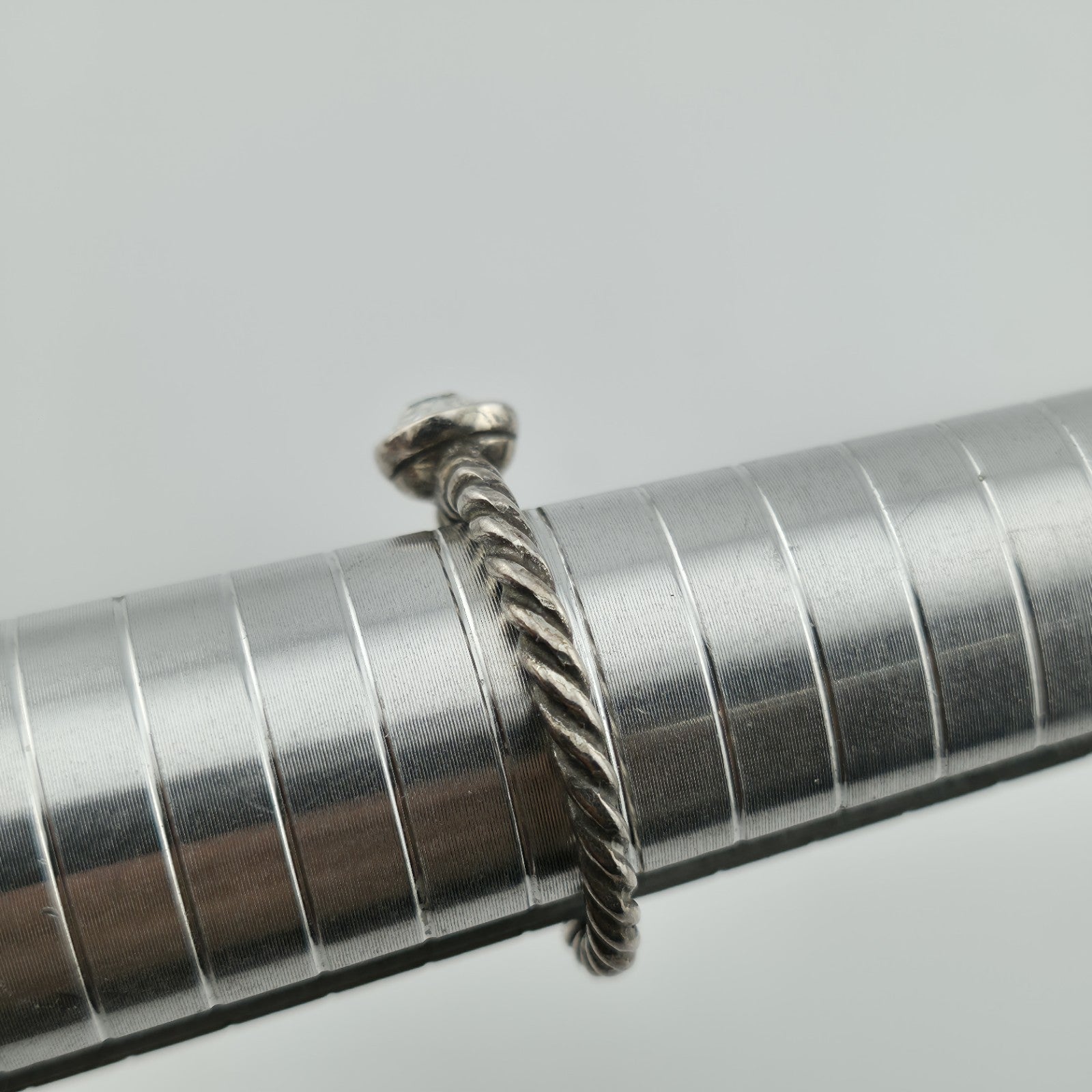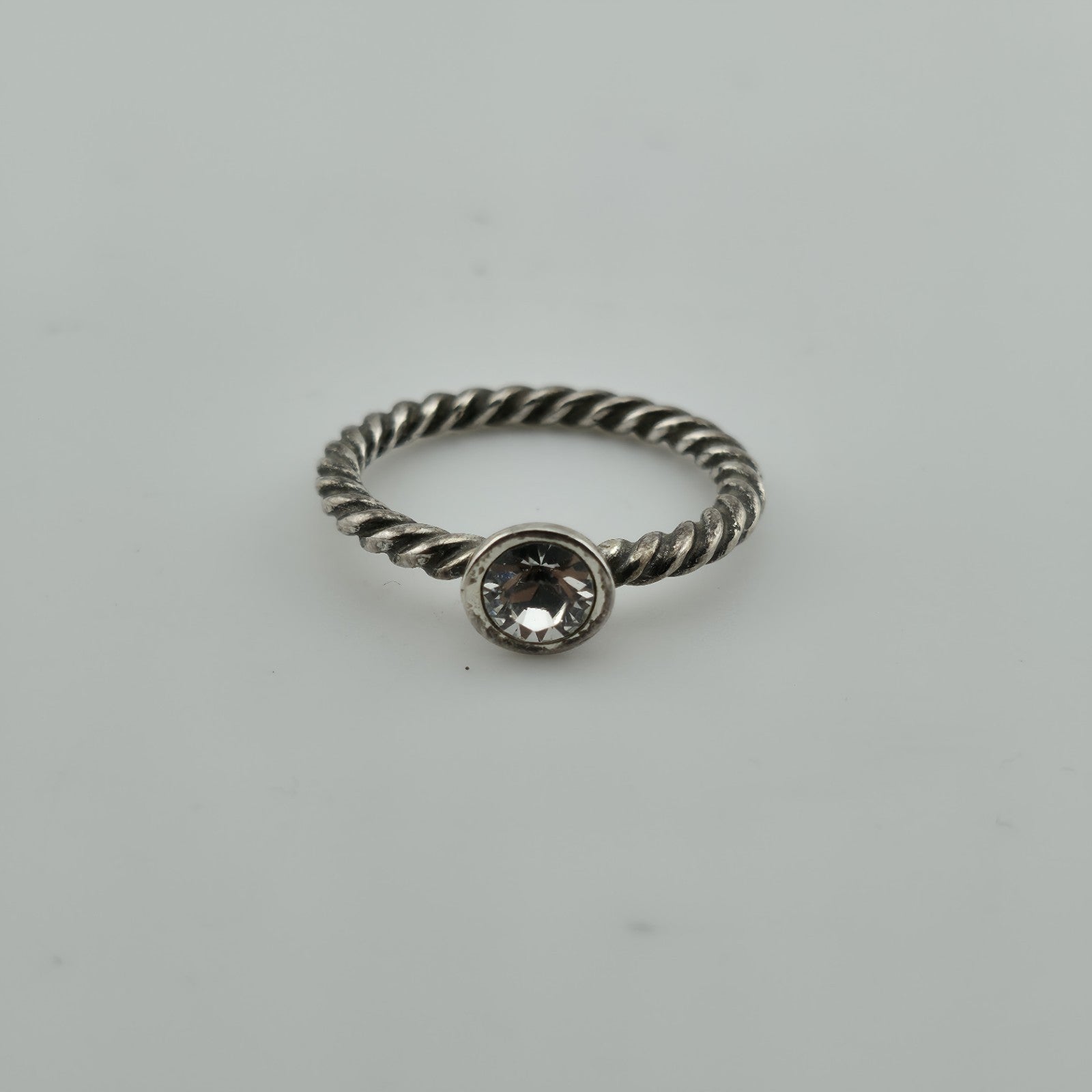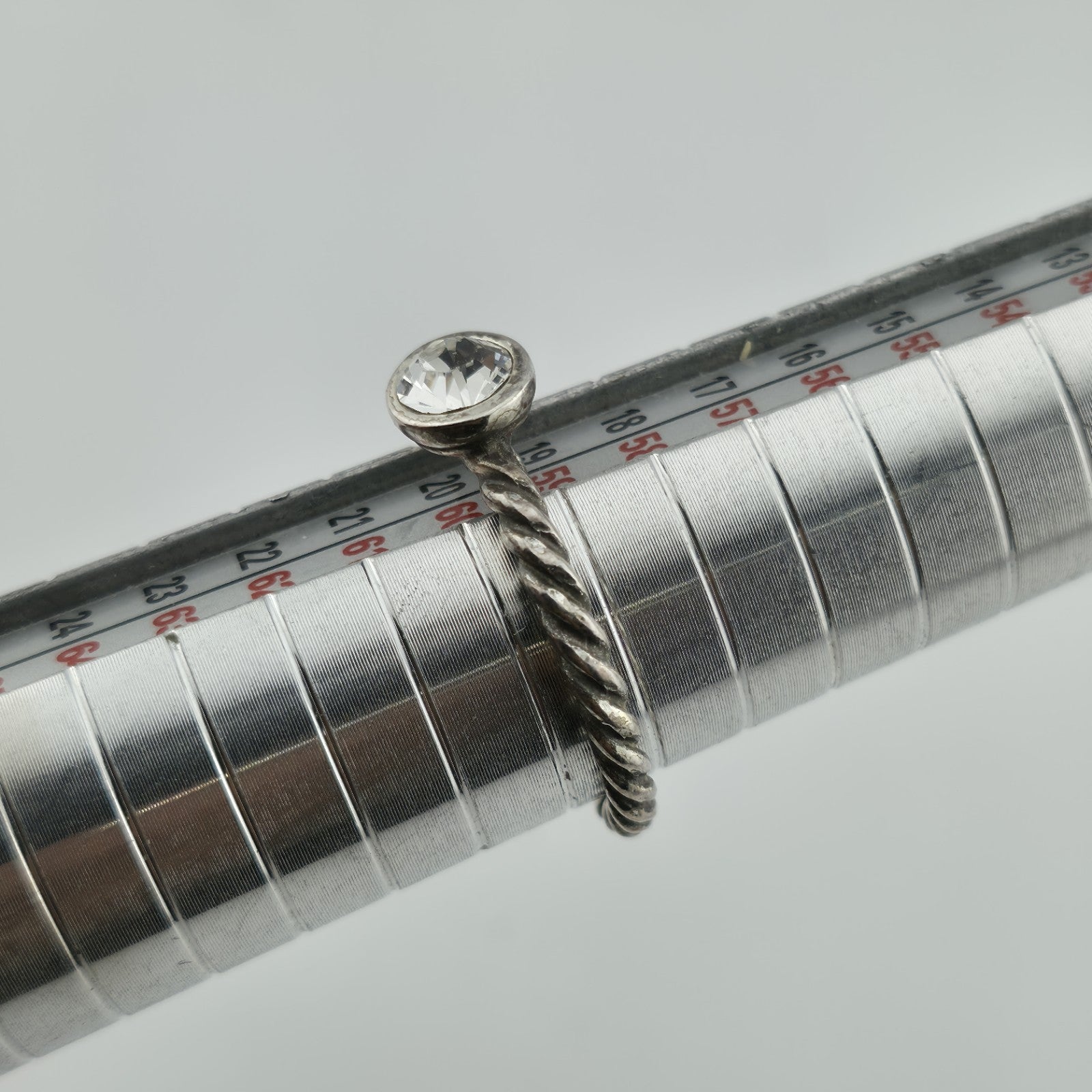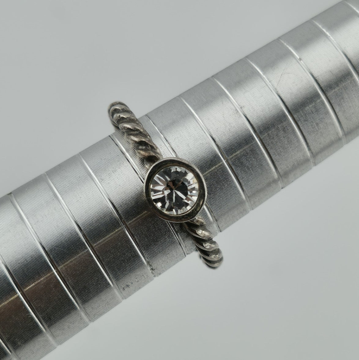 sterling Silver Art Deco rope Ring Bezel Set Rhinestone Stackable Minimalist 9