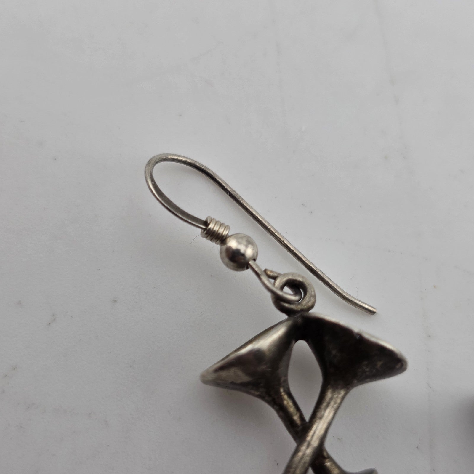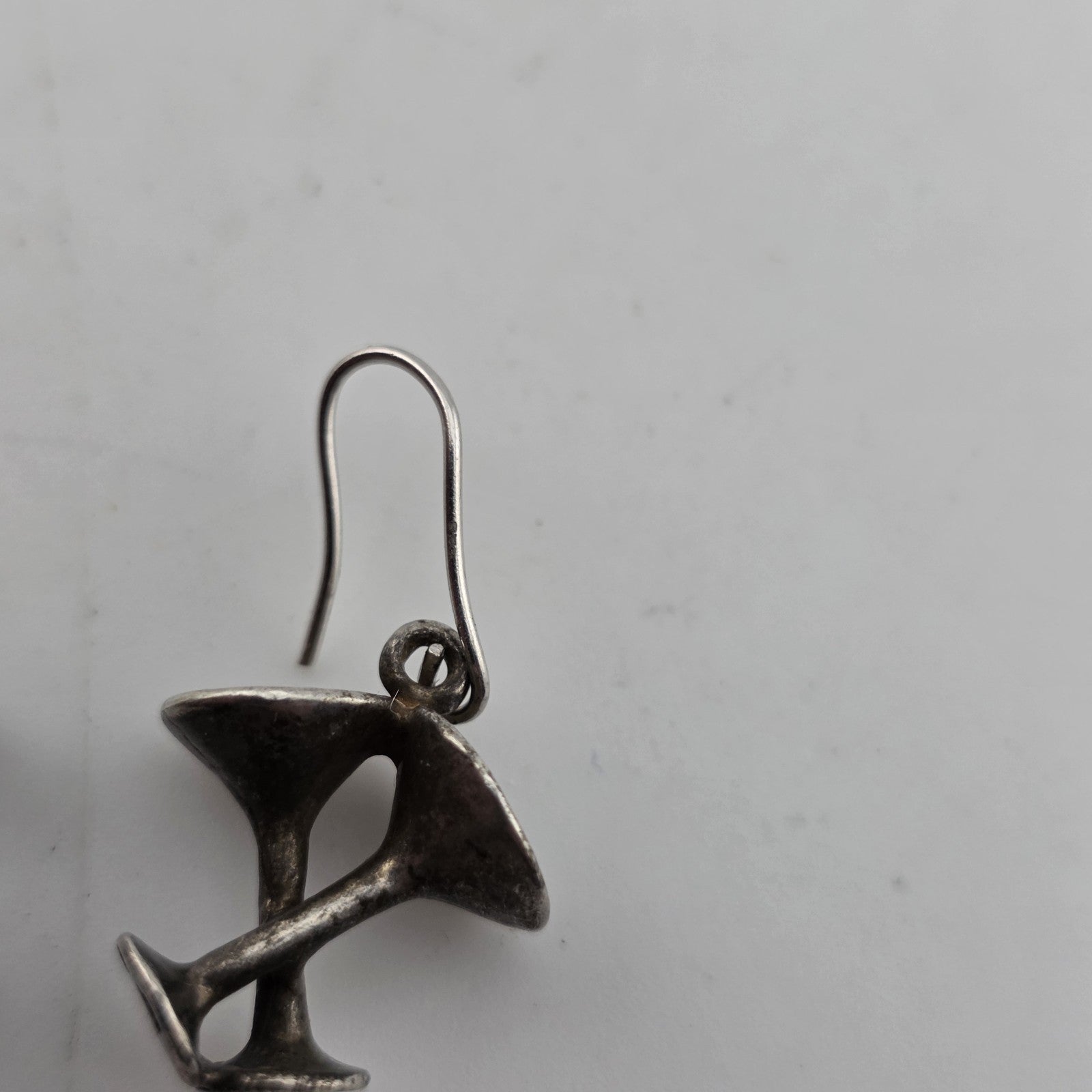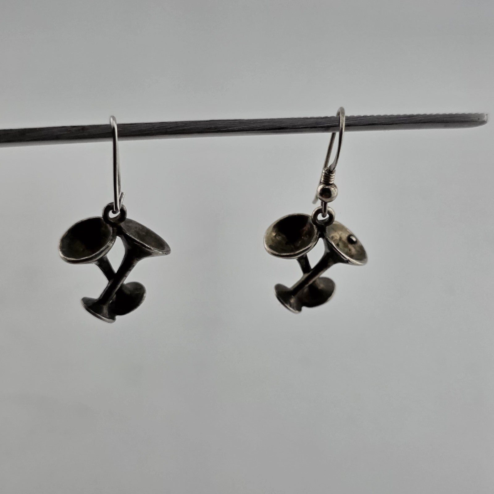 Sterling Silver Earrings 925 Vintage Martini Glass Drop Vintage Patina Signed