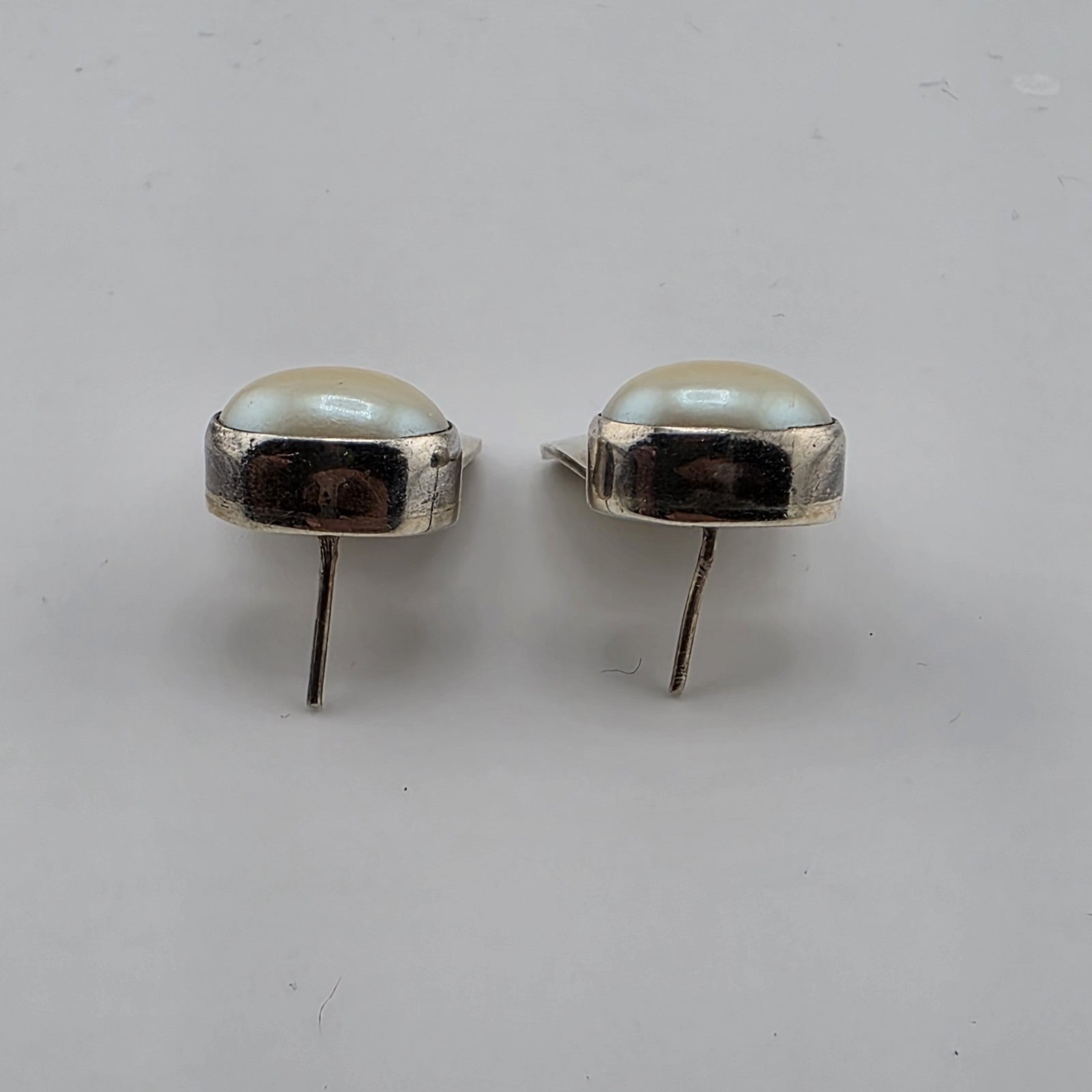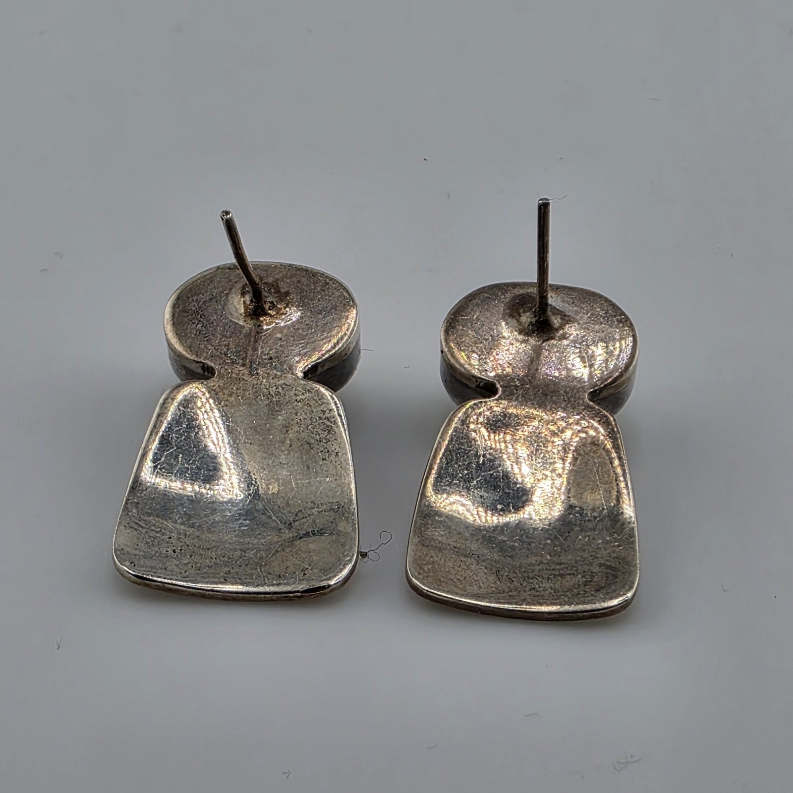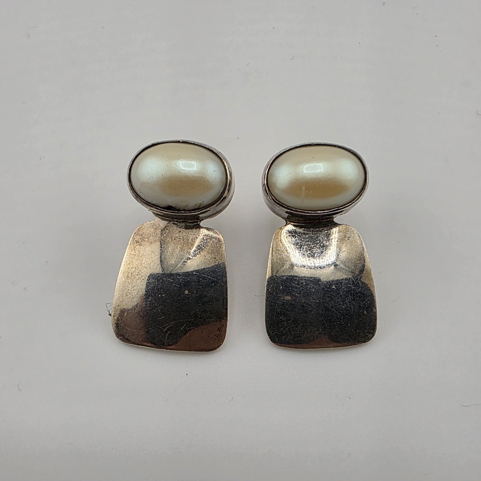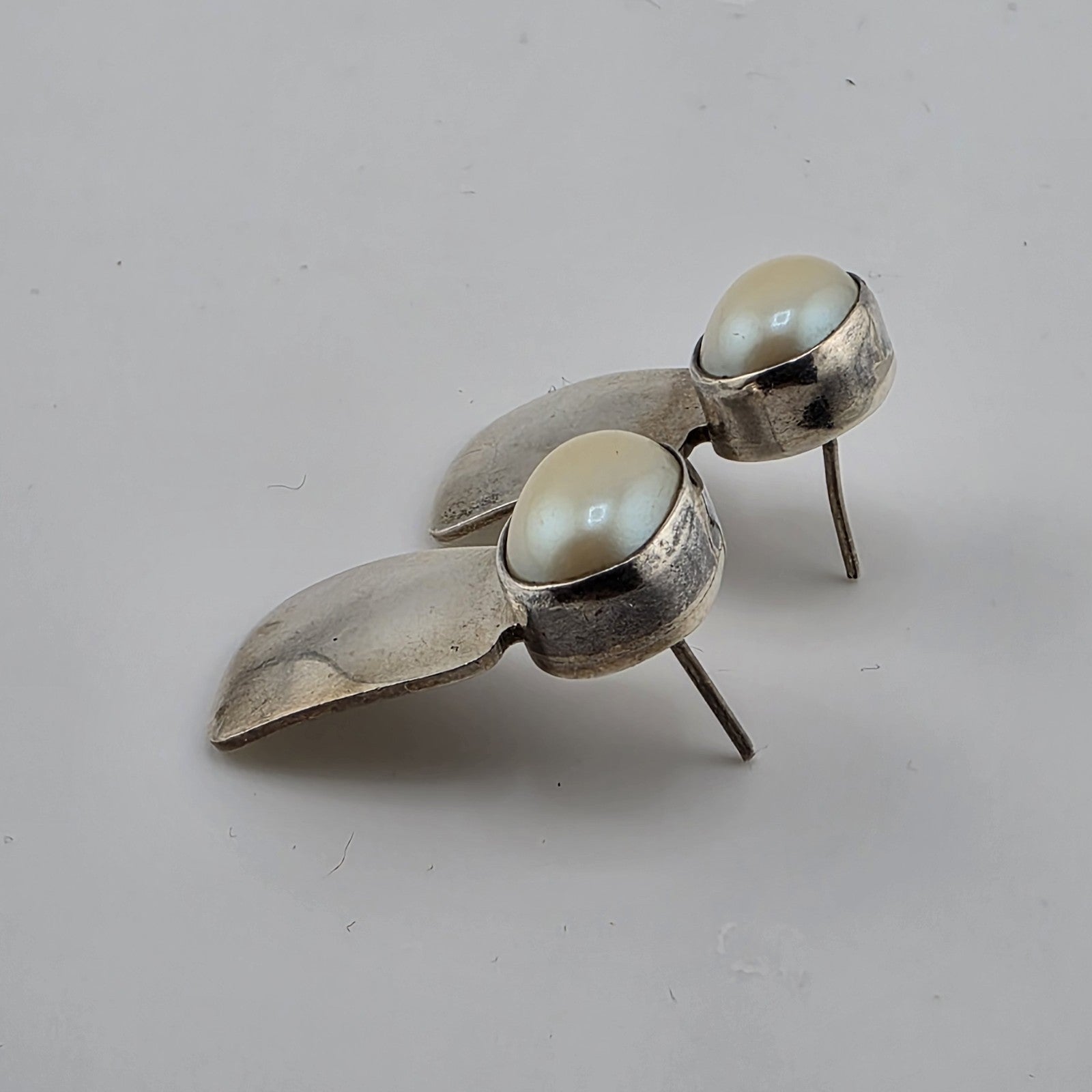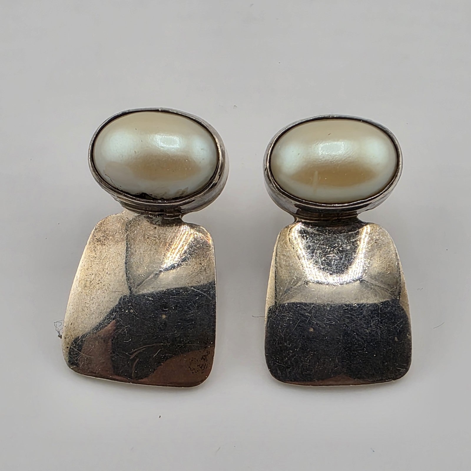 Sterling Silver Earrings Faux Pearls Abstract Native Heavy – 1 1/8" Vintage