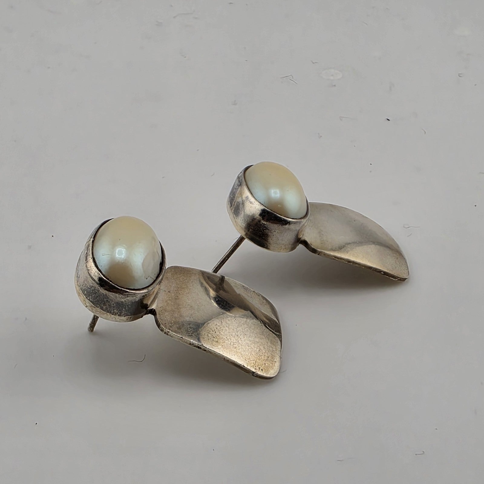 #SterlingSilver #VintageEarrings #FauxPearls #StatementJewelry #AbstractDesign