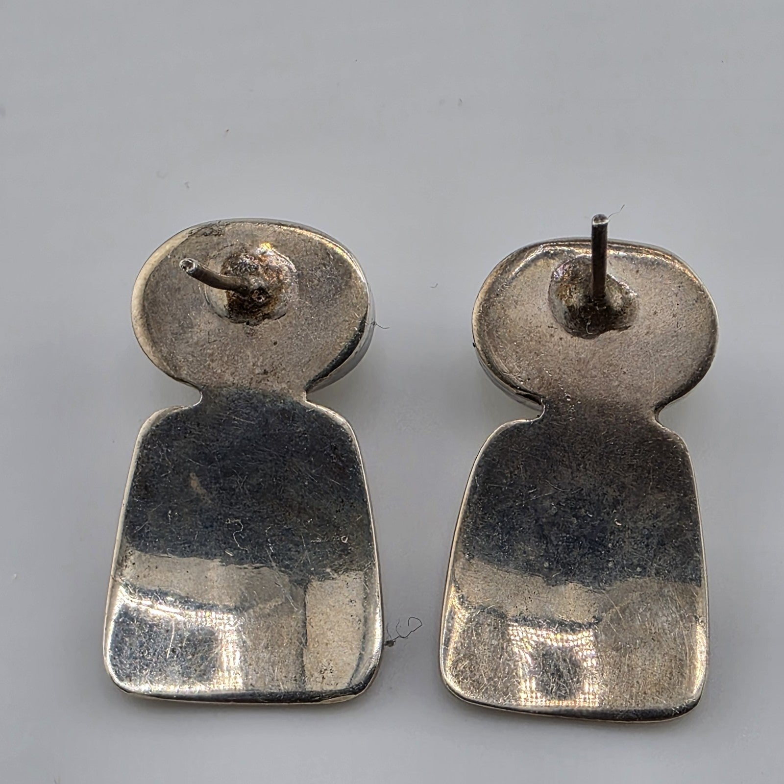 STERLING SILVER EARRINGS FAUX PEARLS Abstract Native Heavy - 1 1/8"
