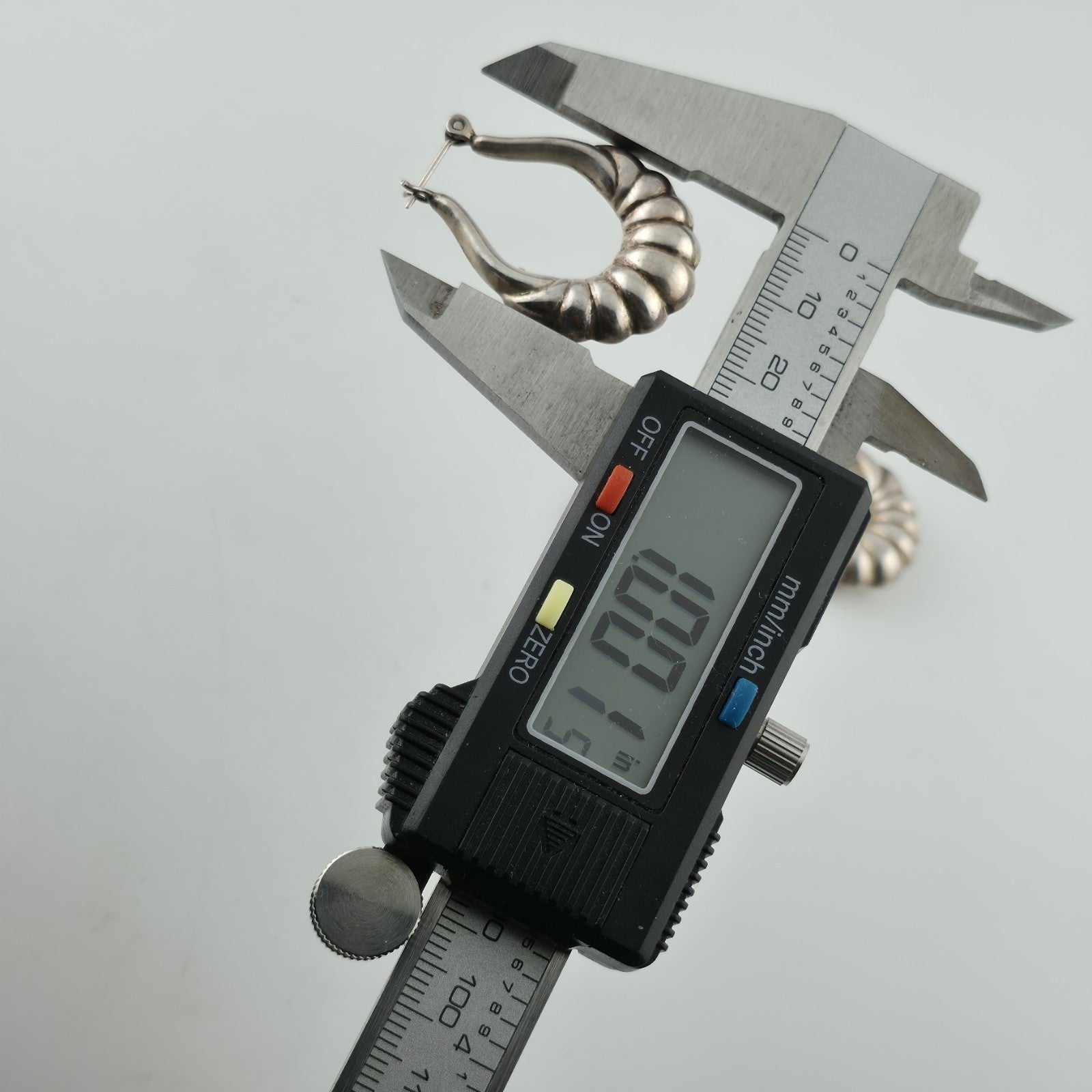 Sterling Silver Earrings Ribbed Latch Hoop Marked 925 Vintage Patina 1.3"