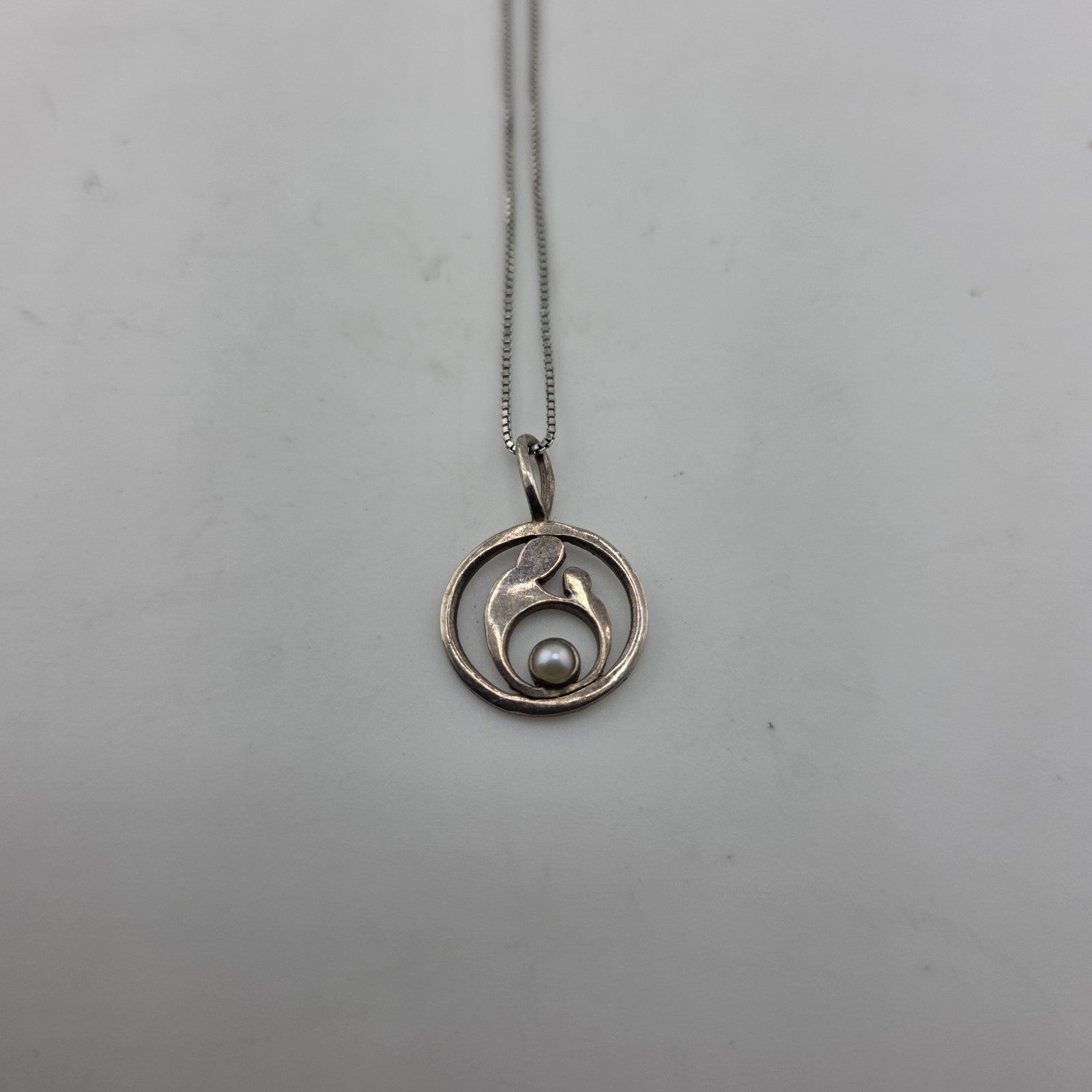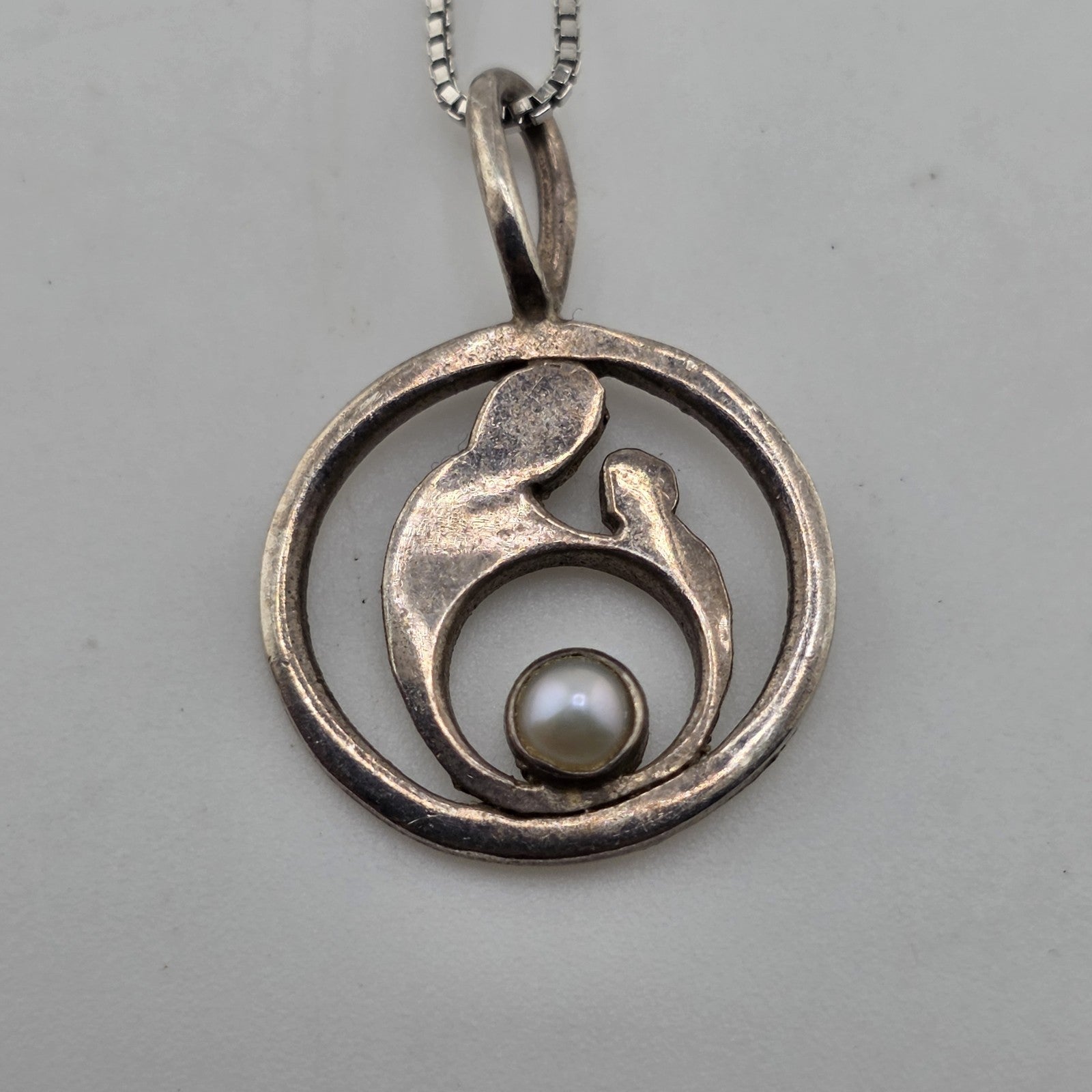 Sterling Silver Mother and Children Pendant 925 Pearl Necklace 18” Chain