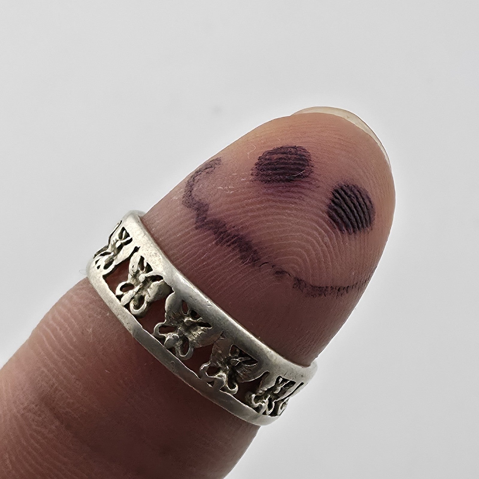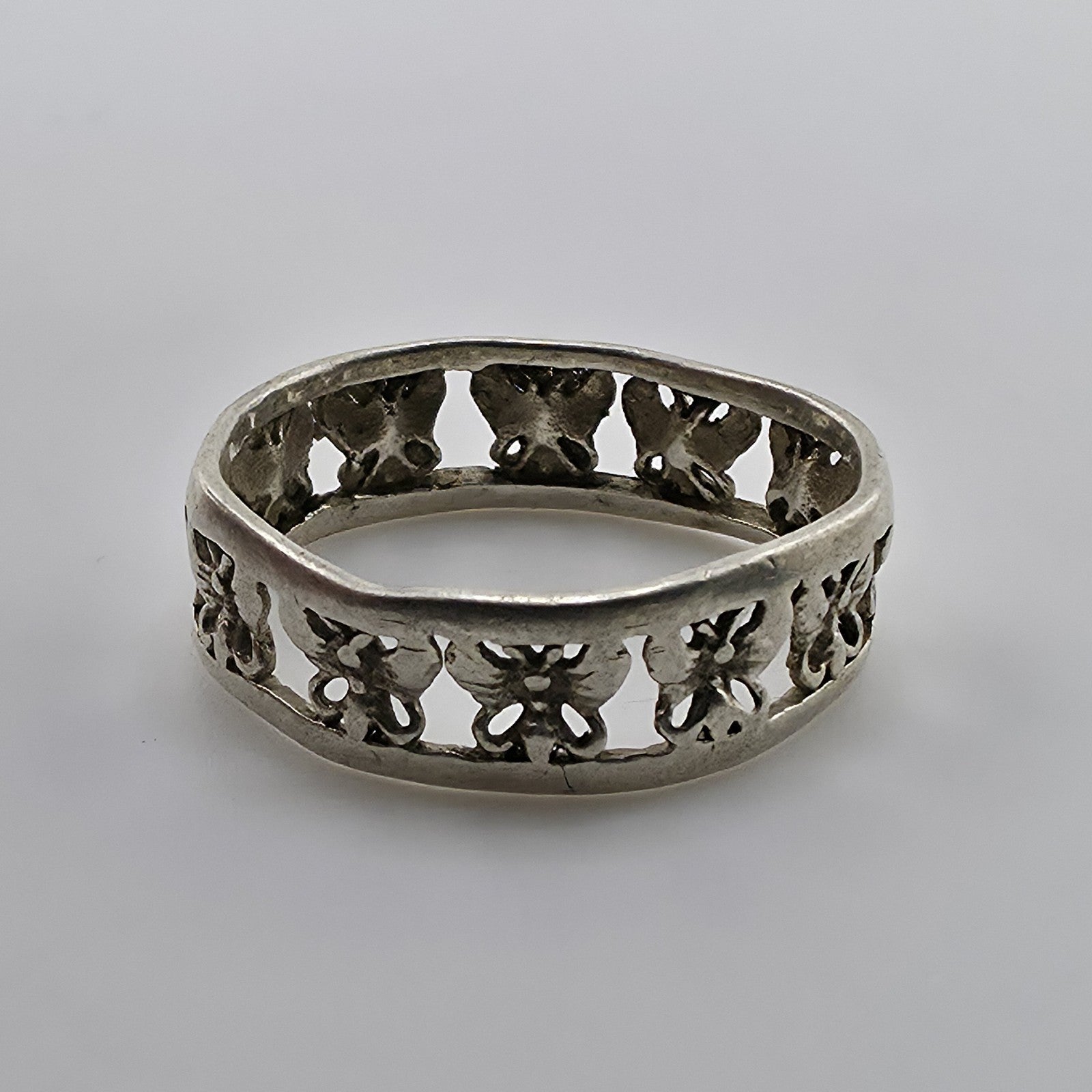 Sterling Silver Rimmed Openwork Butterfly Band Ring 925 Sz: 8