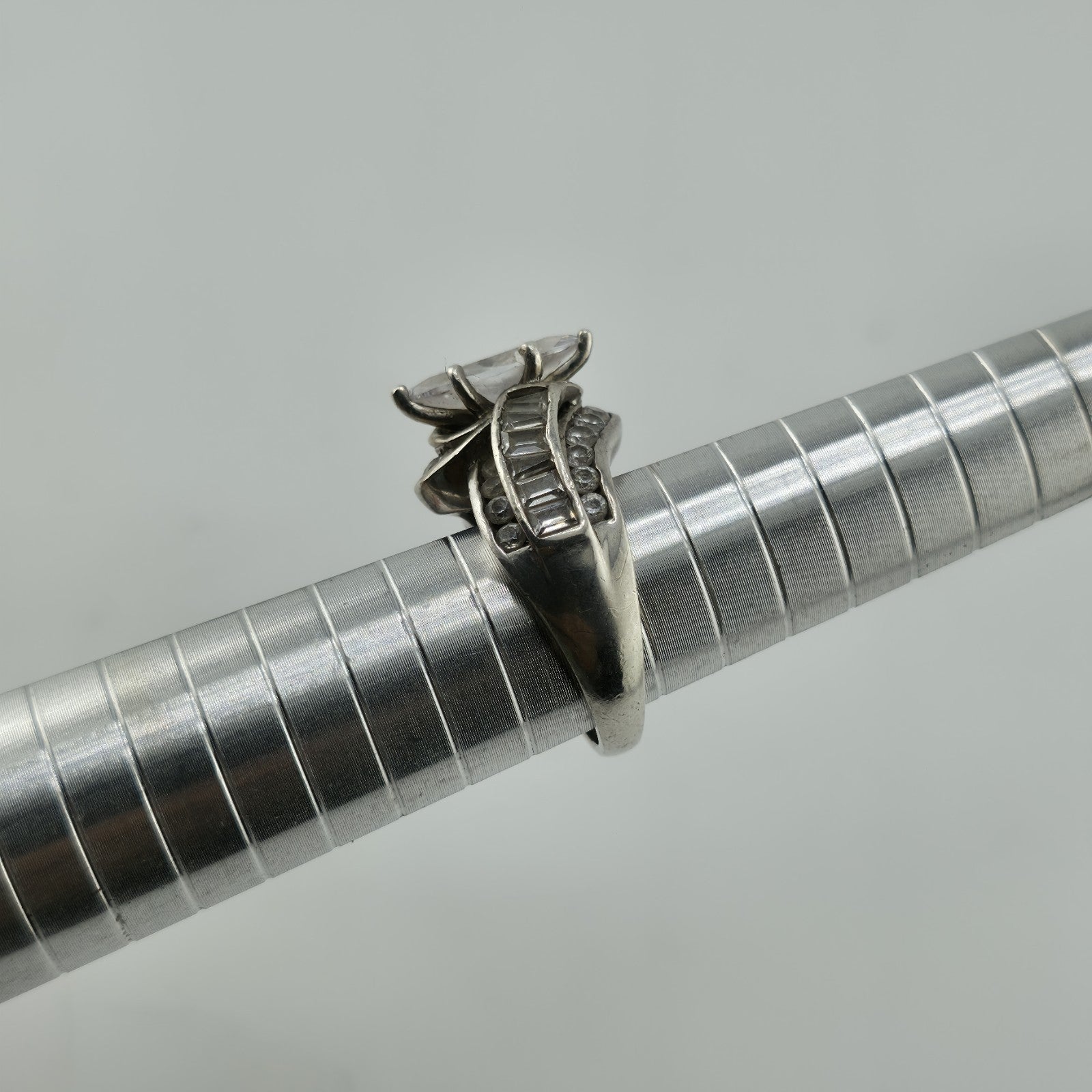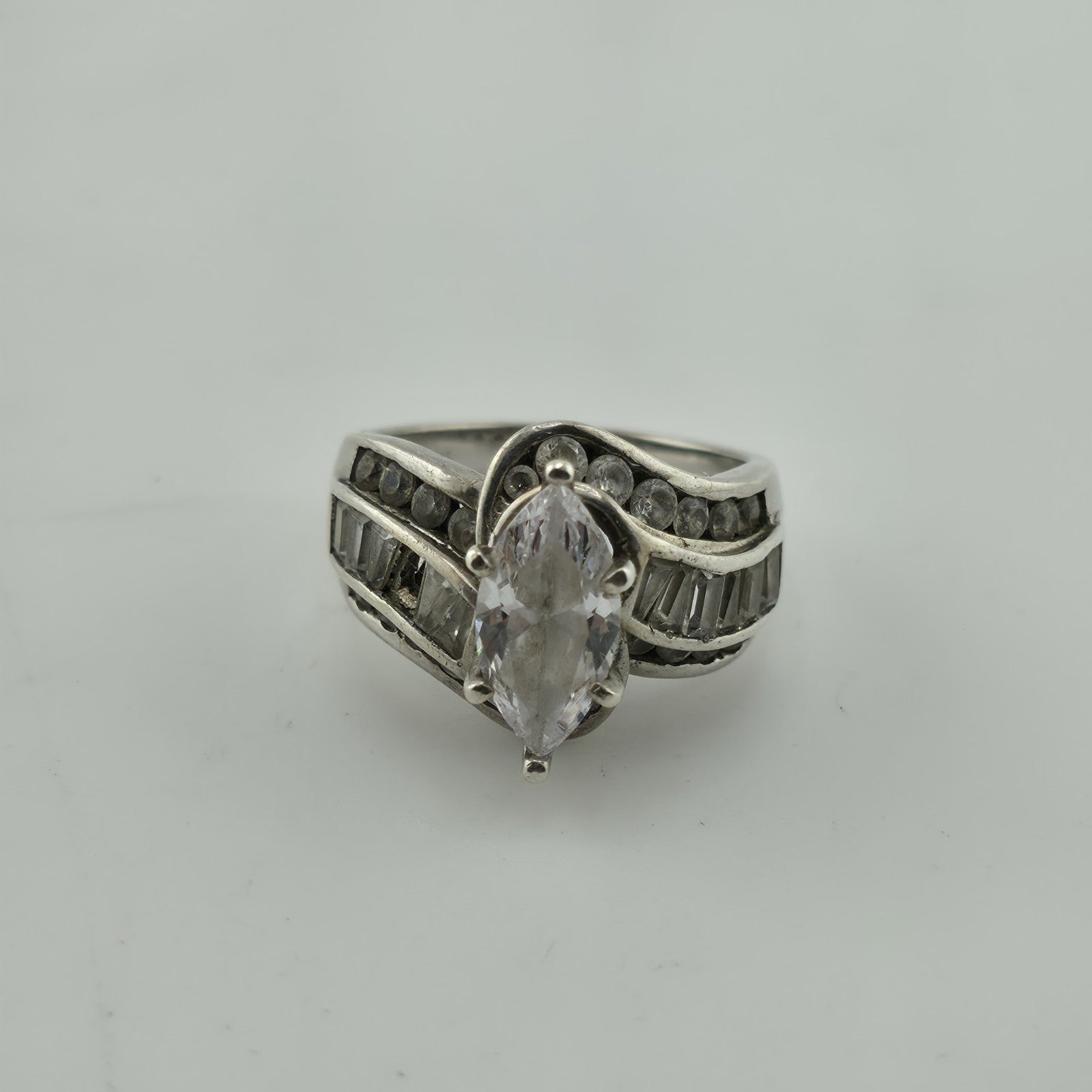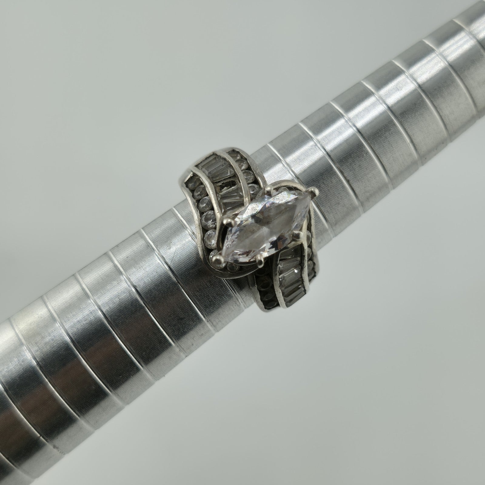 * Type: Vintage Sterling Silver Ring / Statement Ring / Marquise Stone / Baguette Design