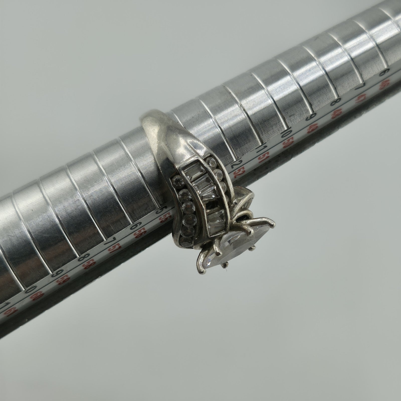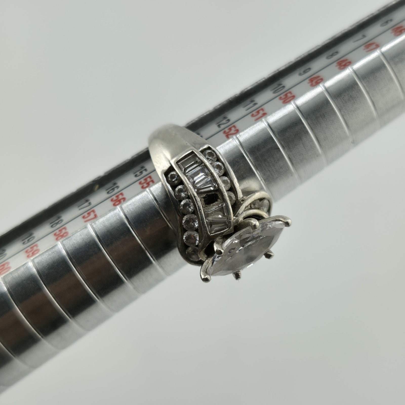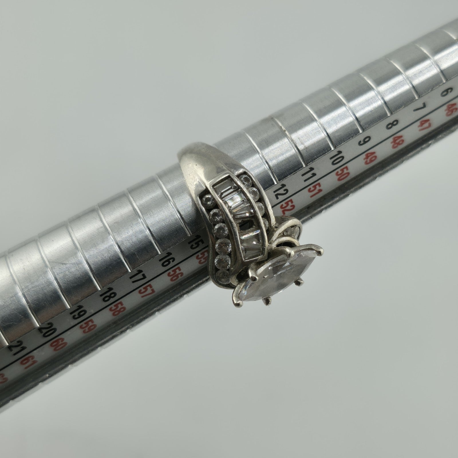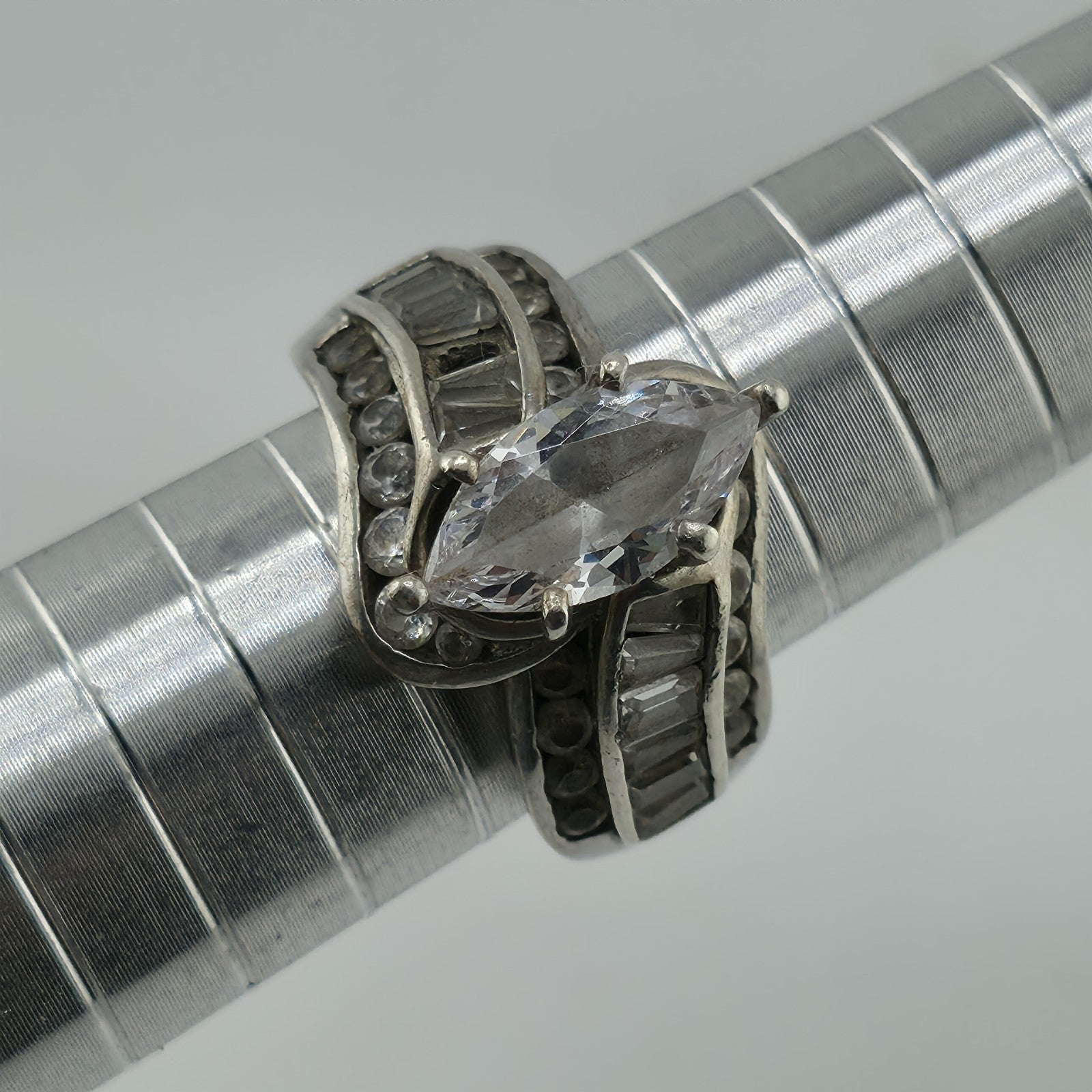 Sterling Silver Ring Marquise Clear Stone Baguette Design Size 6.75 Vintage