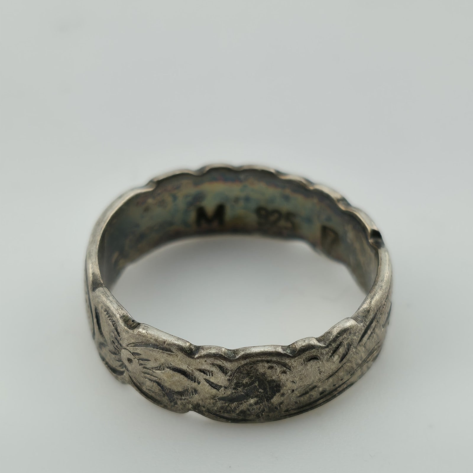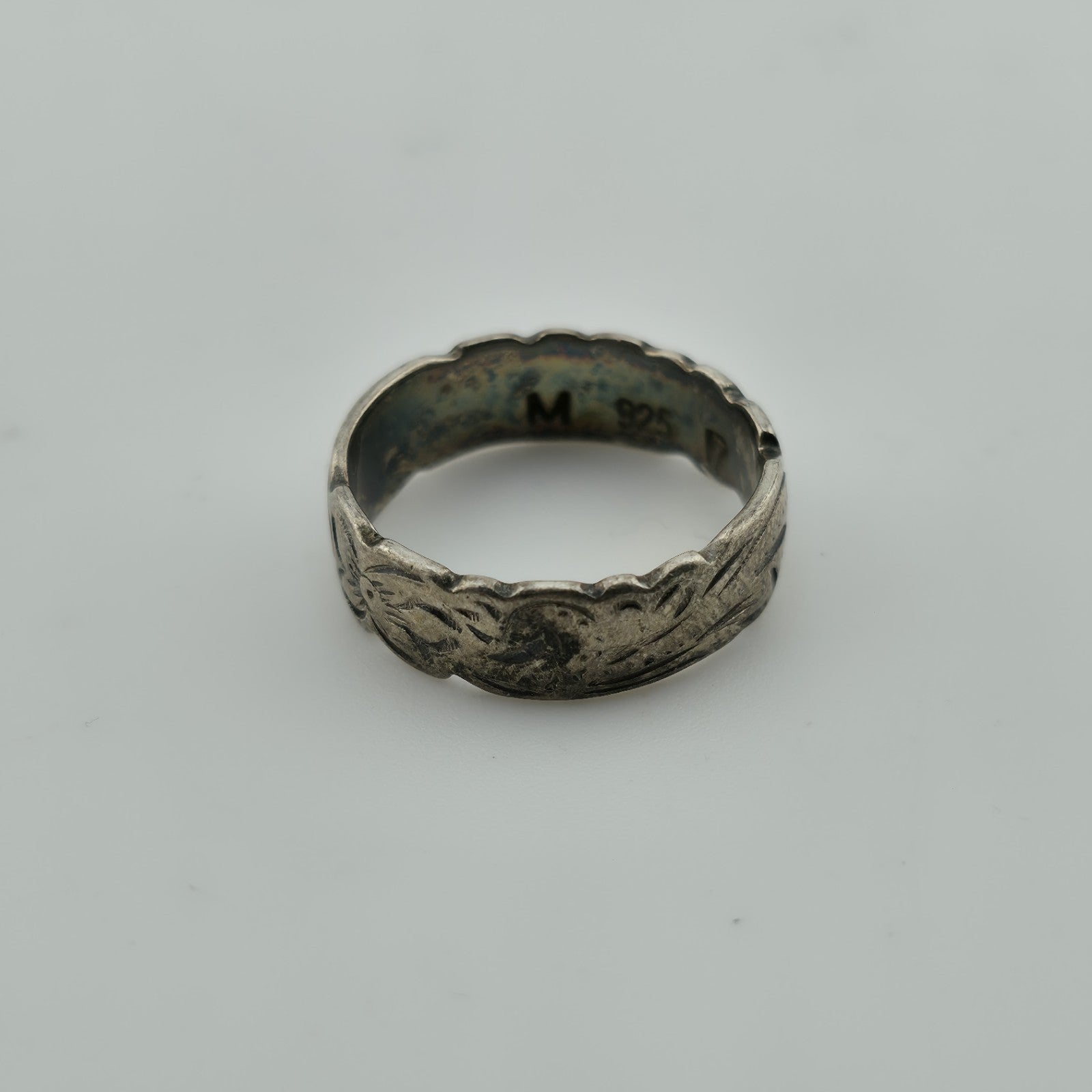 Sterling Silver Ring Unisex Abstract band Scroll Etched Artisan 925 Size 6.5