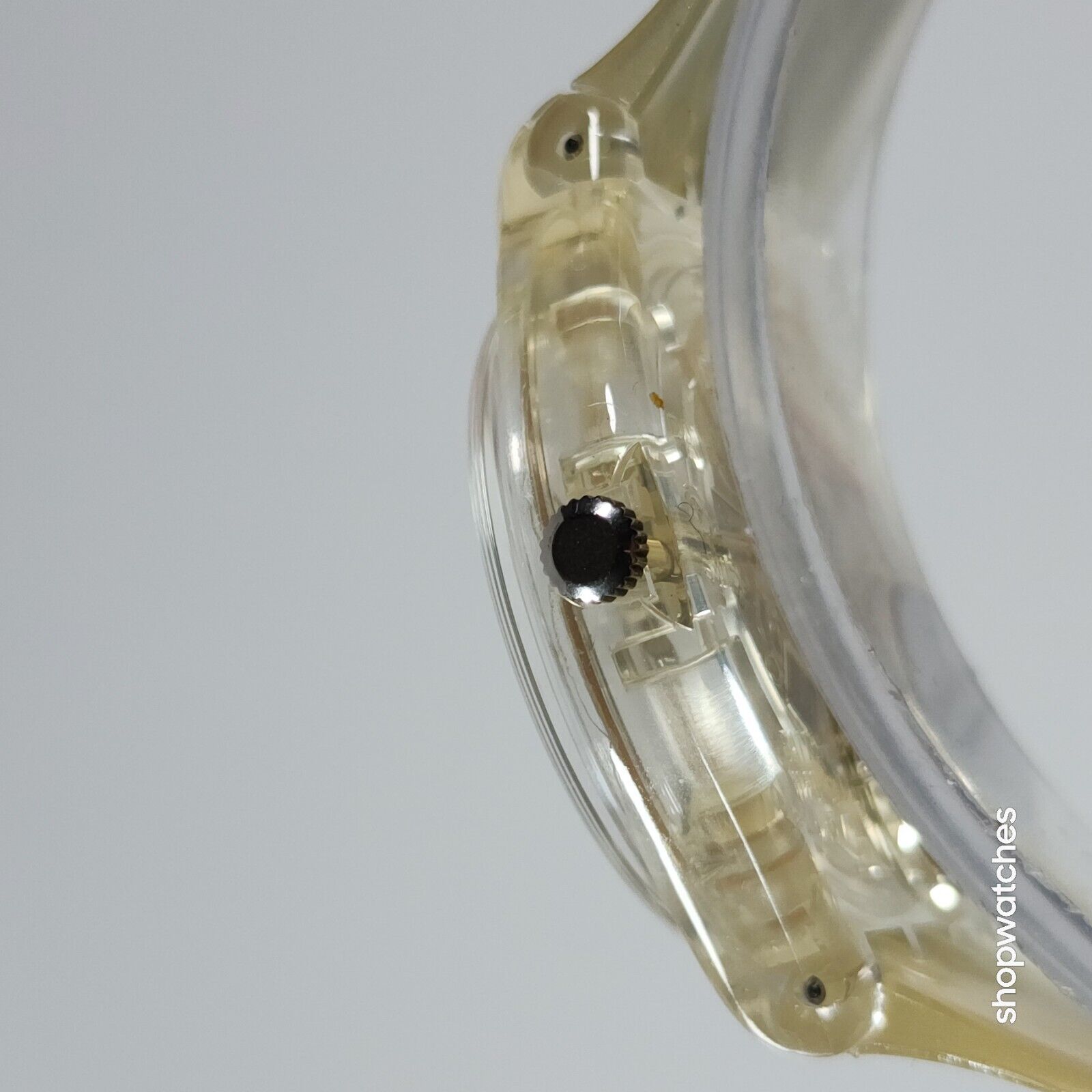 Transparent dial with no hour markers