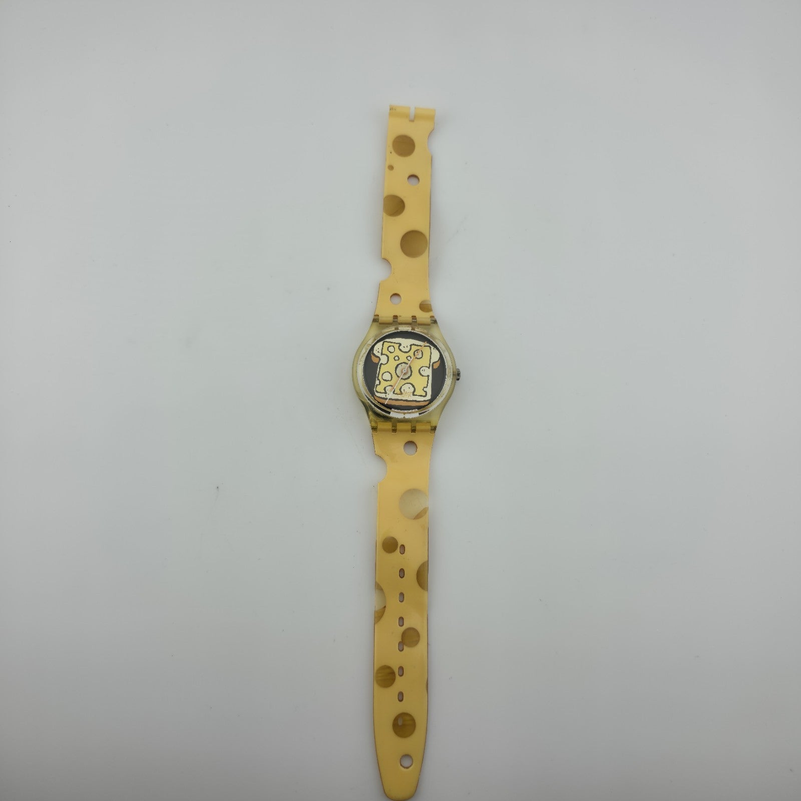 Hashtags: #SwatchWatch #SpecialEditionSwatch #CheesyToast #SwissMadeWatch #VintageSwatch