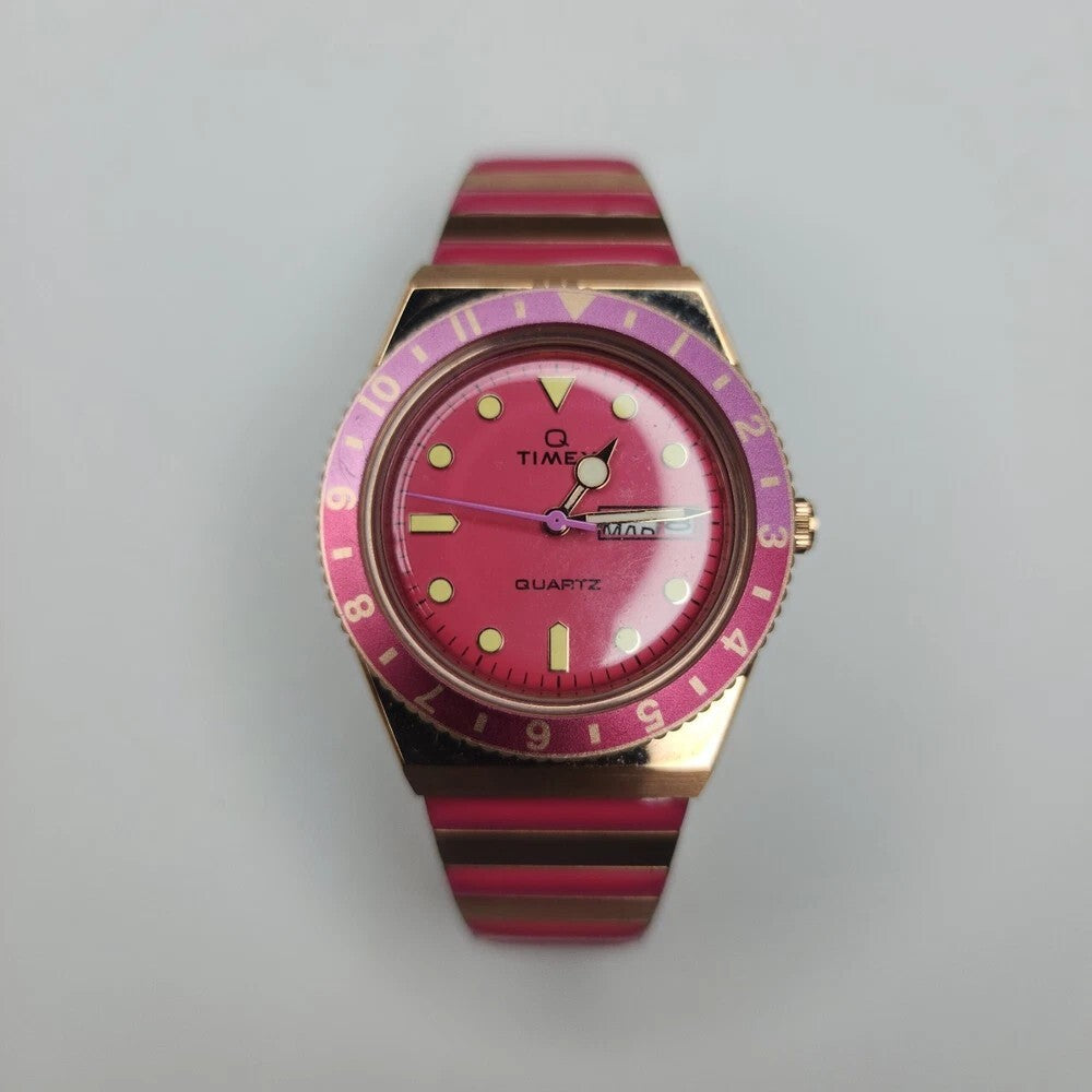 Timex Q Malibu 36mm Women’s Watch Gold & Pink Stainless Steel Day-Date Quartz