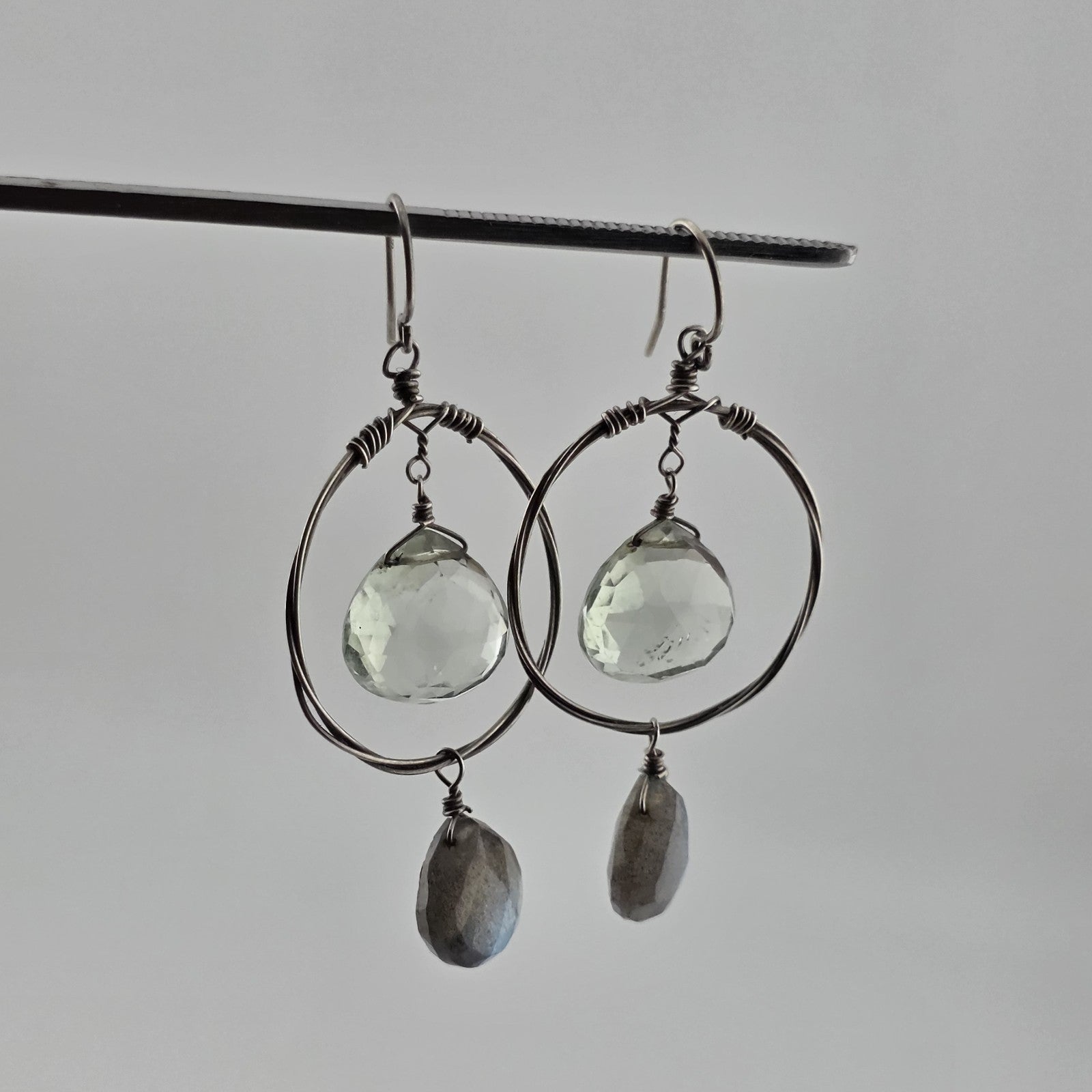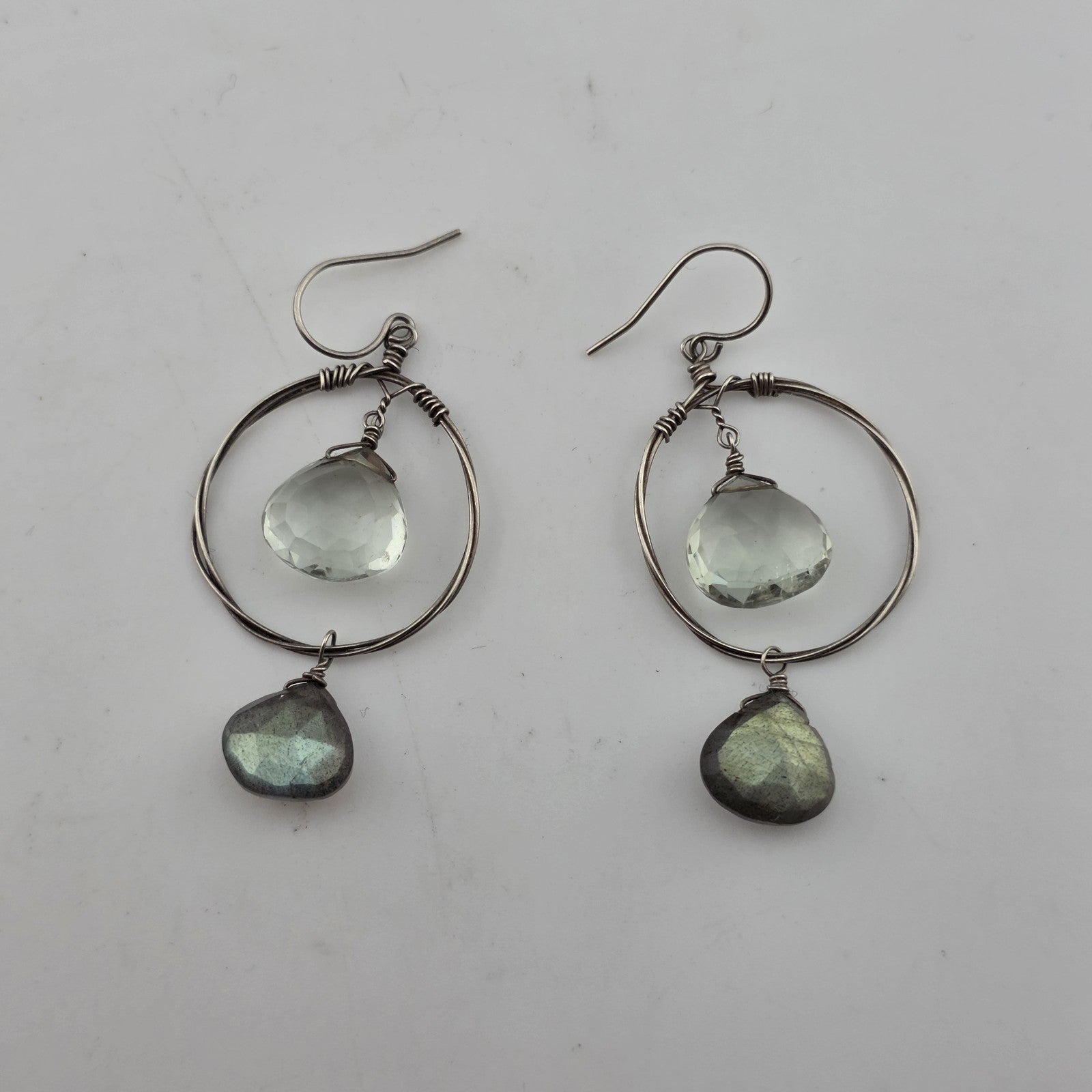 * Type: Sterling Silver Earrings / Circle Dangle / Gemstone Earrings / Vintage Jewelry / Artisan Handmade Style