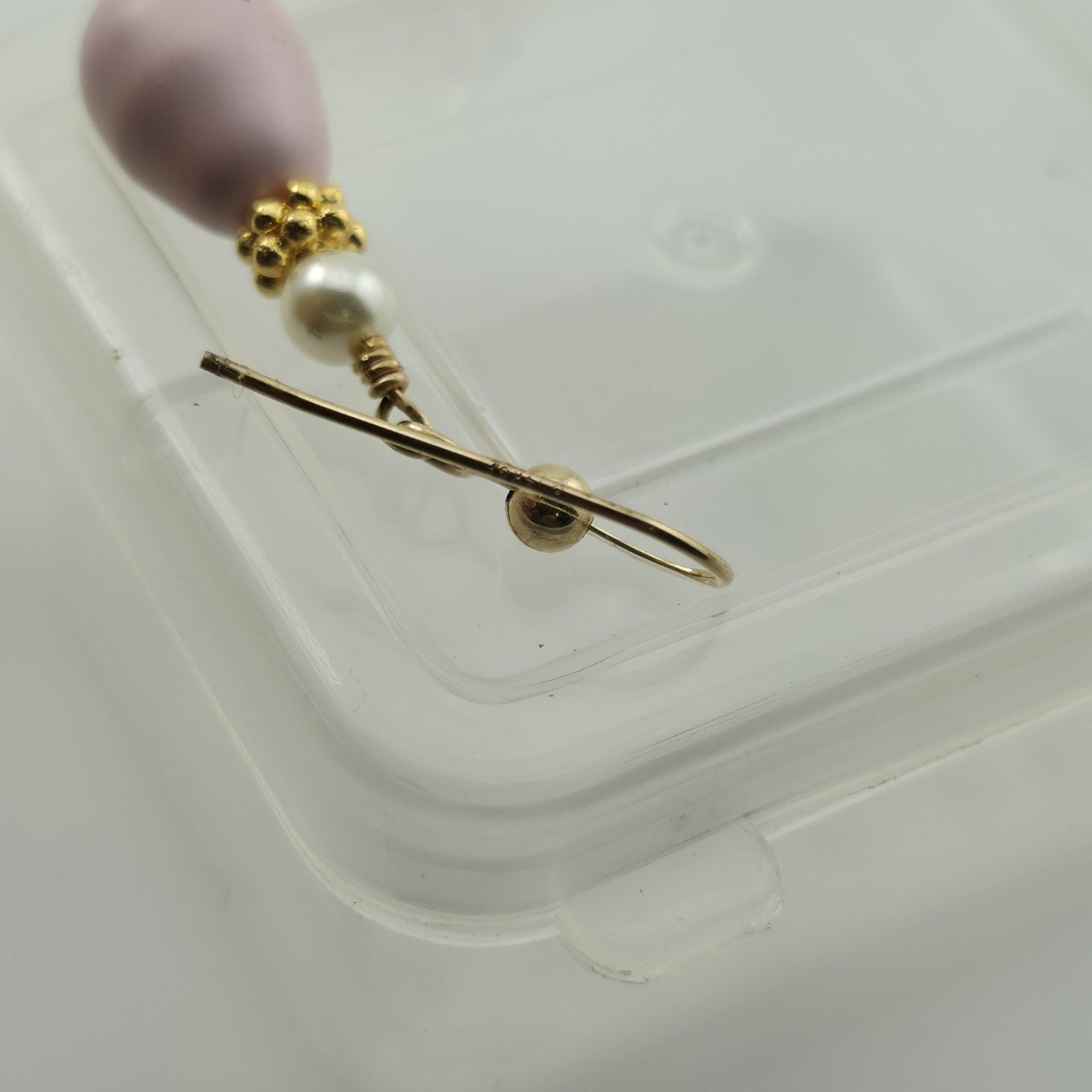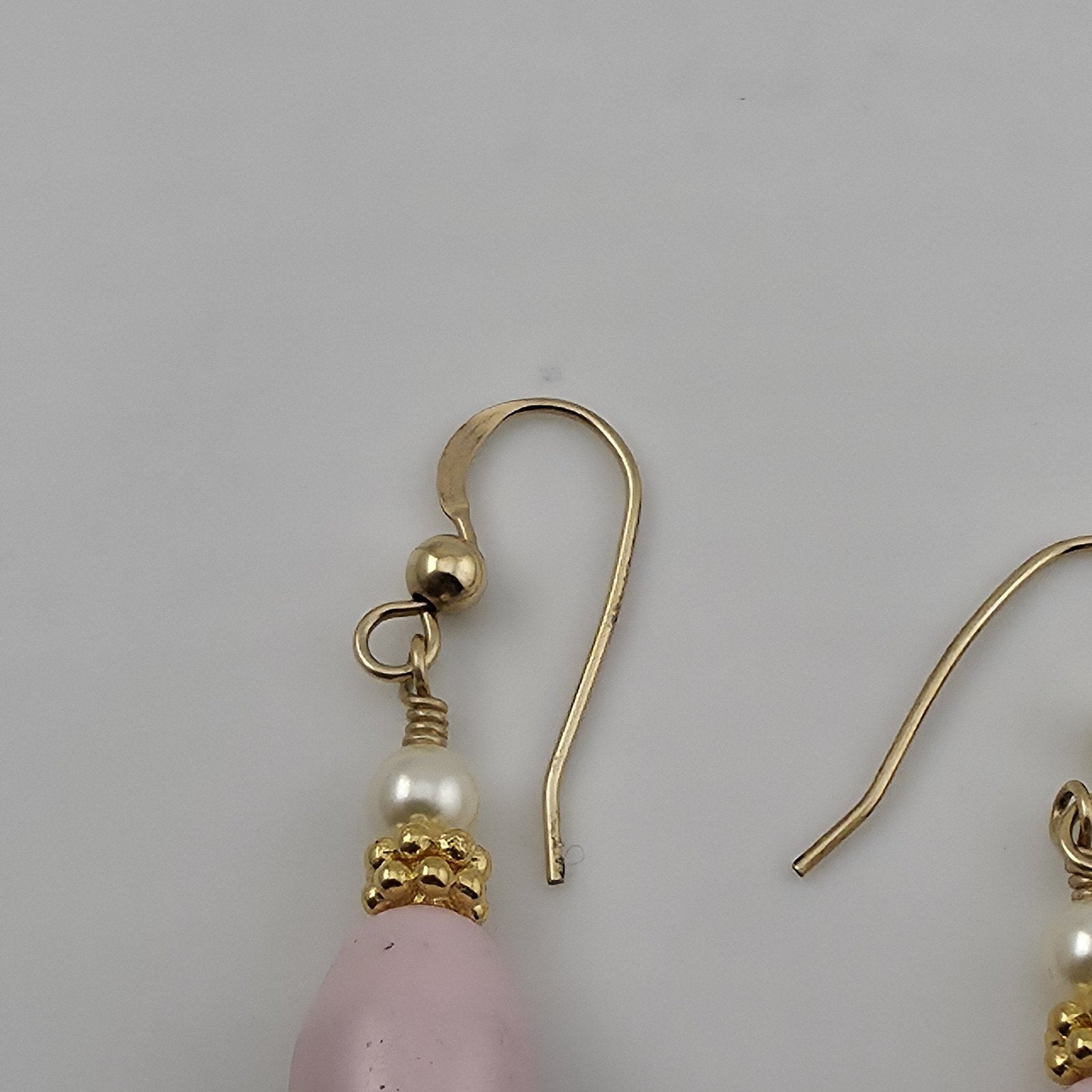 VINTAGE PIERCED EARRINGS PINK LAVENDER BEAD DANGLES GOLD FILLED WIRES