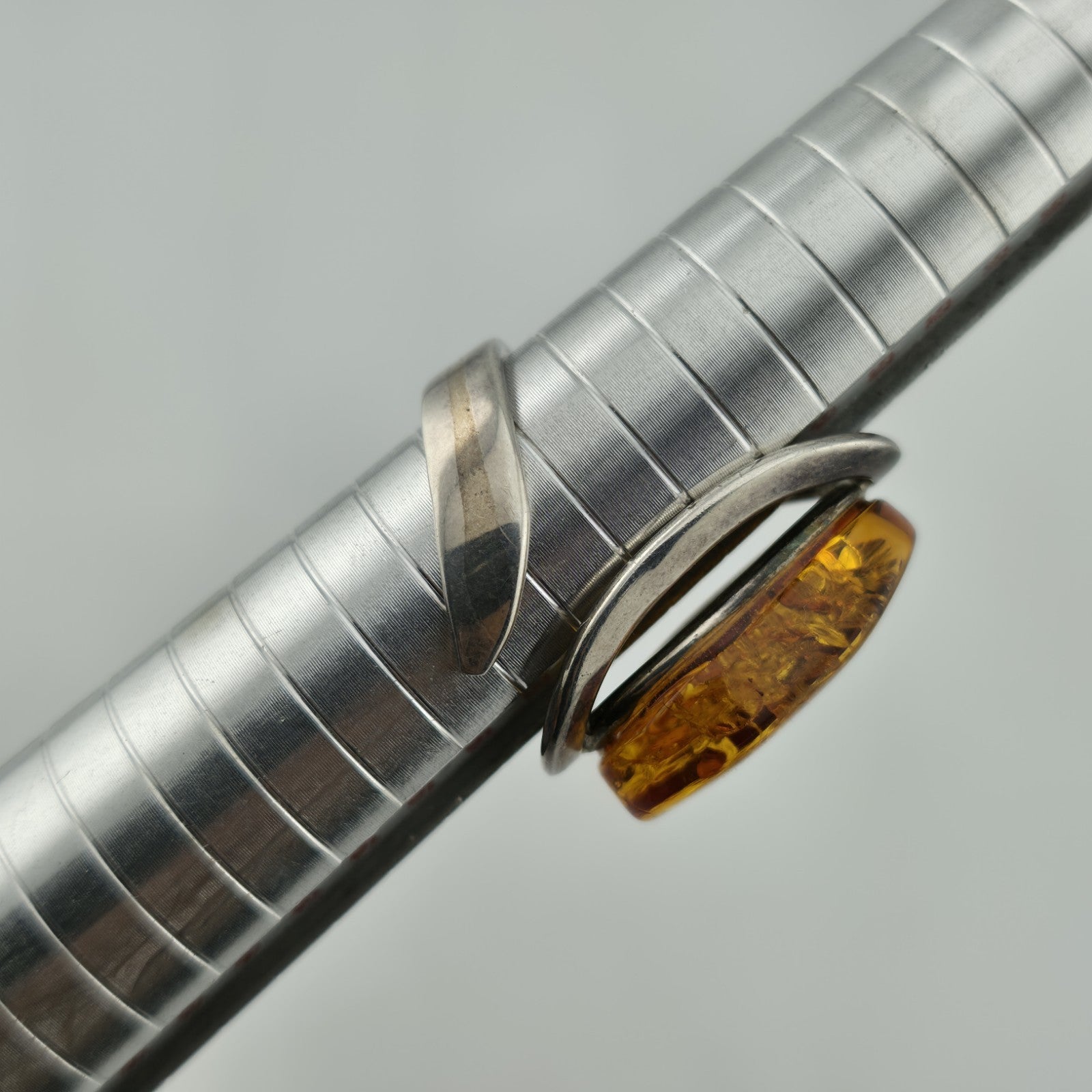 Hashtags: #AmberRing #SterlingSilverJewelry #MCMJewelry #AbstractRing #UniqueVintage
