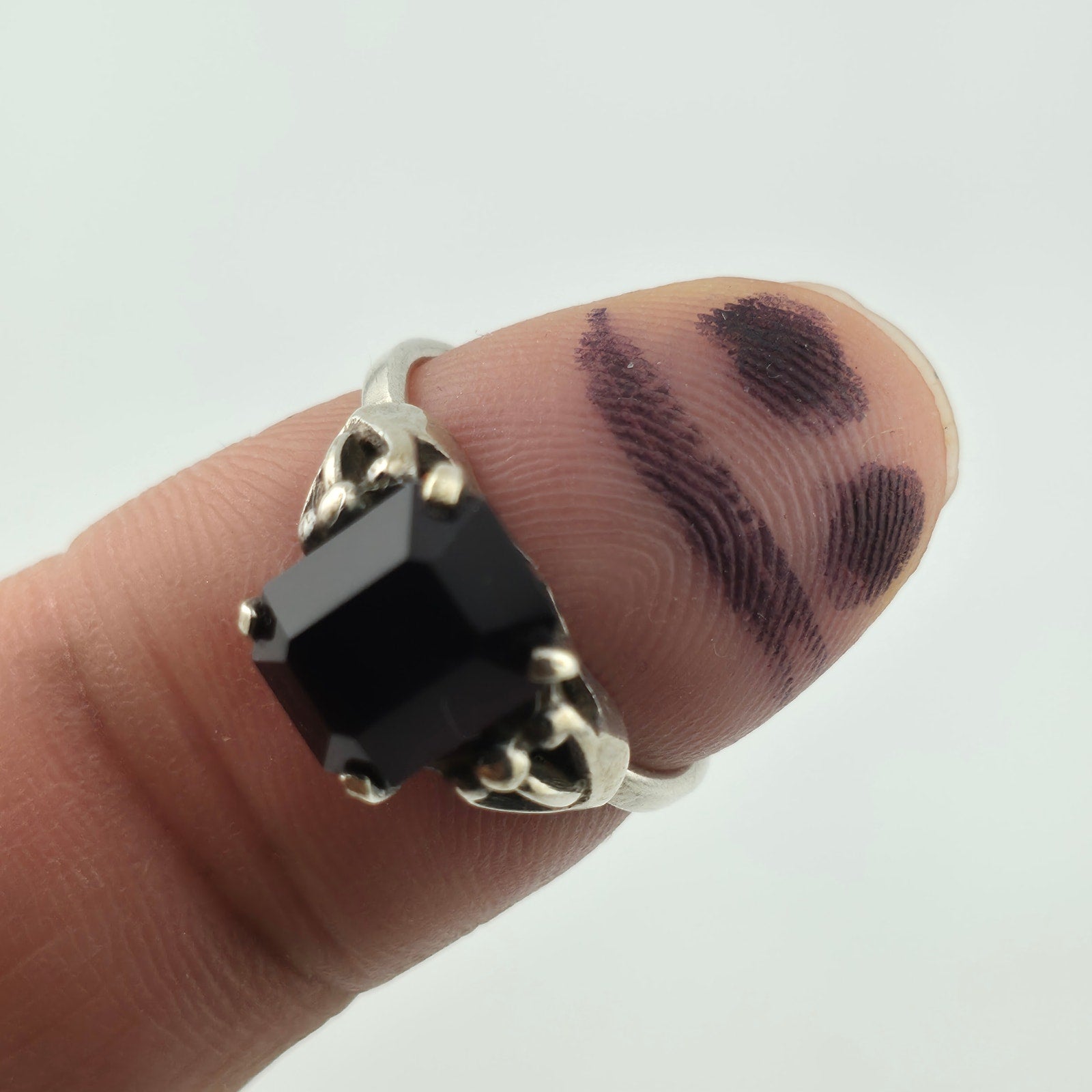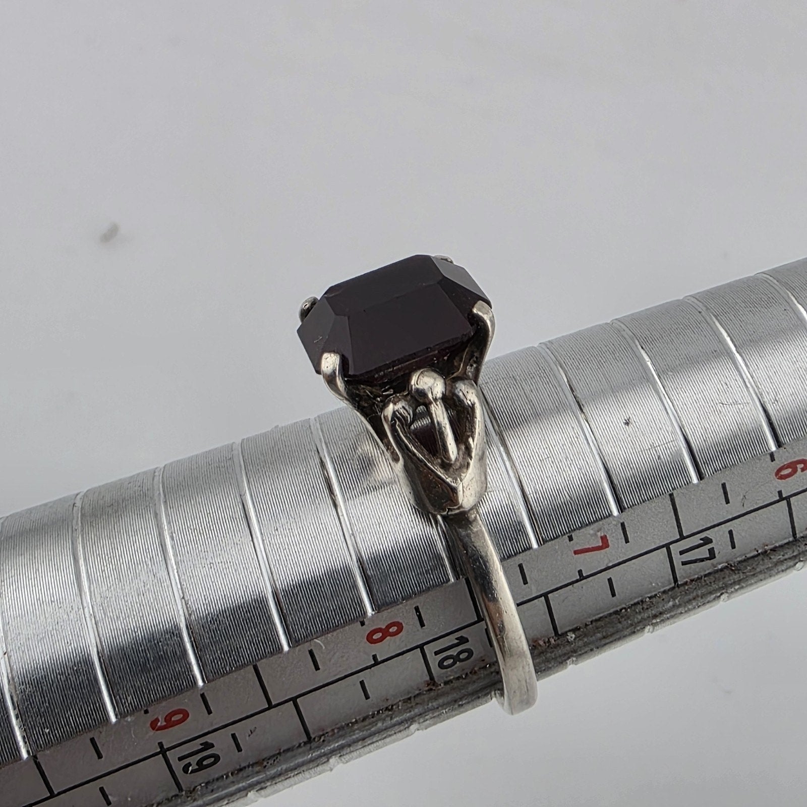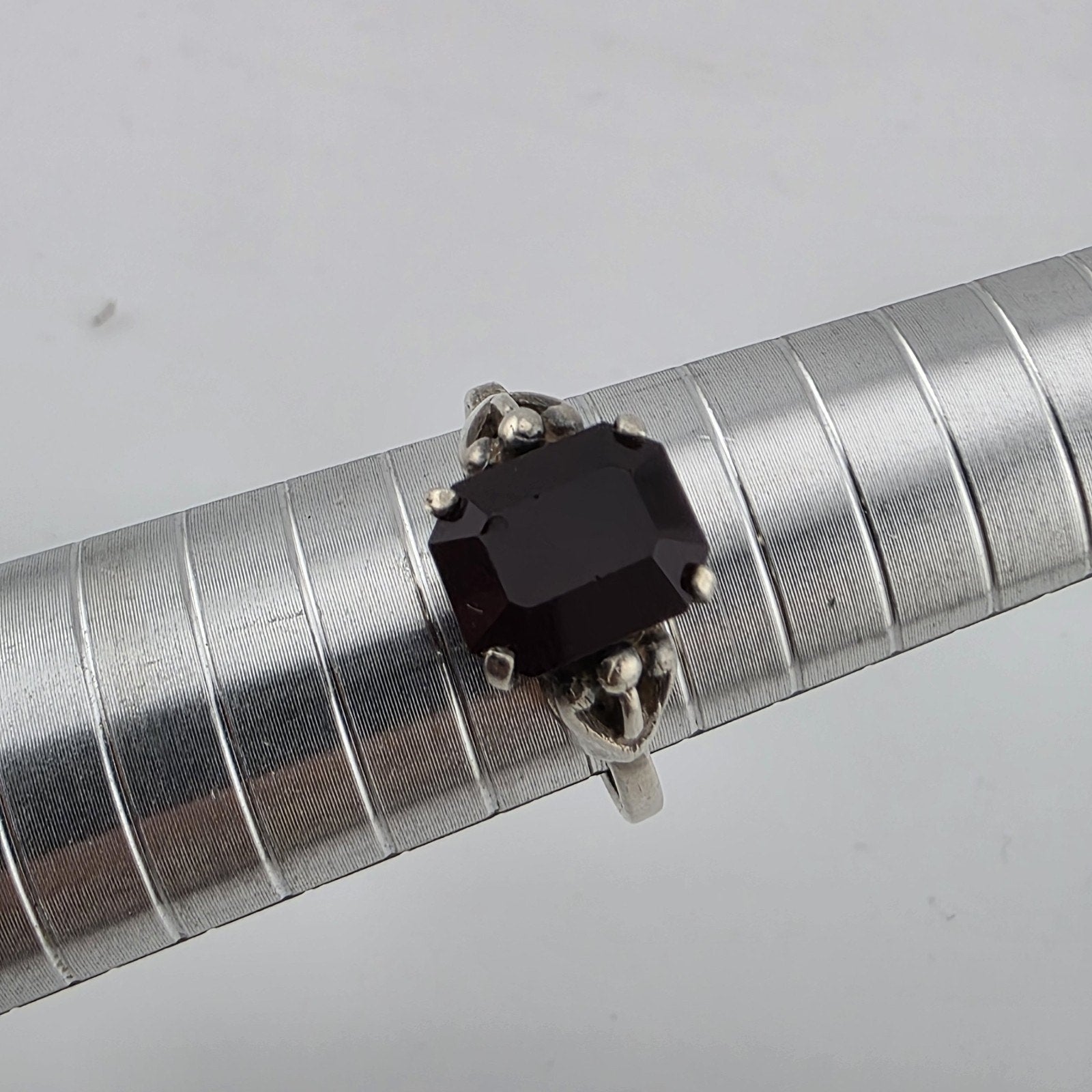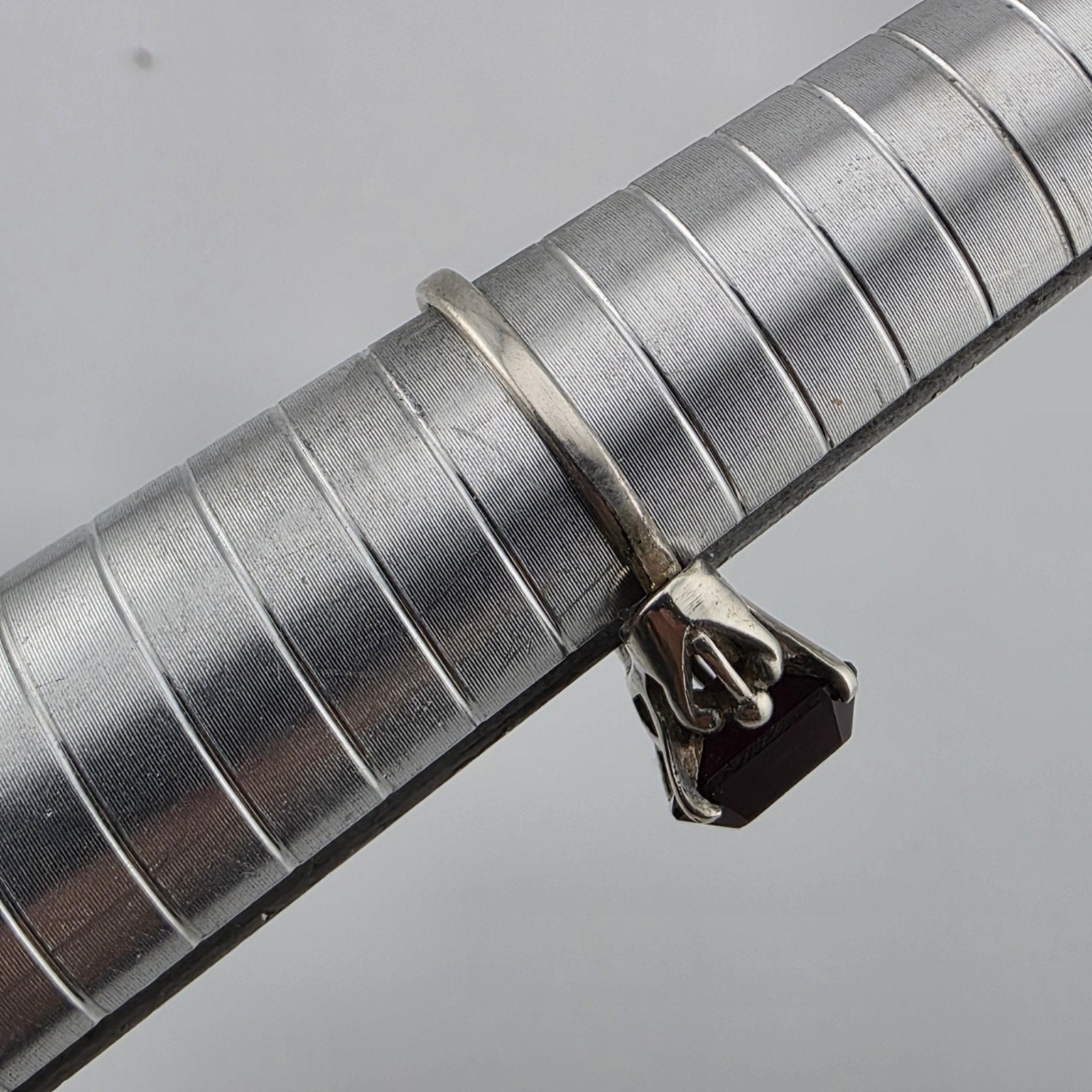Vintage Sterling Silver Ring SARAH COVENTRY Emerald-Cut Garnet Solitaire 7.75